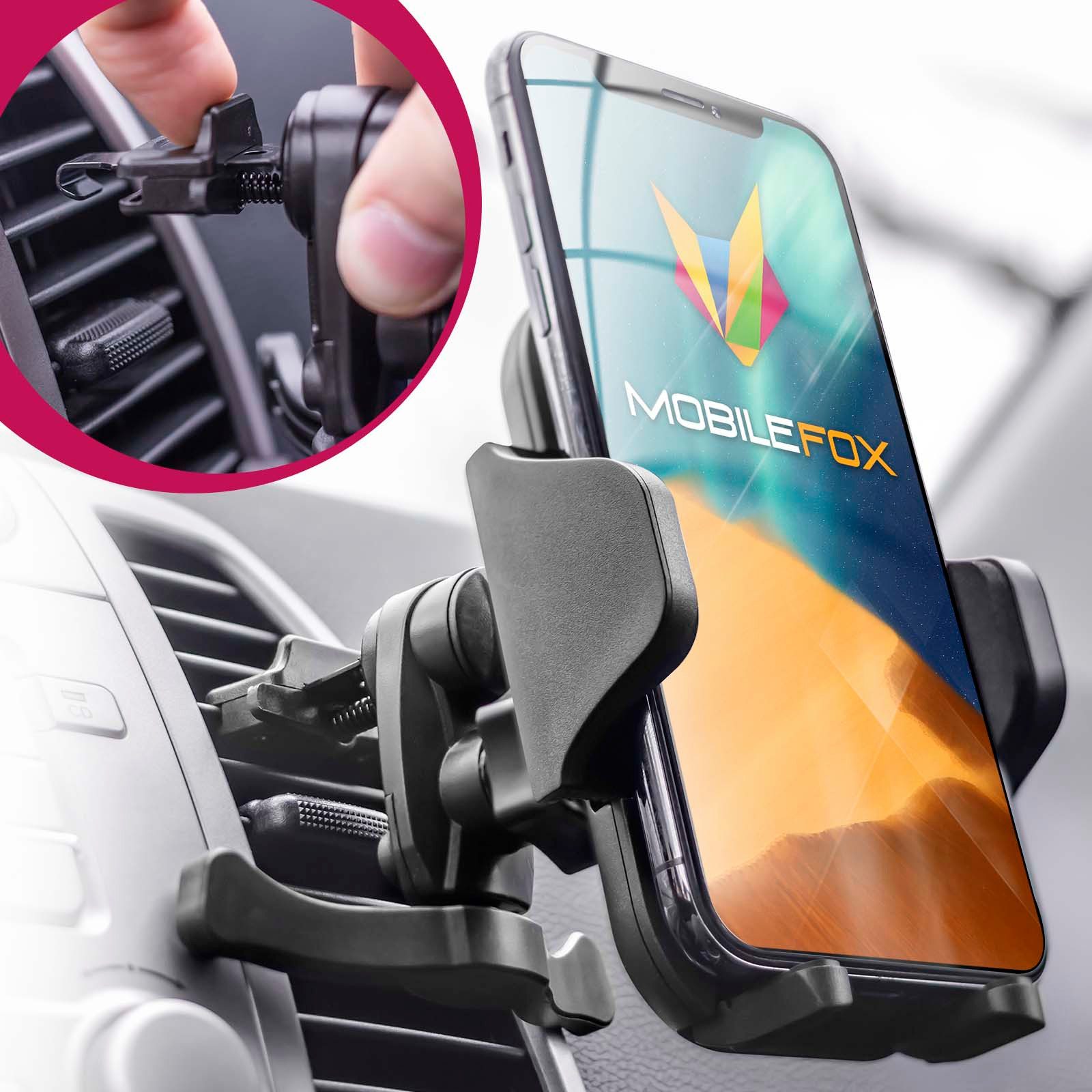 Mit der schlichten aber designvollen Mobilefox Lüftungshalterung haben Sie auch während der Autofahrt Ihr Smartphone immer im Blick. Sie erhalten eine stabile und qualitativ hochwertige Halterung für Ihr Handy.