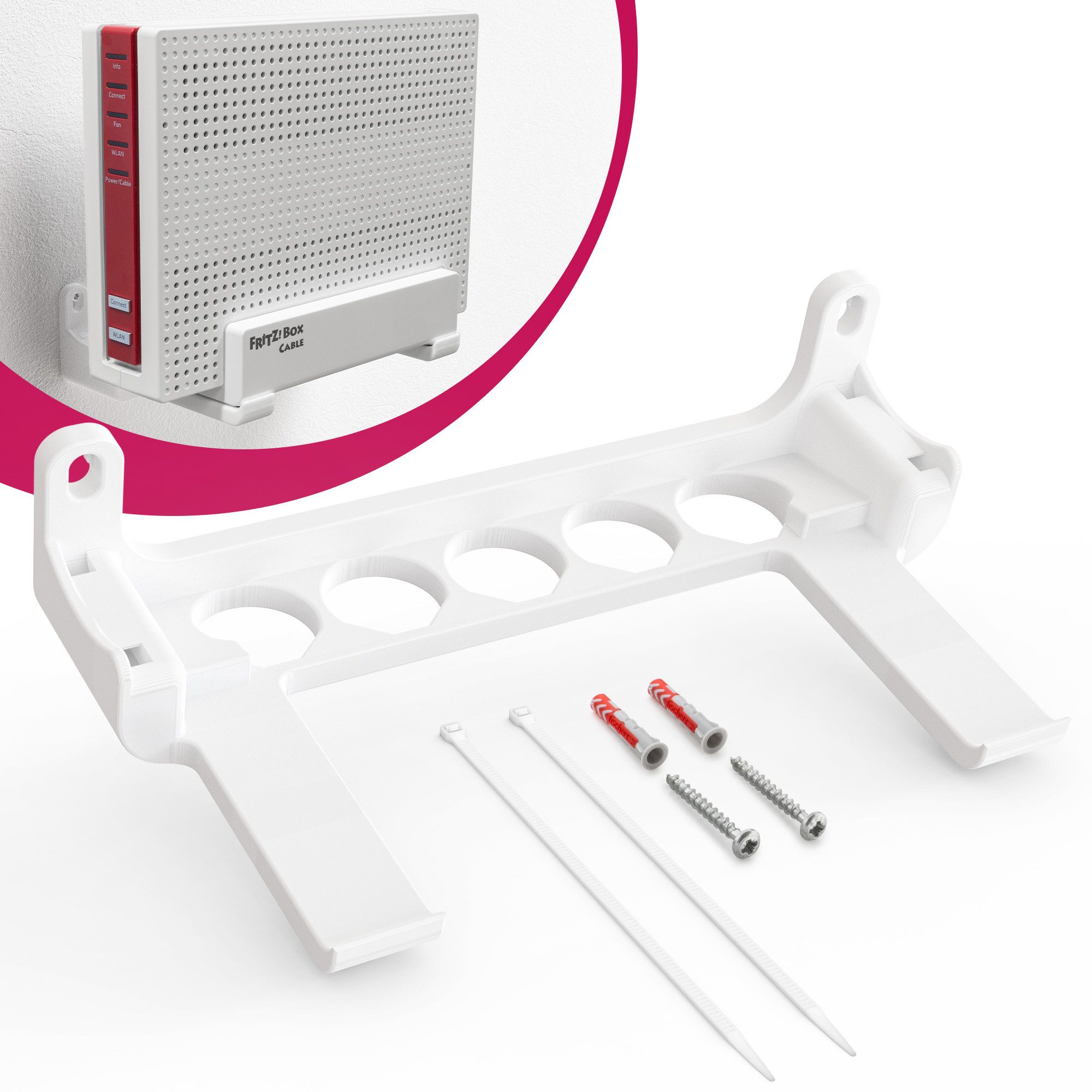 Bringe Ordnung und Stabilität in dein Heimnetzwerk mit der speziell entwickelten Wandhalterung für die FritzBox 6690 Cable & 6591 Cable. Diese Halterung sorgt für einen sicheren Halt und verhindert, dass dein Router ungewollt verrutscht oder beschädigt wird. Dank des durchdachten Kabelmanagements kannst du deine Netzwerkkabel sauber verlegen und für ein aufgeräumtes Erscheinungsbild sorgen.