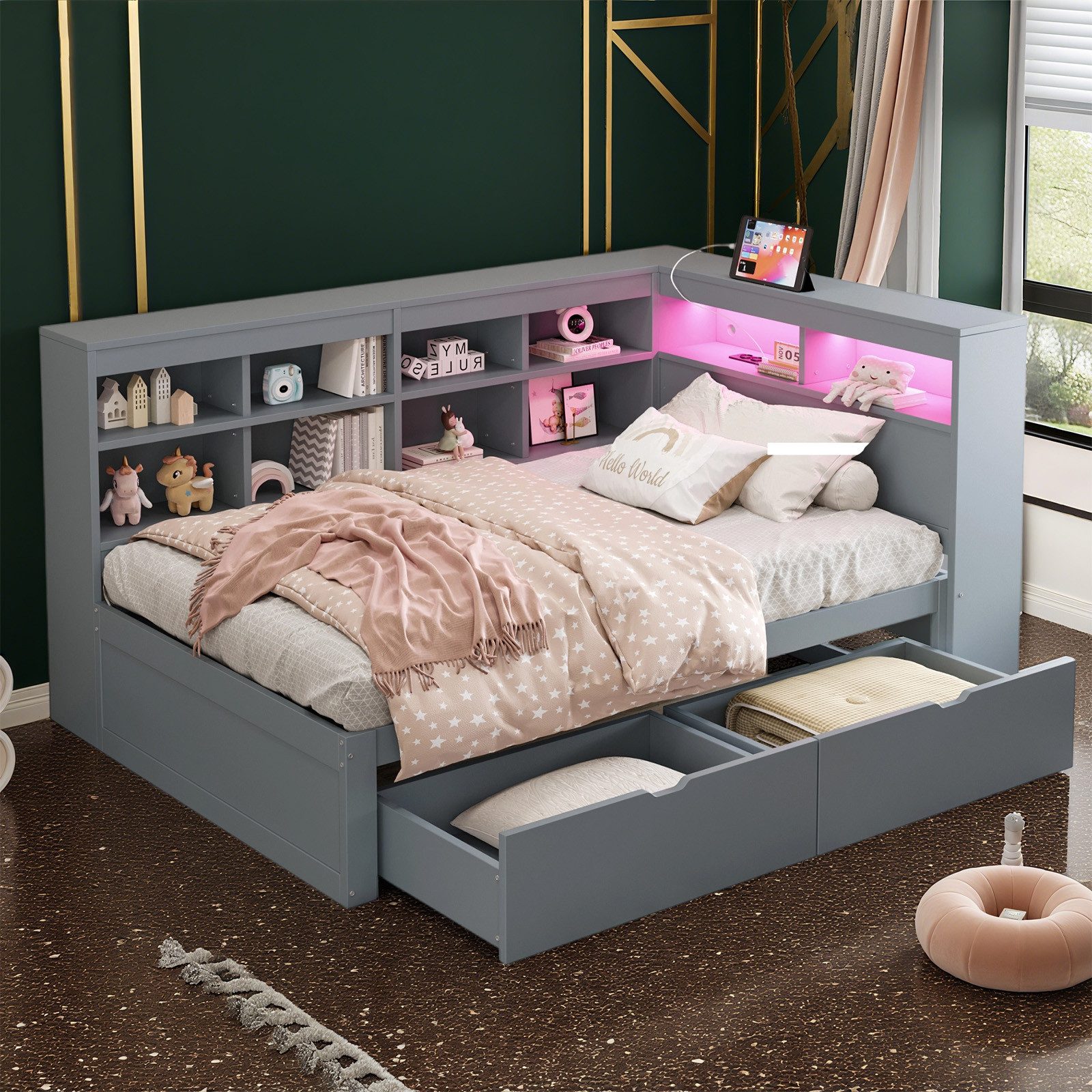 Ausstattung | Bett mit USB- und Steckdose mit LED-Leiste |