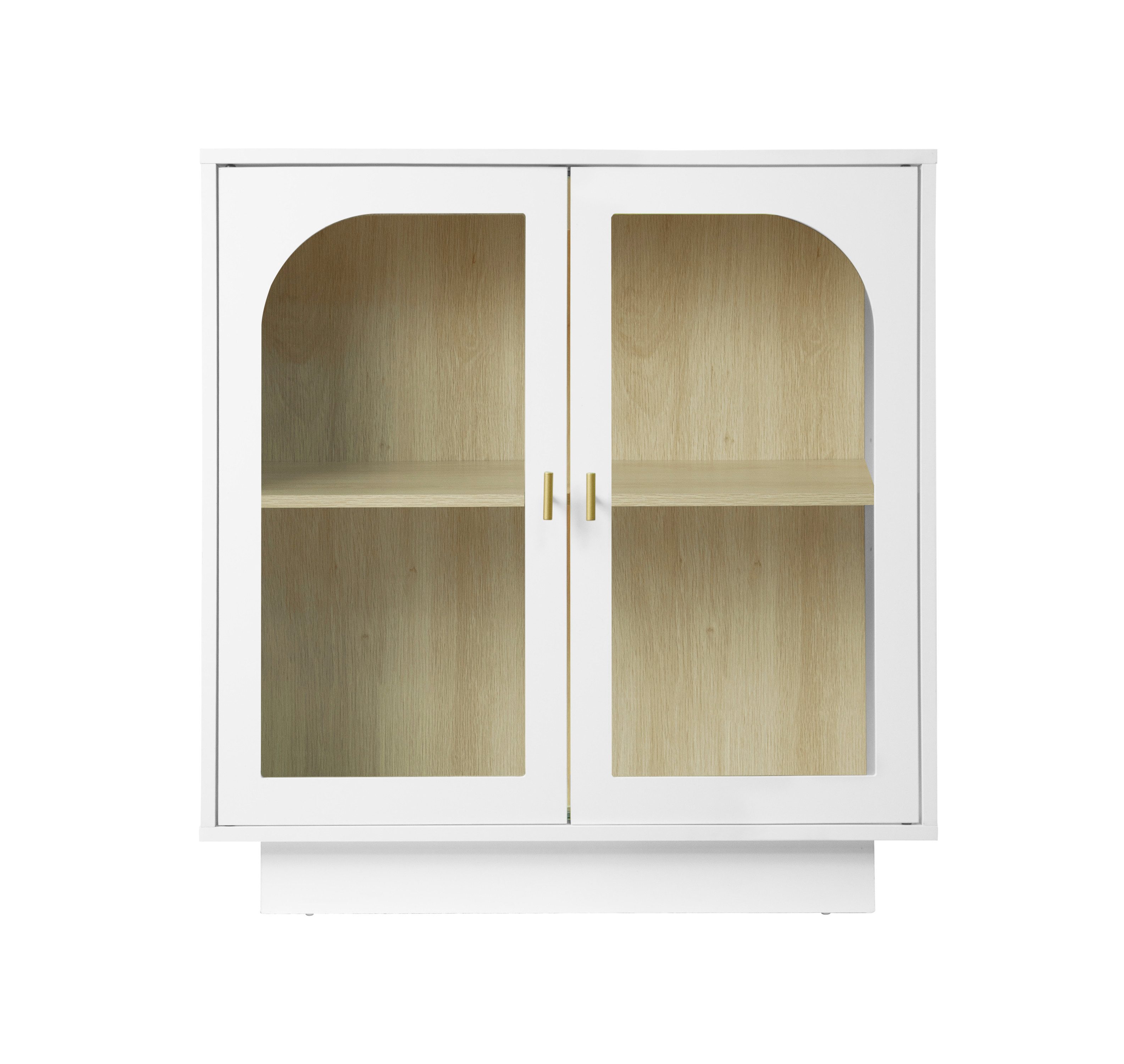 Der Doppeltür-Schrank mit Bogenelementen ist nicht nur ein praktisches Möbelstück, sondern auch ein echtes Highlight in Ihrem Raum. Mit einer Довжина von 80 cm eignet er sich hervorragend für Schlafzimmer, Wohnzimmer, Arbeitszimmer und andere Räume. Die Kombination von weißem Farbton und naturfarbenem Holz verleiht dem Schrank eine moderne, aber zeitlose Ästhetik, die in verschiedenen Einrichtungsstilen gut zur Geltung kommt.
