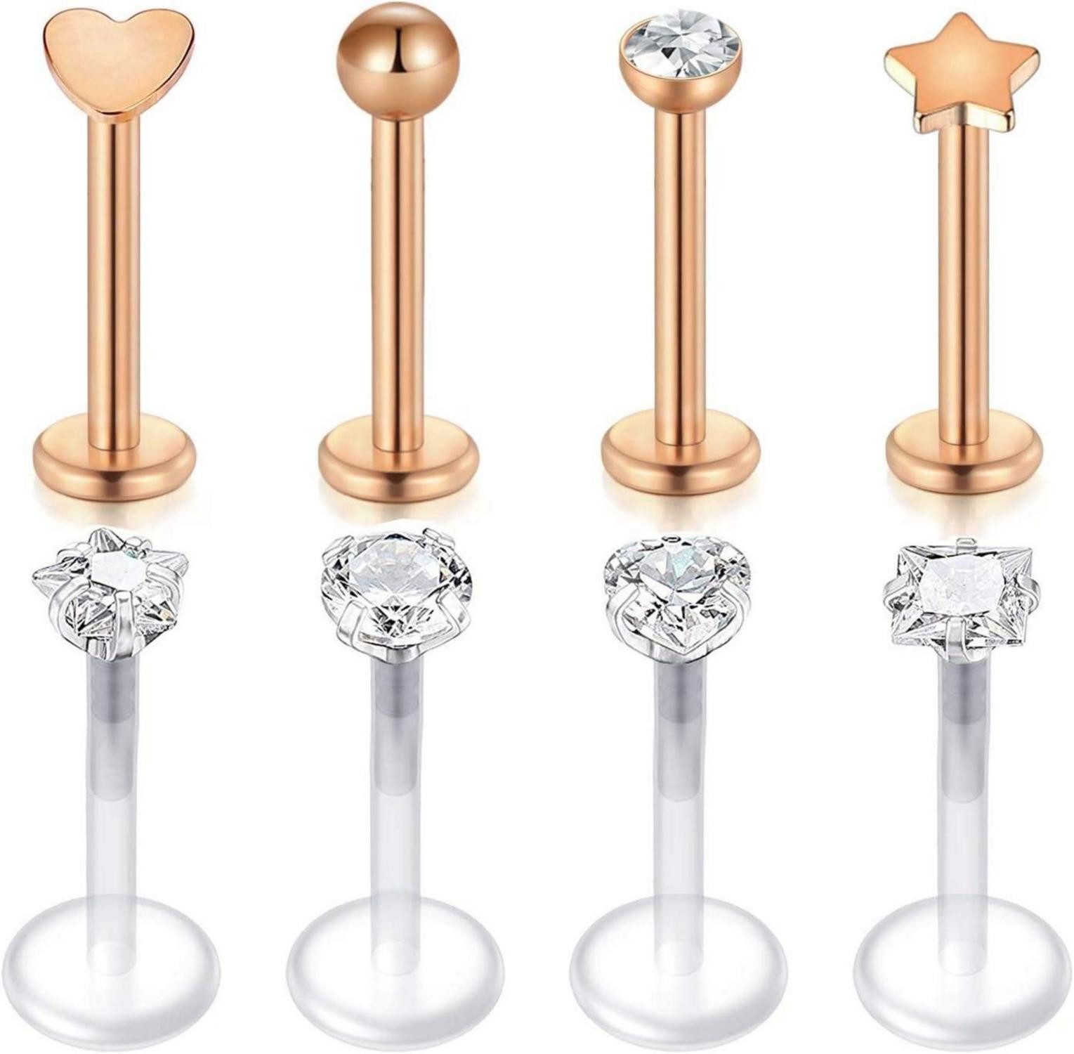 MODRSA 16G Durchsichtig Acryl Chirurgenstahl Lippenpiercing Stud Labret Piercing Tragus Helix Piercing Bioflex Lippen Retainer Conch Piercing Ohrstecker ist die perfekte Wahl für all diejenigen, die nach hochwertigen Piercing Schmuckstücken suchen. Jedes Paket enthält 6 Stück (Rose Gold/Klar) und wird mit einem kostenlosen Geschenk Samtbeutel geliefert. Die Piercings zeichnen sich durch eine hochglänzende glatte Oberfläche aus, die nicht nur glänzend und stilvoll aussieht, sondern auch eine hohe Beständigkeit gegen Rost und Korrosion bietet.