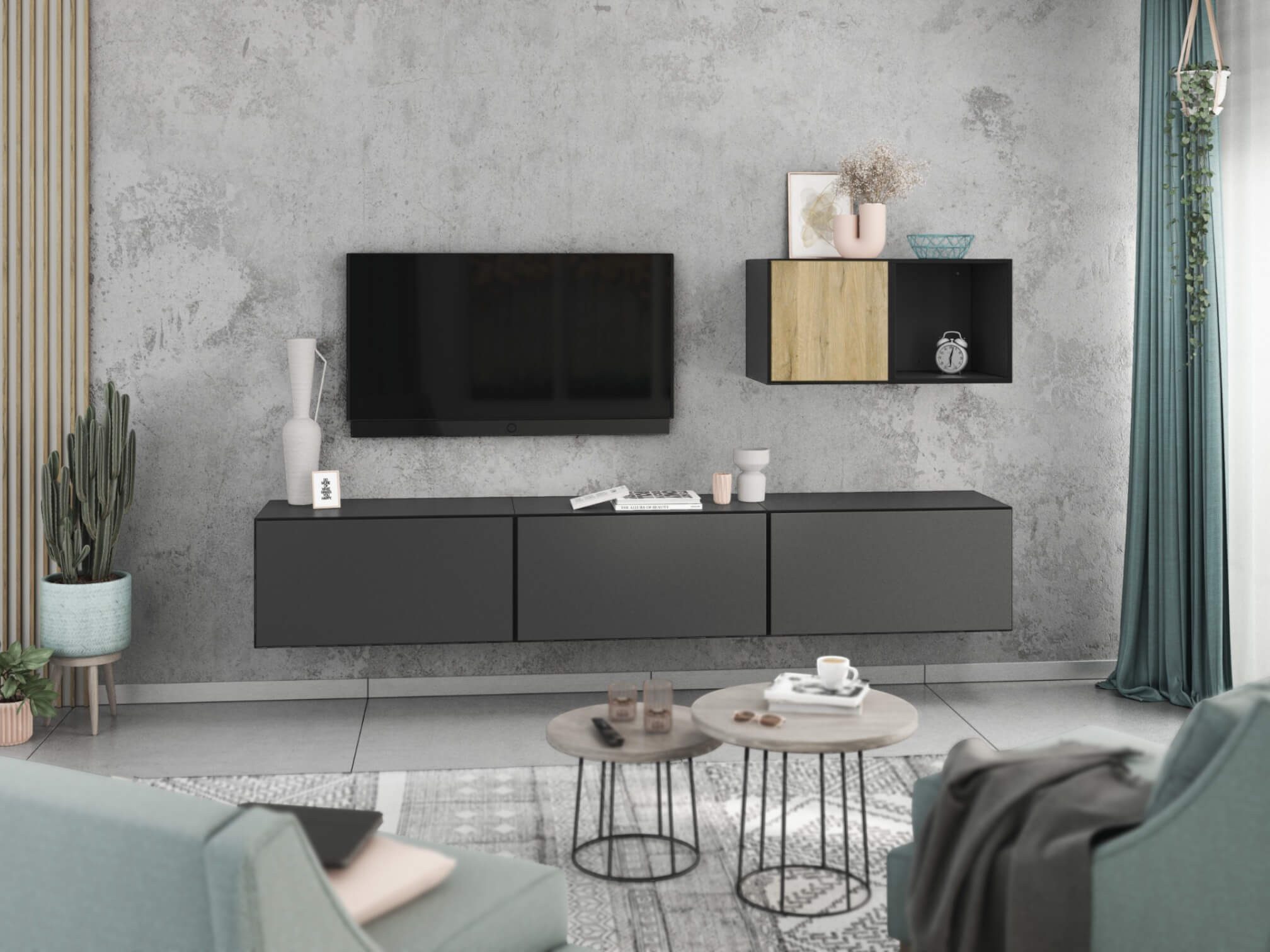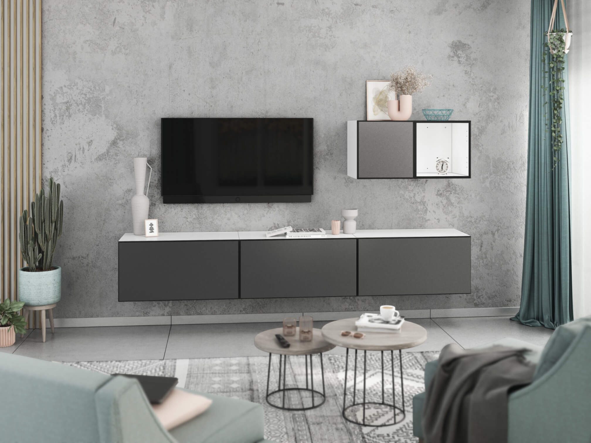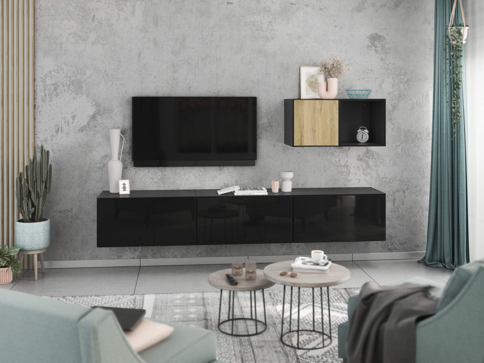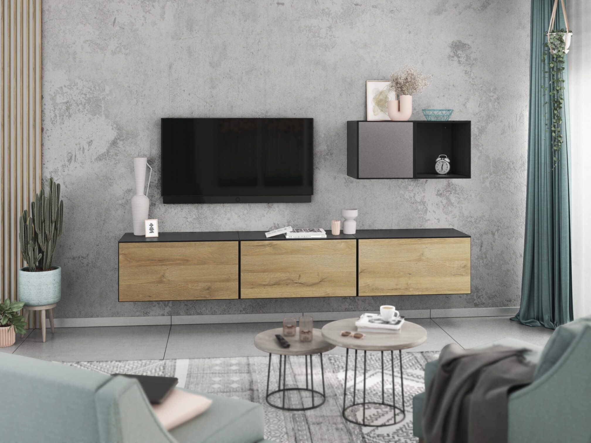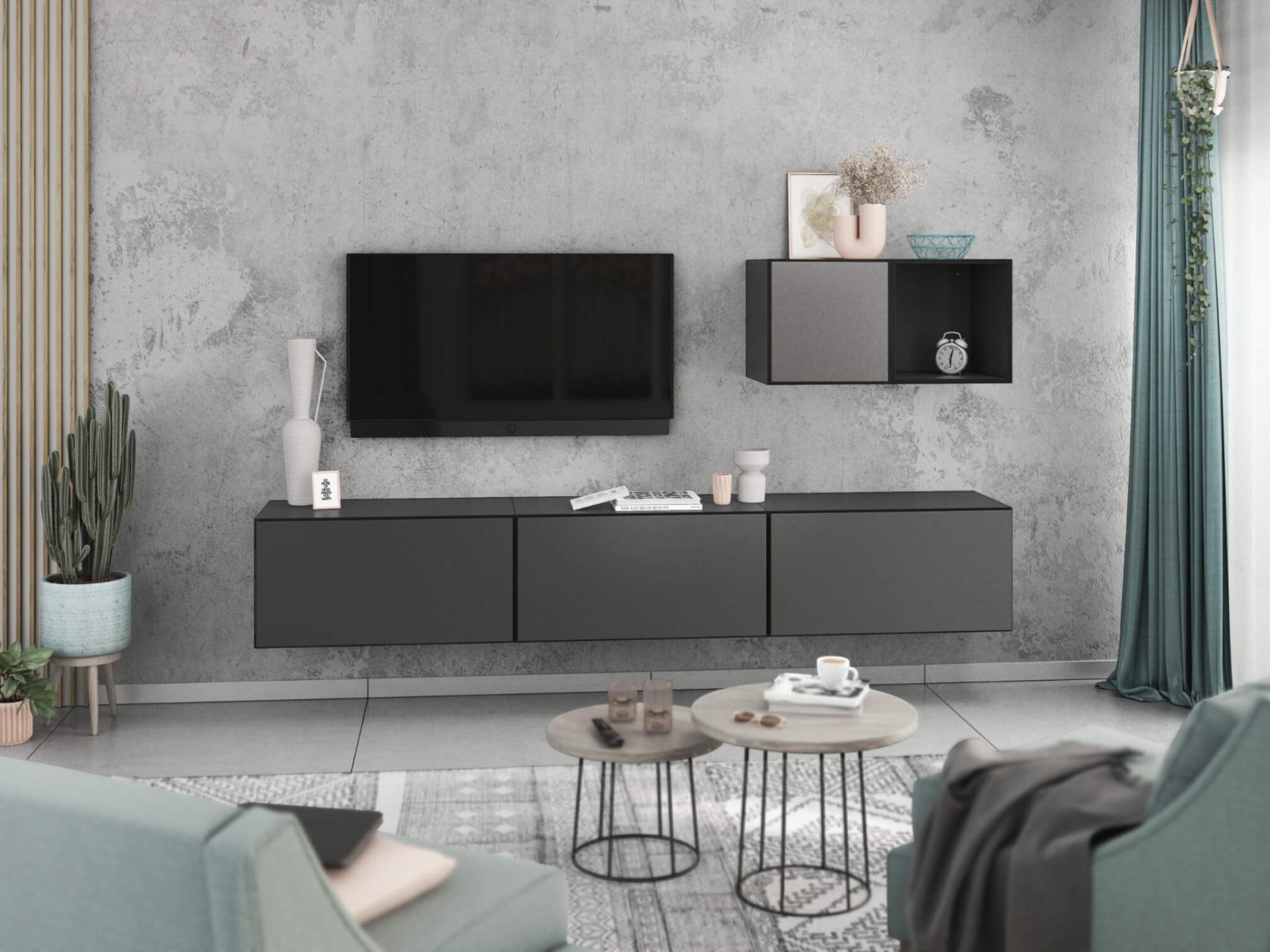 Dank des modularen Aufbaus lassen sich die Schränke sowohl als harmonisches Set als auch einzeln nach Wunsch anordnen. Das flexible Baukastensystem ermöglicht zudem, die Wohnwand jederzeit mit weiteren Elementen zu erweitern und perfekt an Ihre Wohnsituation anzupassen.