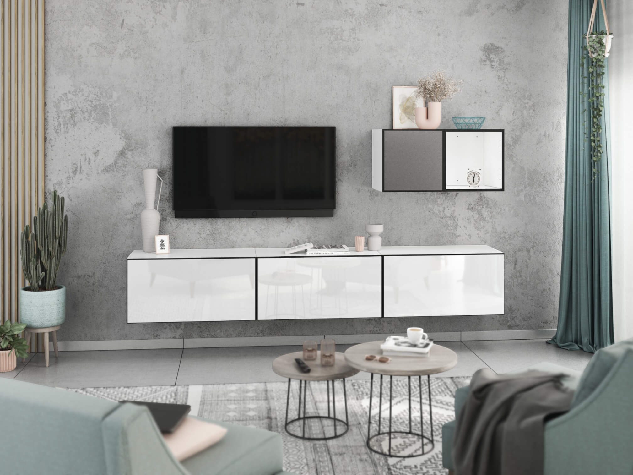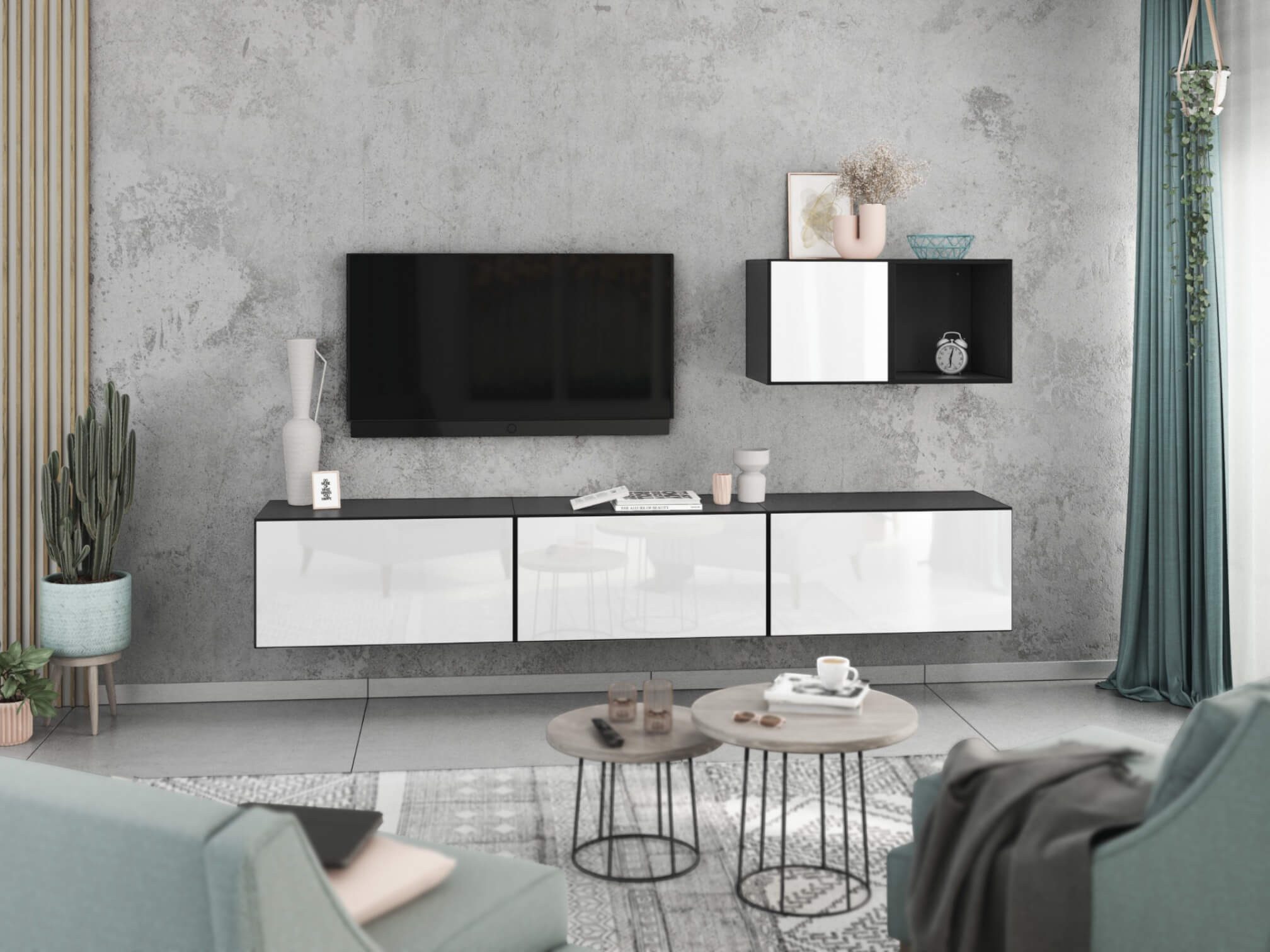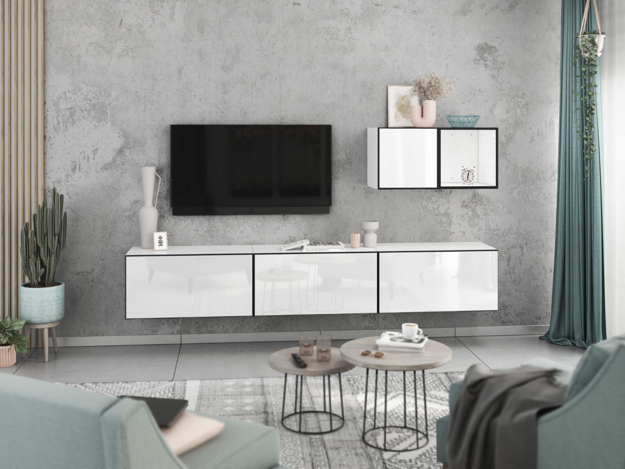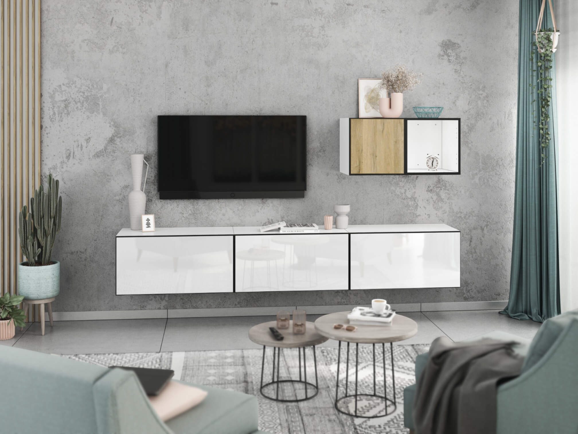 Dank des modularen Aufbaus lassen sich die Schränke sowohl als harmonisches Set als auch einzeln nach Wunsch anordnen. Das flexible Baukastensystem ermöglicht zudem, die Wohnwand jederzeit mit weiteren Elementen zu erweitern und perfekt an Ihre Wohnsituation anzupassen.