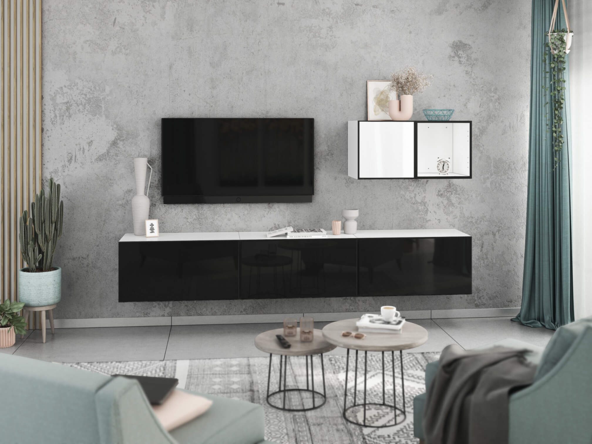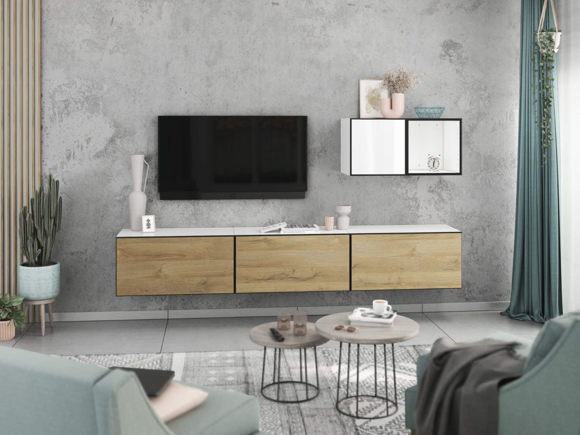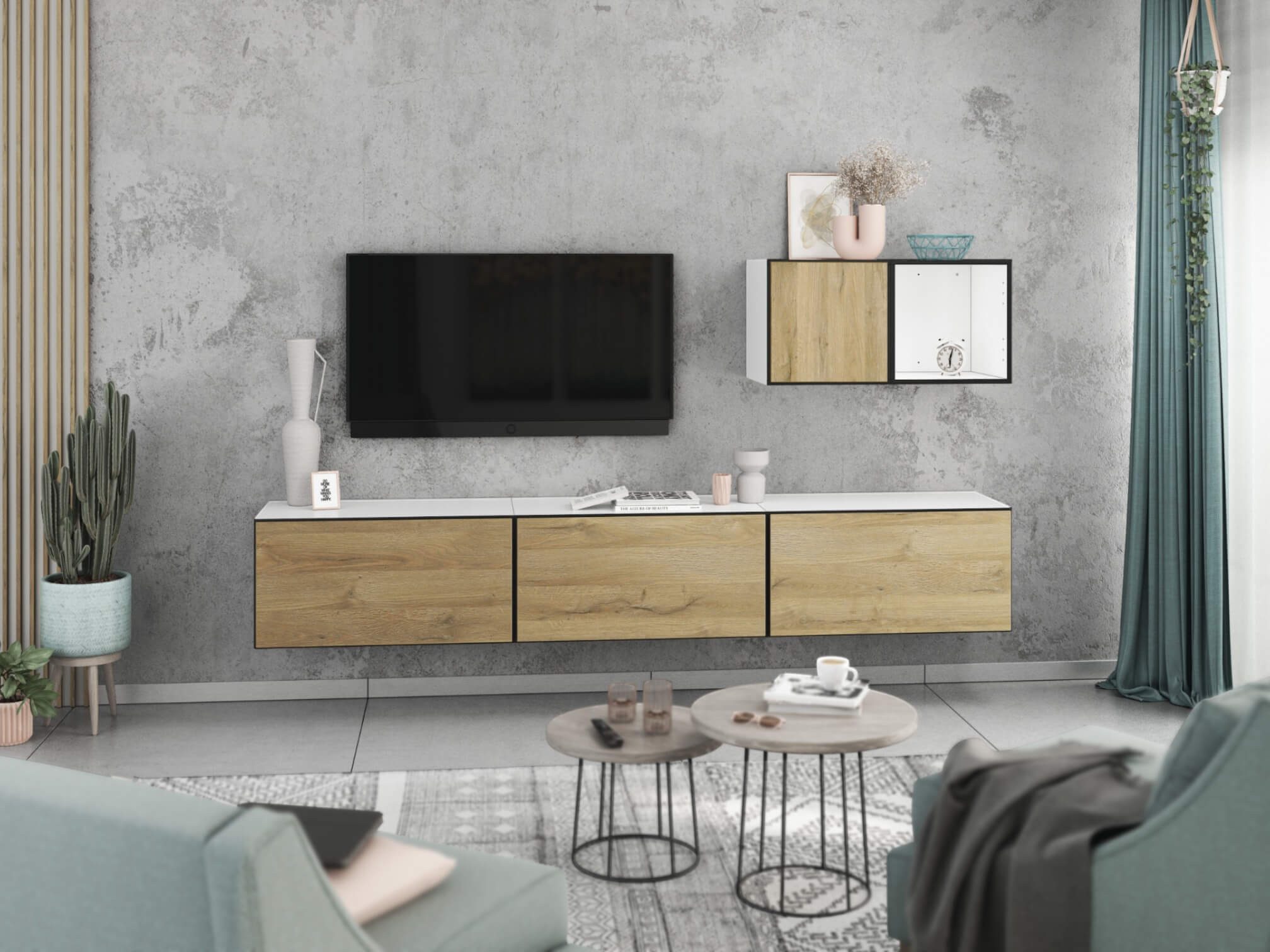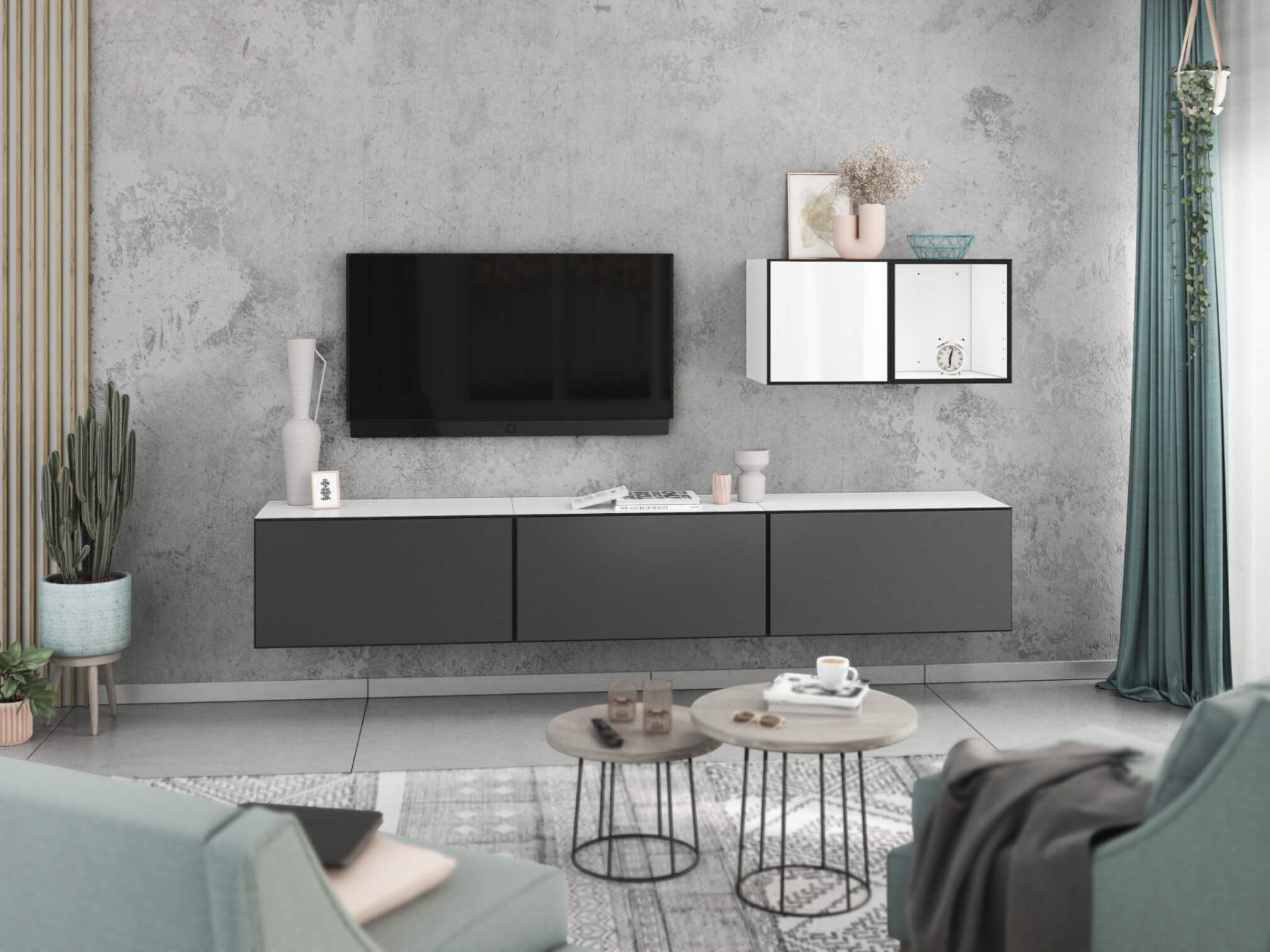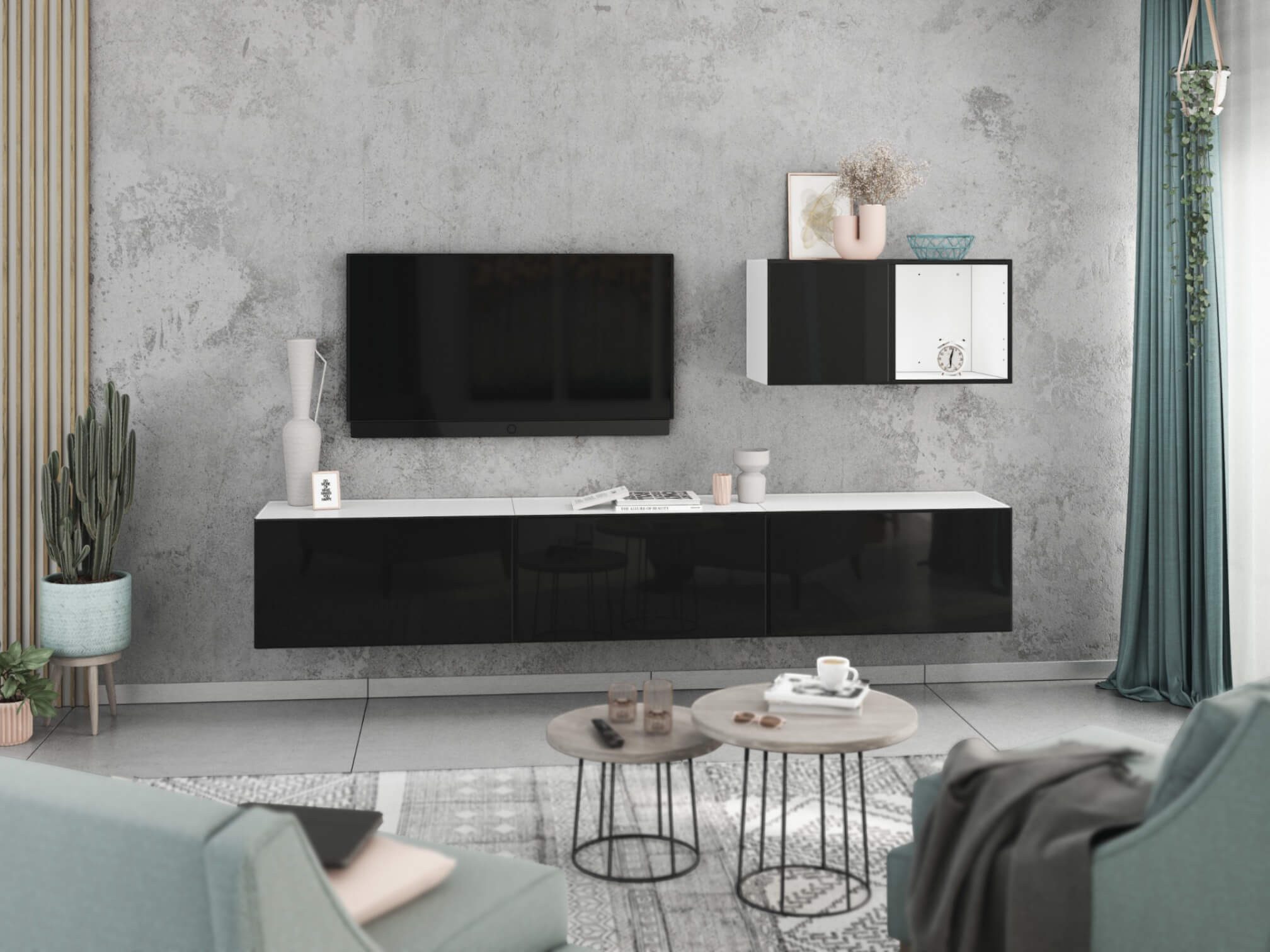 Dank des modularen Aufbaus lassen sich die Schränke sowohl als harmonisches Set als auch einzeln nach Wunsch anordnen. Das flexible Baukastensystem ermöglicht zudem, die Wohnwand jederzeit mit weiteren Elementen zu erweitern und perfekt an Ihre Wohnsituation anzupassen.