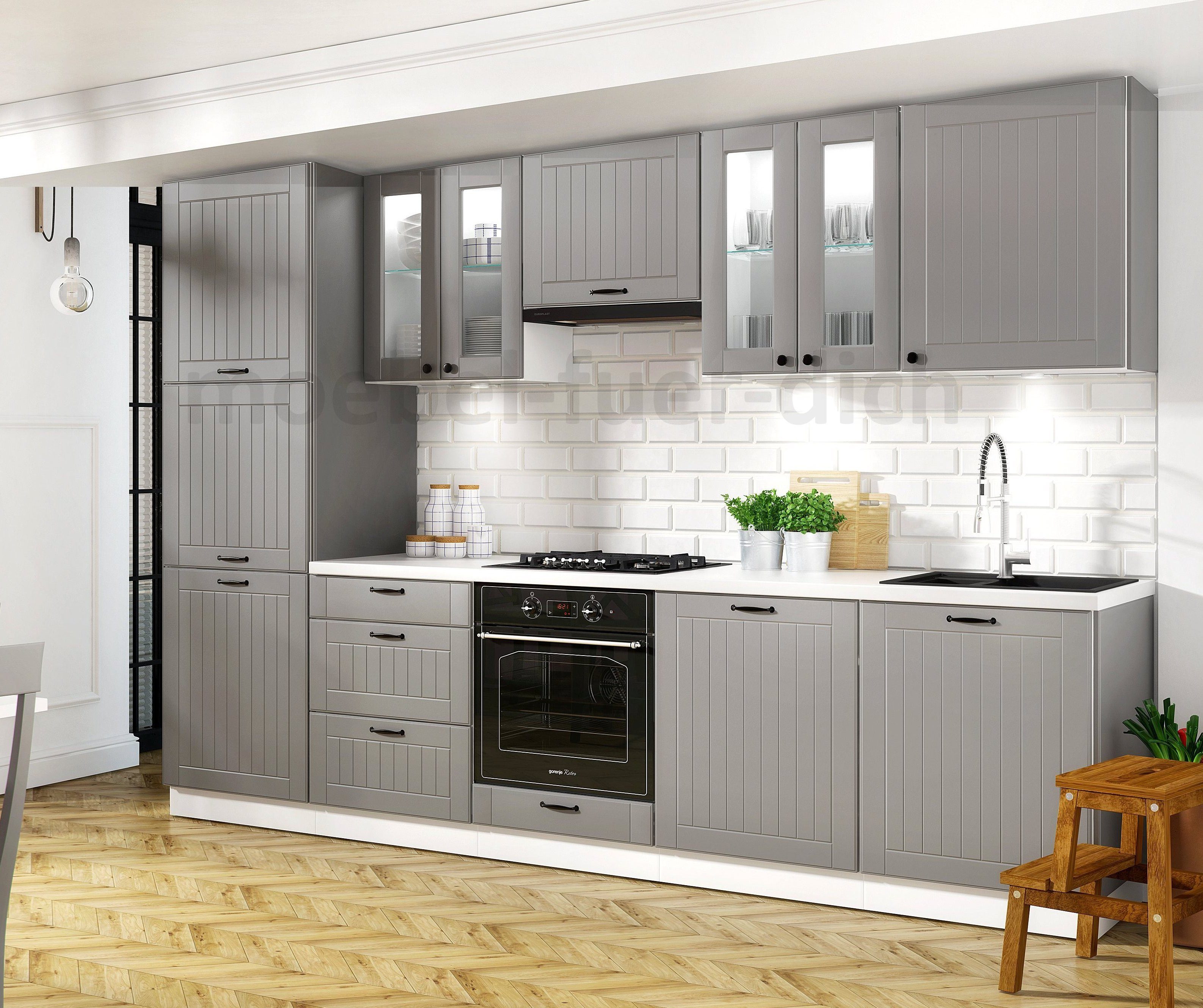 Die Küchen im Landhausstil sind zeitlos und werden nie aus der Mode kommen. Die Küchenkollektion Lora bietet alles, was Sie brauchen, um eine Landhausküche einzurichten. Die mit Sprossen versehenen Glastüren der Vitrinen, die Fronten mit gefrästen senkrechten Rillen sowie die stilvollen schwarzen Metallgriffe sorgen für den besonderen Landhauscharakter der Küche.