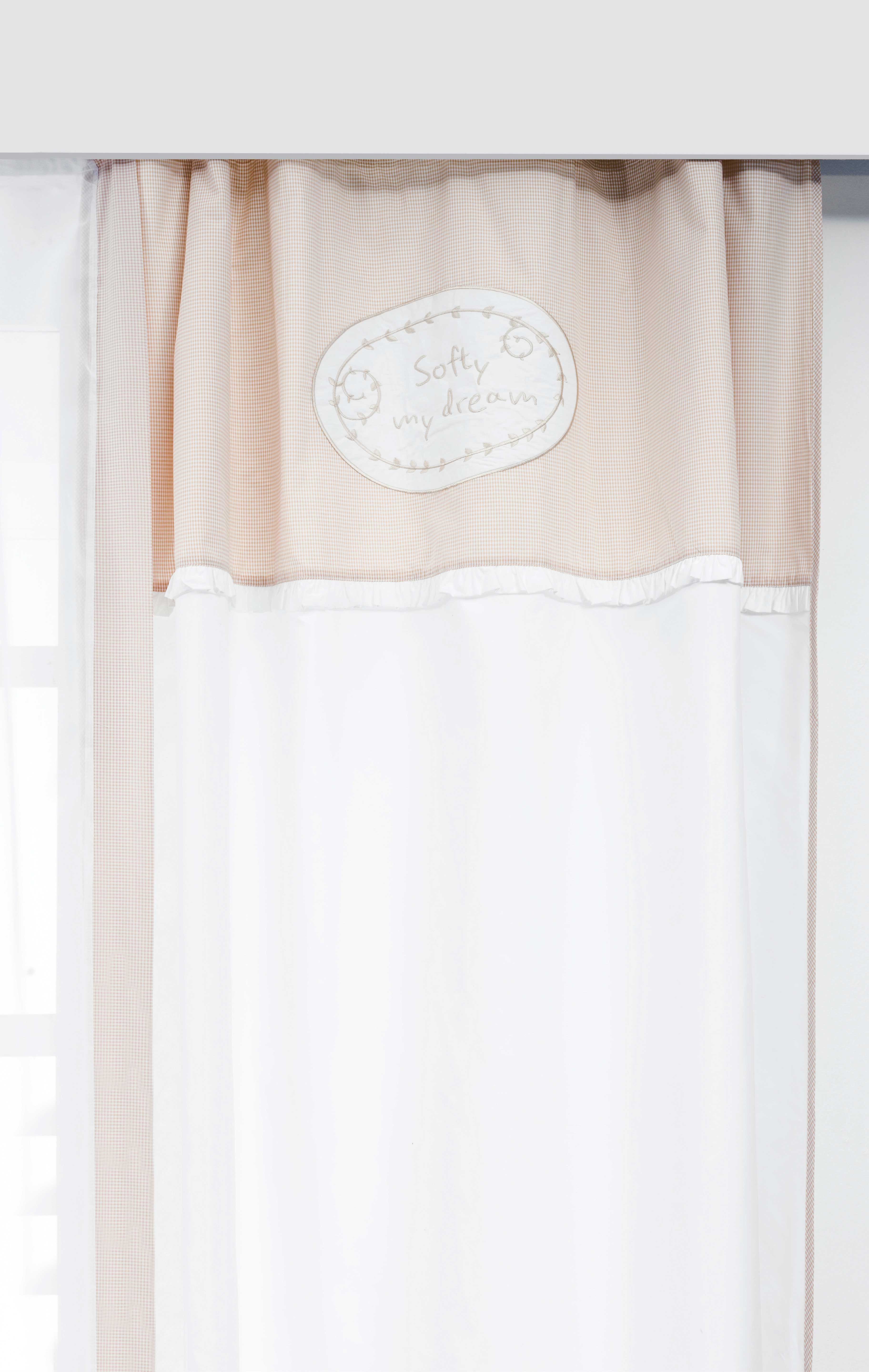 In den zauberhaften Farben Crème und Weiß mit kleinen Rüschen, bringt diese Gardine Ruhe in jedes Kinderzimmer.