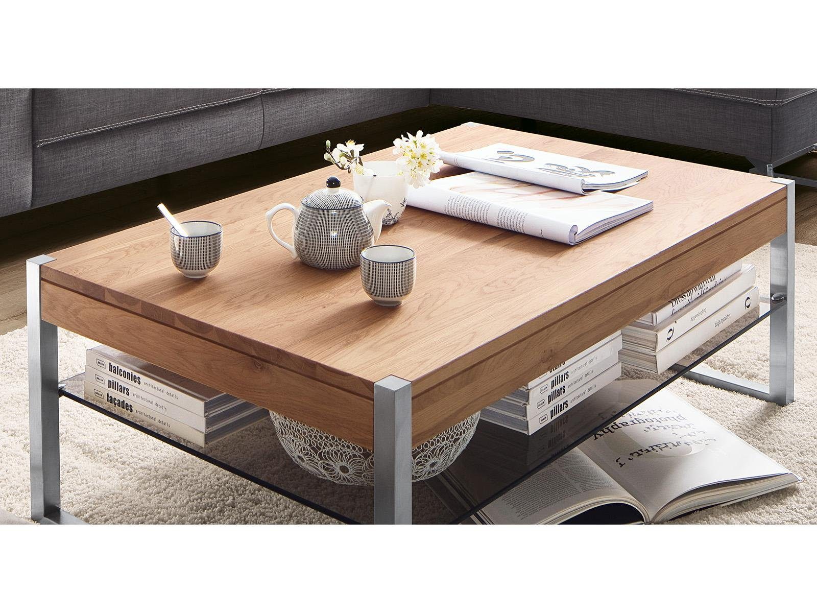 Der Couchtisch "Arie II" ist in ausdrucksstarker Asteiche gehalten. Maserungen, Struktur- und Farbunterschiede, Risse sowie Astlöcher sind hier gewollt, denn diese machen den authentischen und erwünschten Charakter des Couchtischs aus und sorgen dafür dass jedes Stück zu einem echten Unikat wird. Das in Edelstahl-Optik gehaltene Metallgestell, sowie der bronzefarbene Ablageboden setzen nicht nur edle Akzente, sondern runden die äußerliche Erscheinung stilvoll ab.