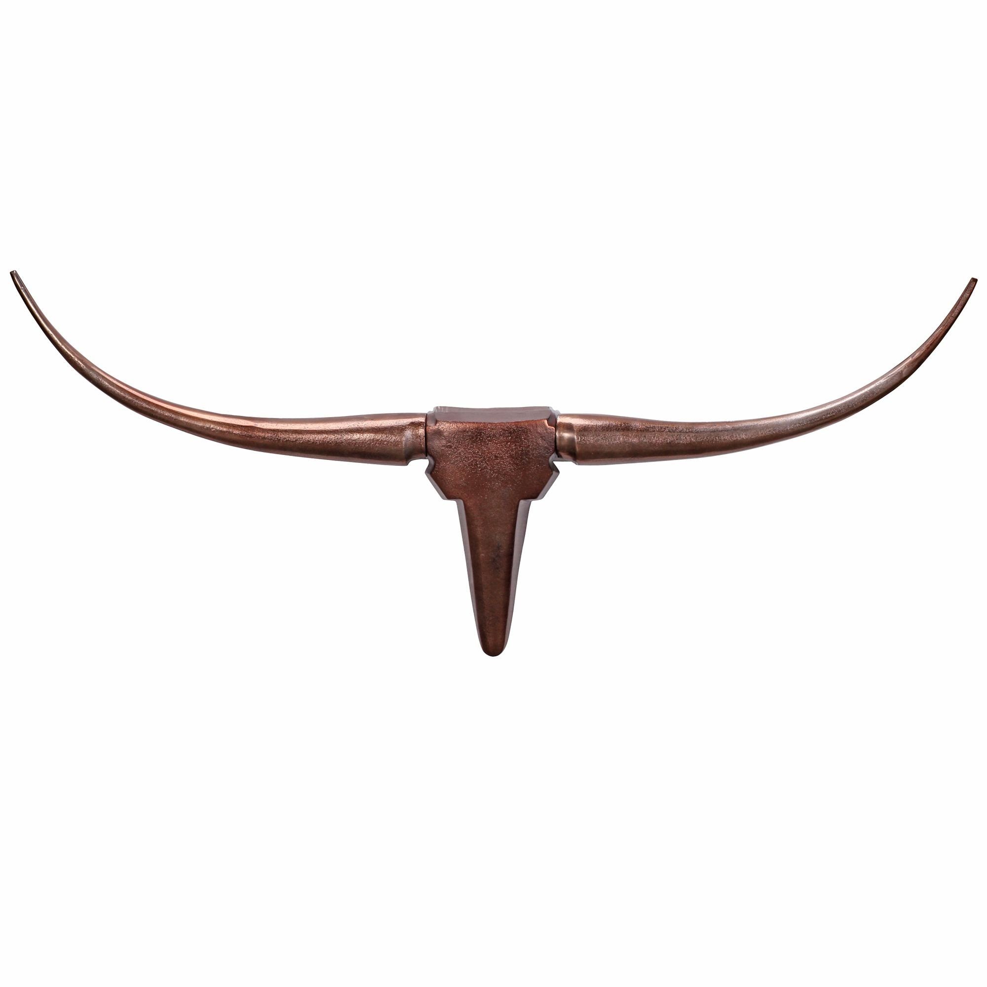 Design Aluminium Geweih mit zwei formschönen Hörnern Außergewöhnliches Jagdambiente für Ihr Heim & Haus Hochwertige Verarbeitung mit abstrakter Formgebung Abmessungen Breite: 100 cm Höhe: 40 cm Tiefe: 6 cm Abstand der Aufhängelöcher: 7 cm Farbe Bronze Besonderheiten Durch liebevolle Handarbeit ist jedes Geweih ein absolutes Unikat Hohe Stabilität durch das hochwertig verarbeitete Aluminium Dank der rostfreien Eigenschaft des Metalls ist dieser Stierkopf auch für Bäder und Außenbereiche geeignet Material Lackiertes Aluminium Lieferumfang Ein Geweih ohne Dekoration Montage Lieferzustand: zerlegt und praktisch verpackt Einfacher und schneller Aufbau dank gut durchdachter Konstruktion