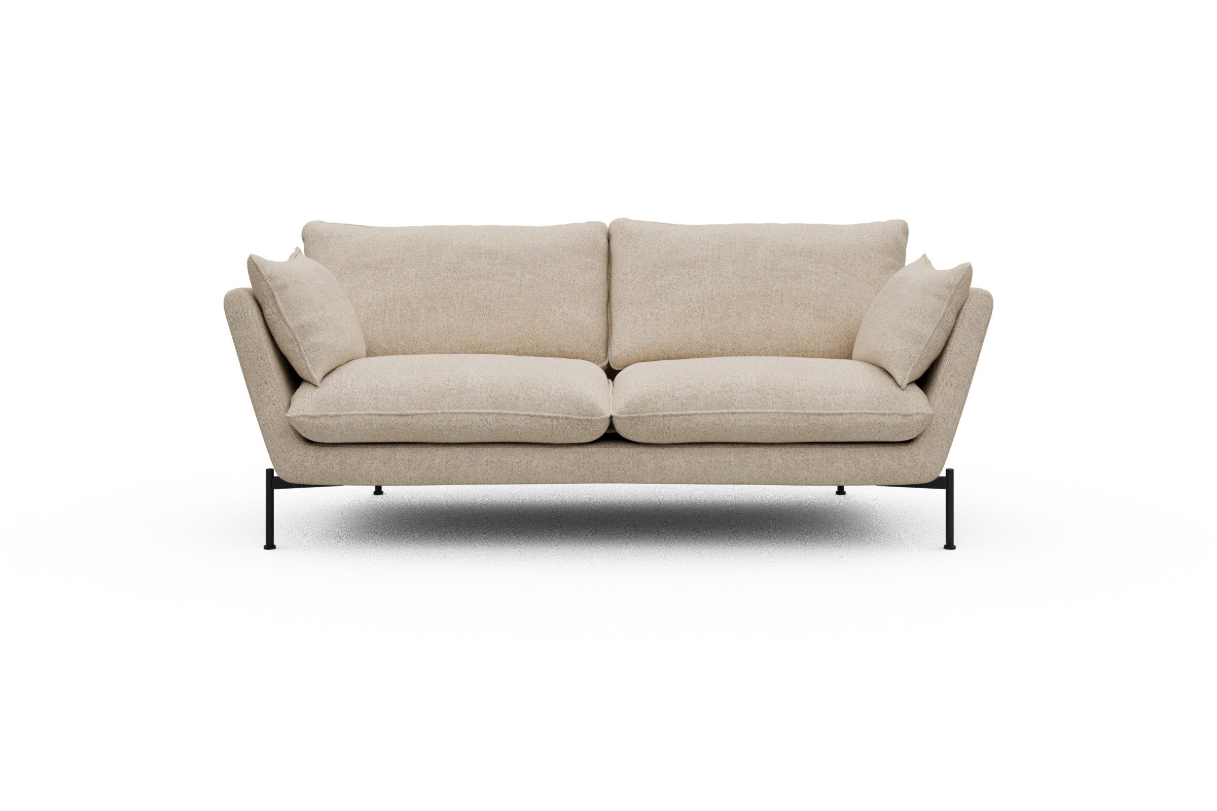Mit einer Gesamtbreite von 194 cm, einer Höhe von 82 cm und einer Tiefe von 91 cm bietet der Anton 2-Sitzer genau das richtige Maß aus Kompaktheit und Großzügigkeit. Zwei lose Sitzkissen und zwei Rückenkissen lassen sich nach Lust und Laune arrangieren – oder spontan als Kopfstütze zweckentfremden. Wir sagen: endlich ein Sofa, das mitdenkt!