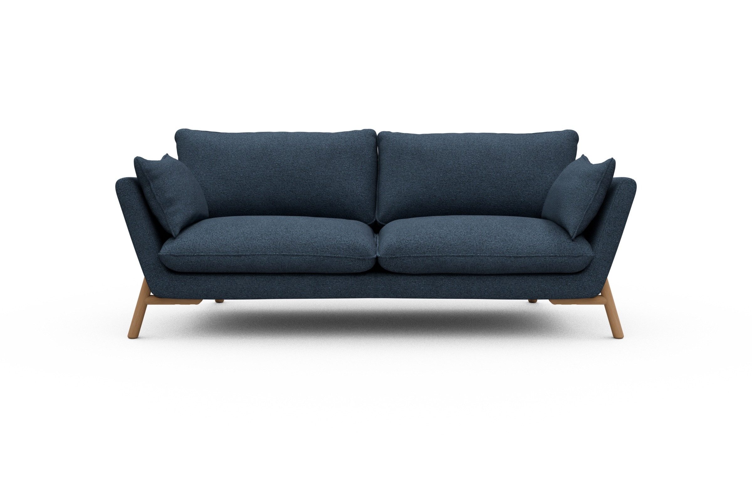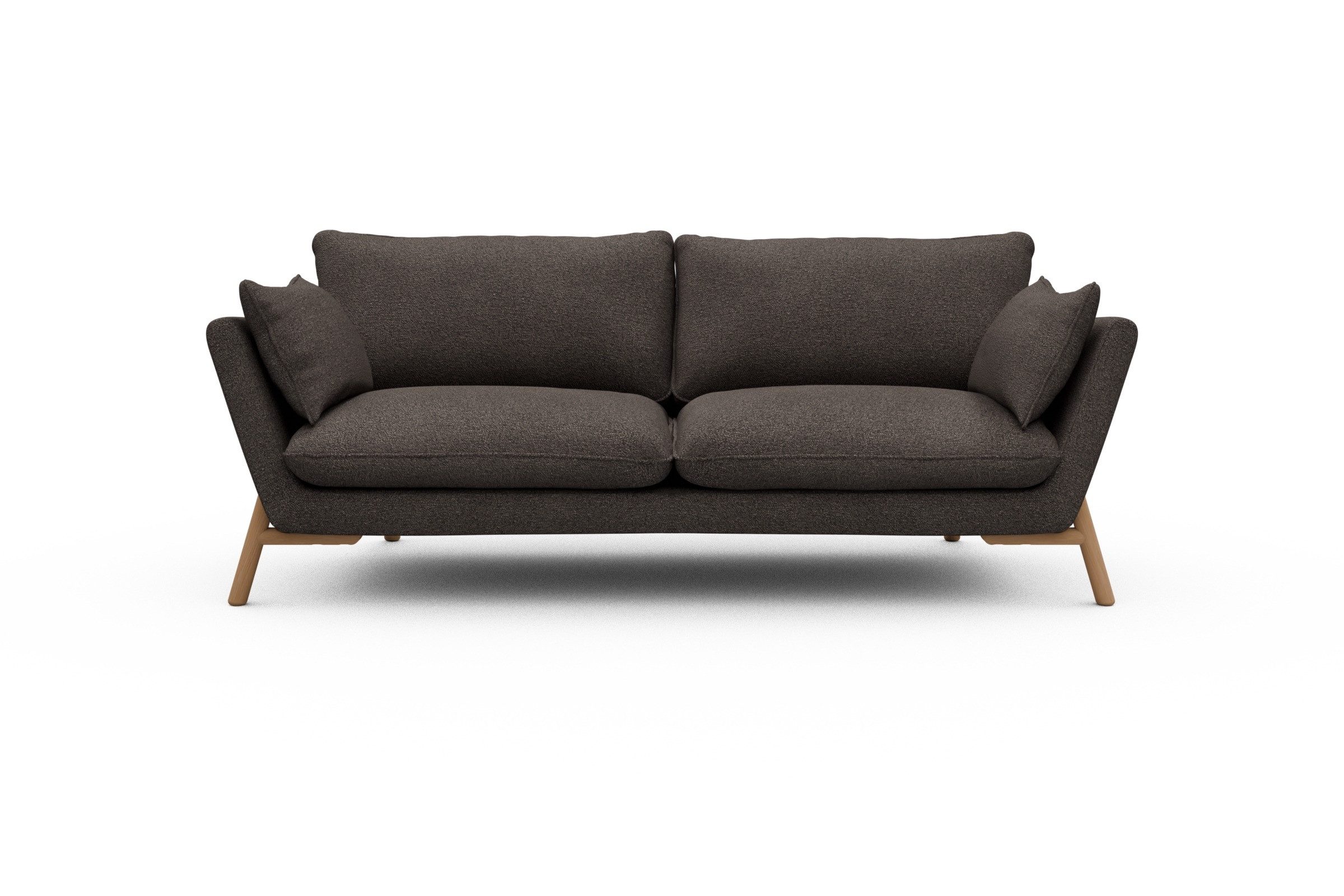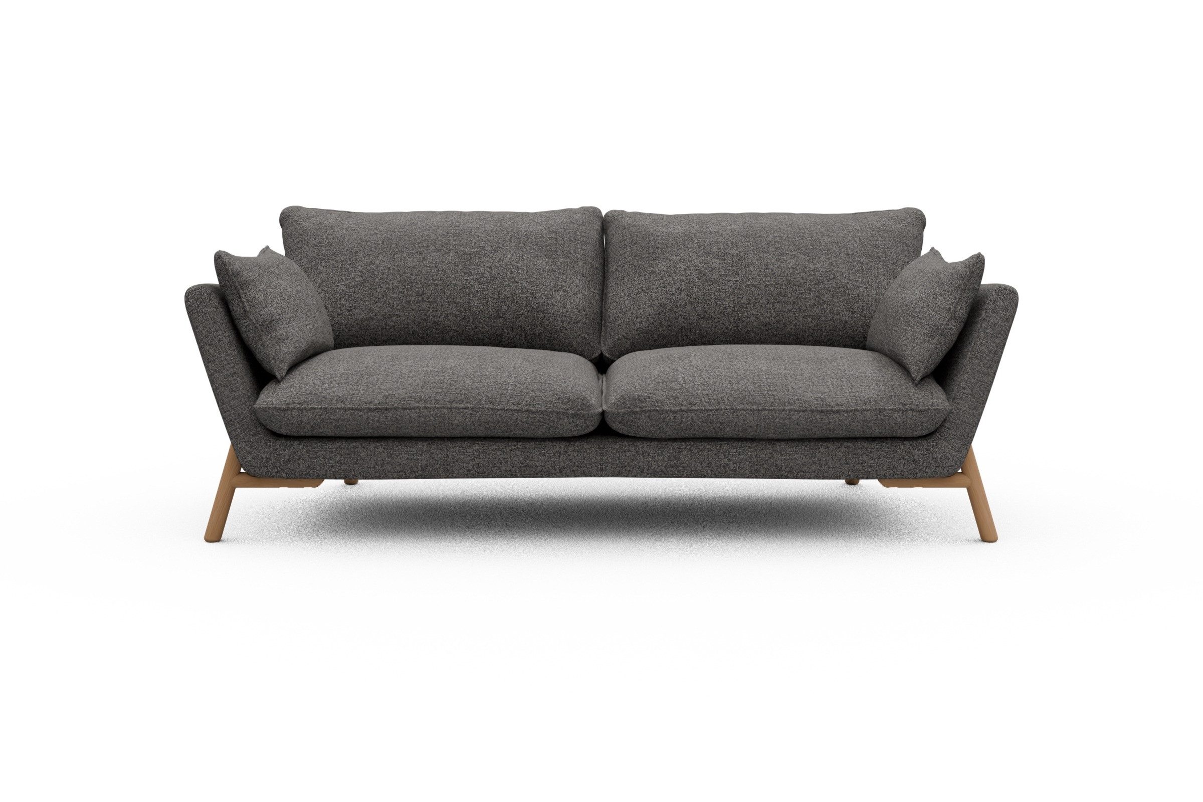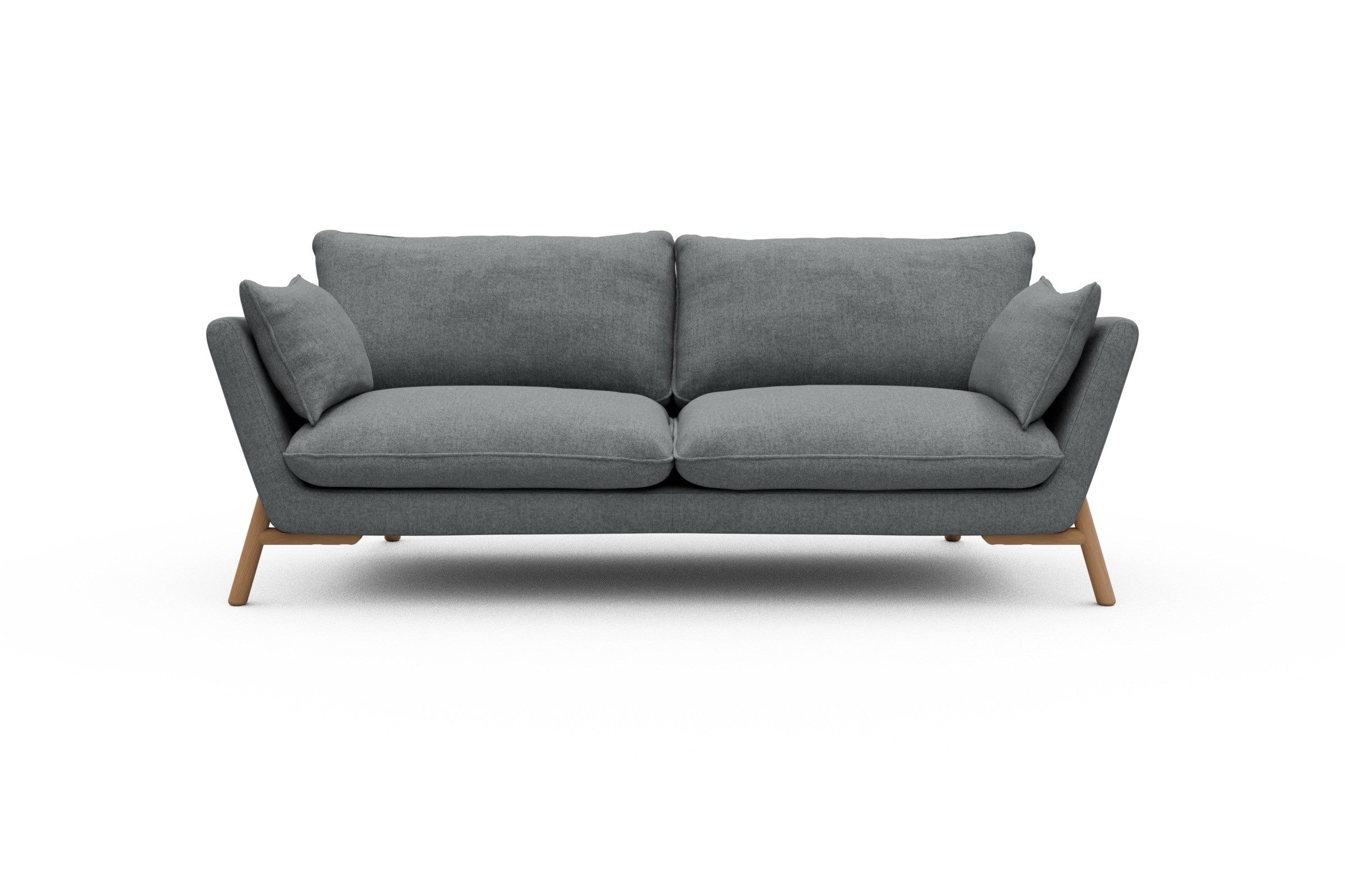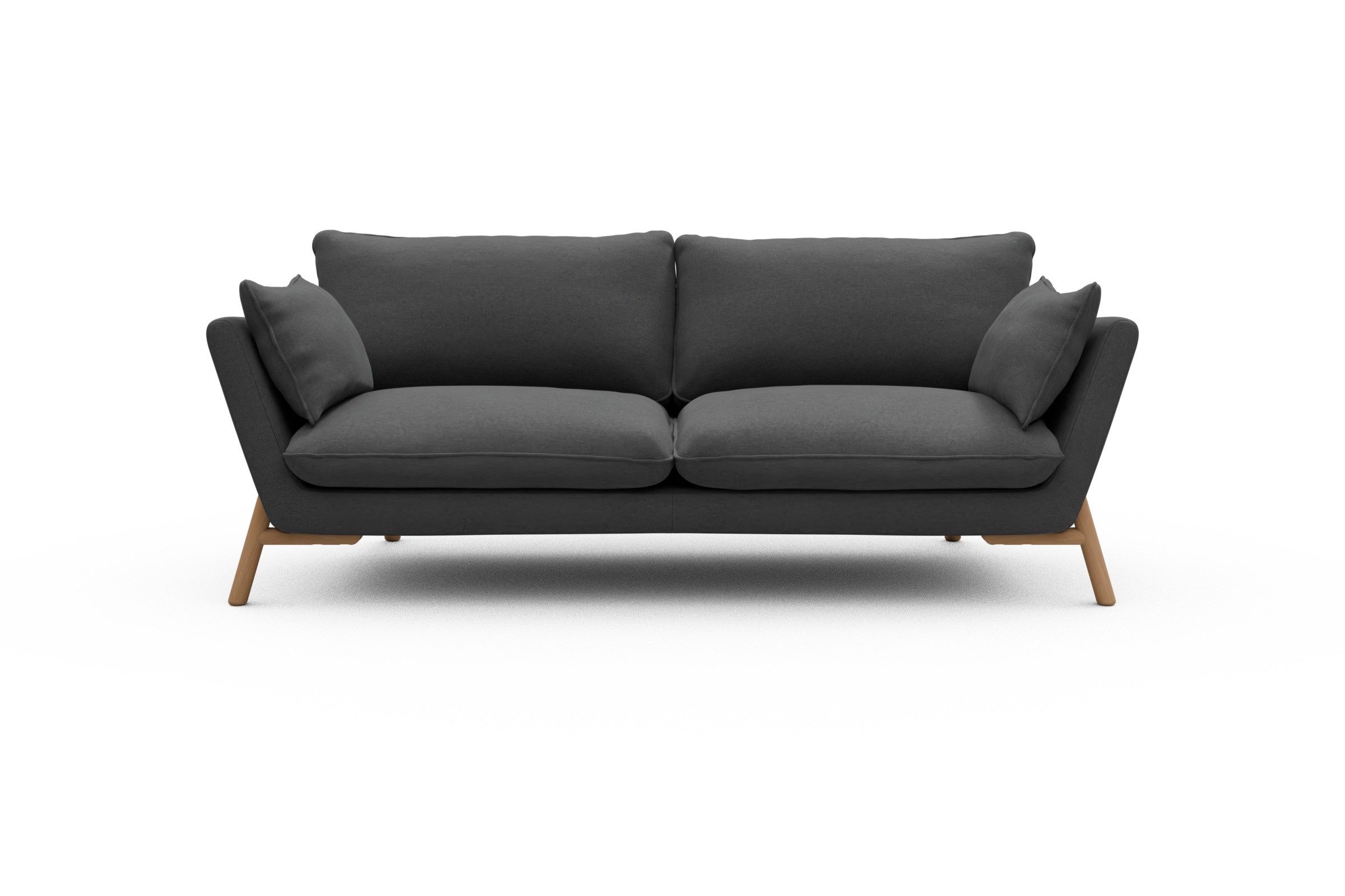Was Emil aus der Sofa-Masse heraushebt? Ganz klar: die schräg gestellten Armlehnen – stylisch, aber auch verdammt praktisch zum Anlehnen. Die lose Polsterung mit zwei großzügigen Sitz- und Rückenkissen macht’s noch gemütlicher und lässt genug Spielraum fürs perfekte Kissen-Arrangement.