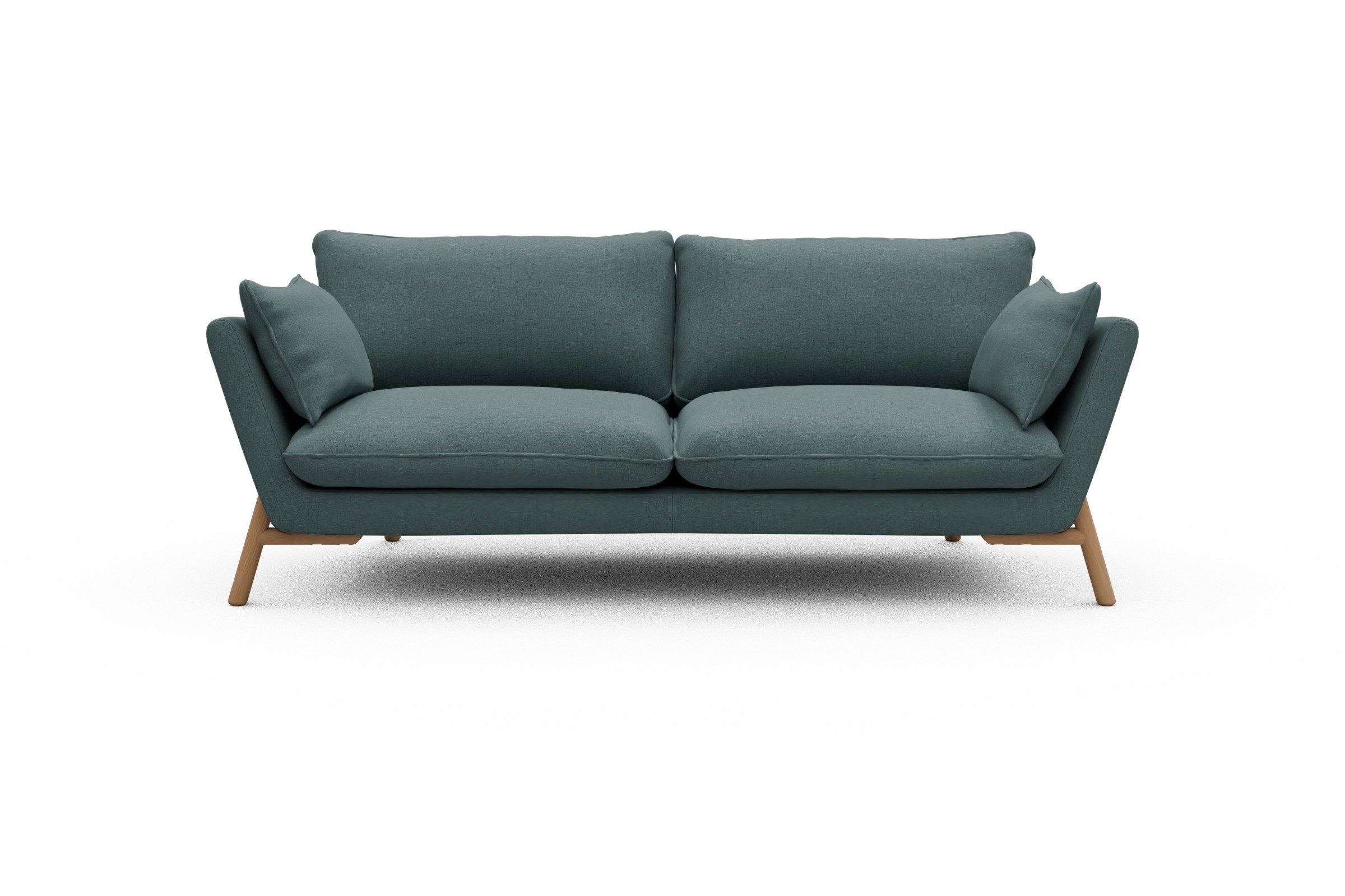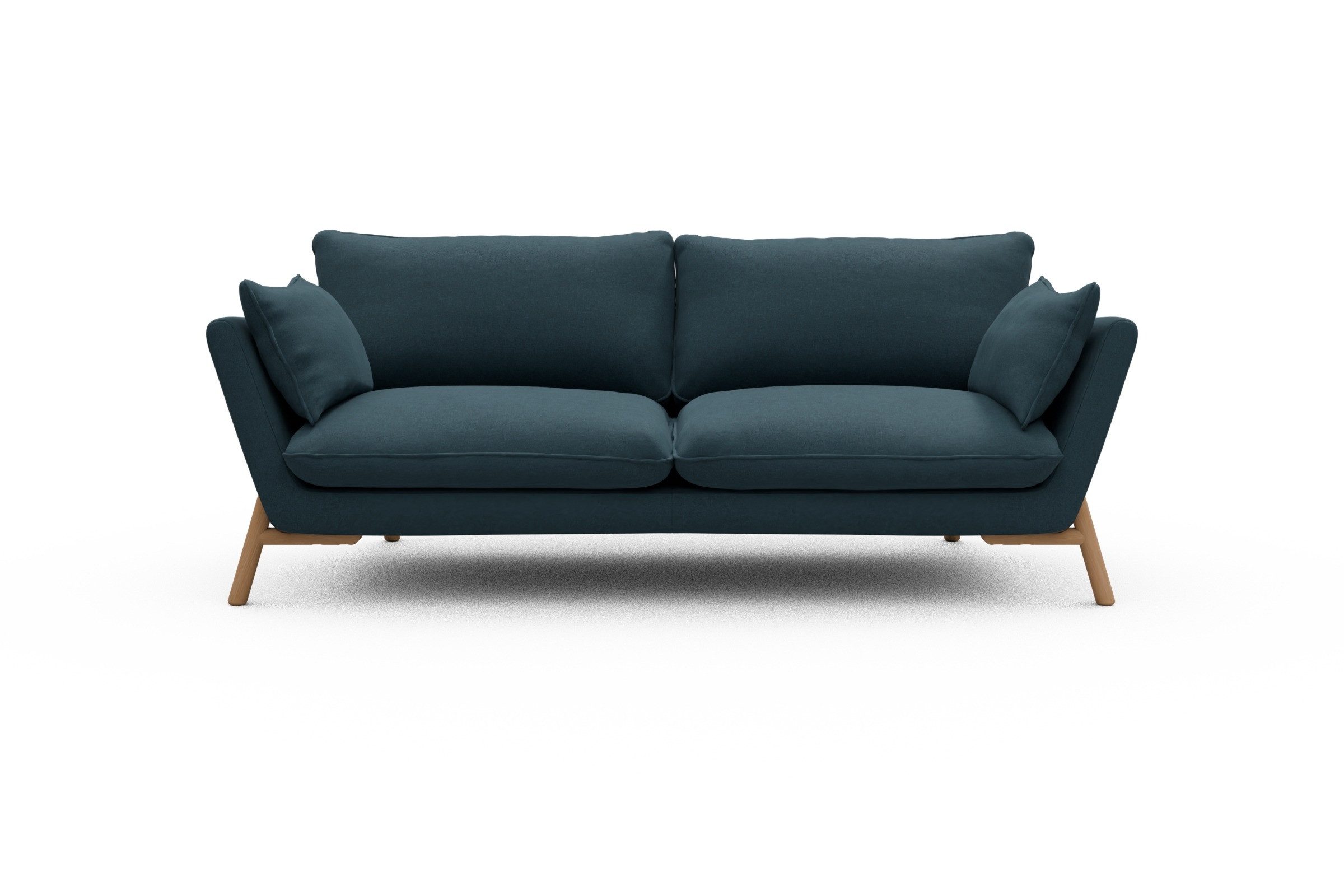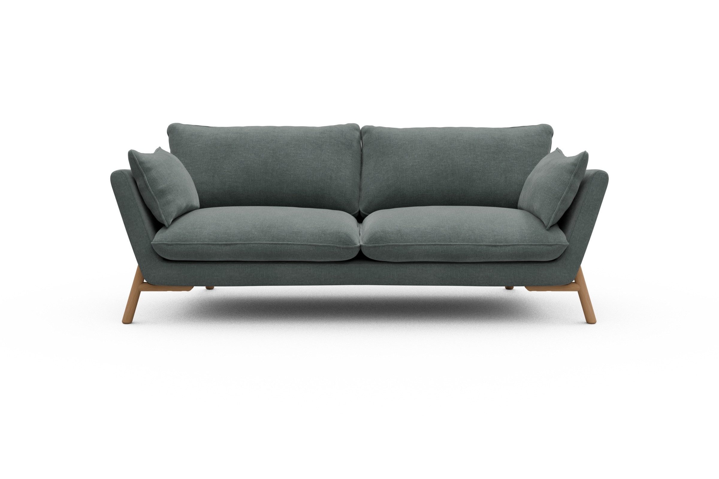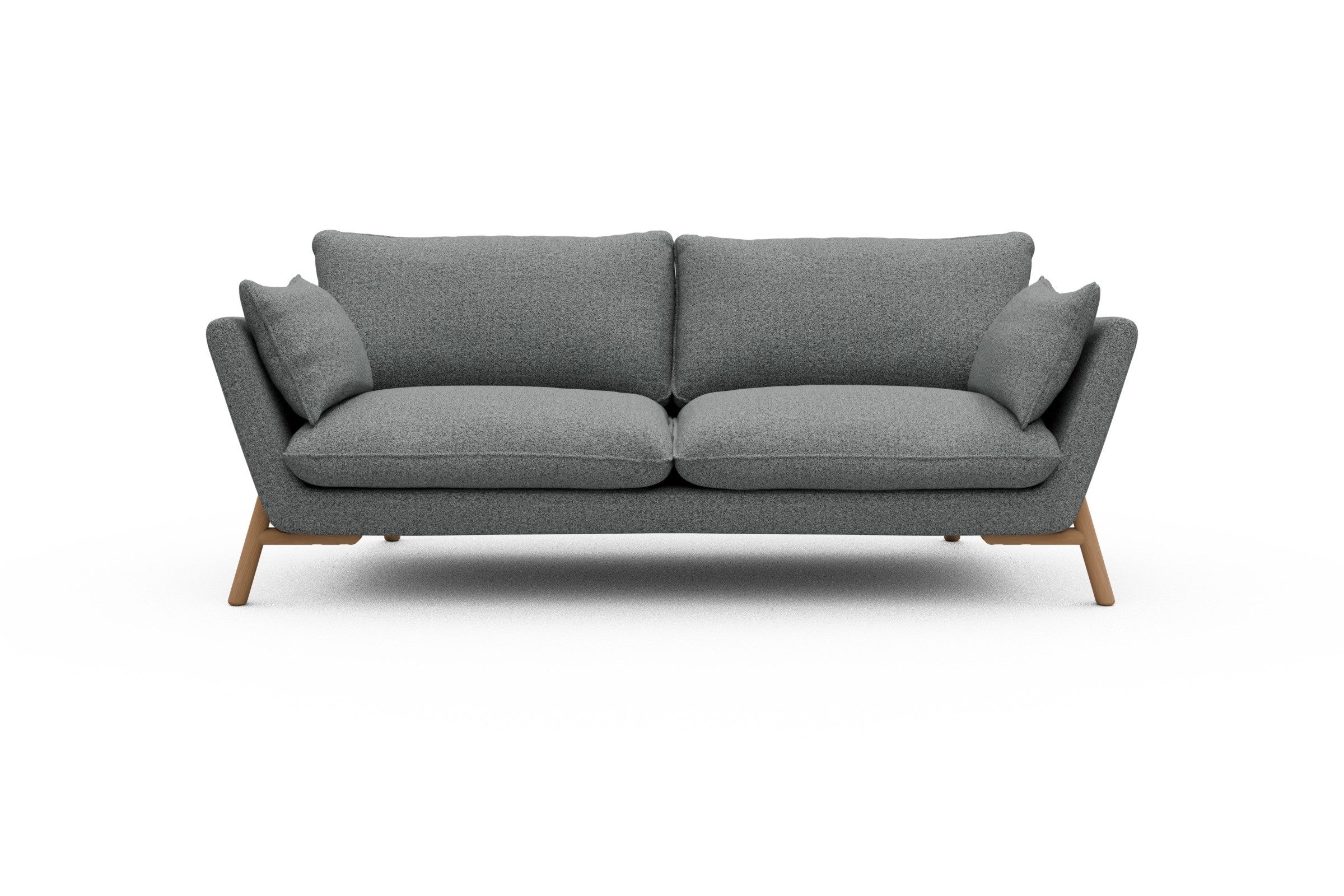 Was Emil aus der Sofa-Masse heraushebt? Ganz klar: die schräg gestellten Armlehnen – stylisch, aber auch verdammt praktisch zum Anlehnen. Die lose Polsterung mit zwei großzügigen Sitz- und Rückenkissen macht’s noch gemütlicher und lässt genug Spielraum fürs perfekte Kissen-Arrangement.