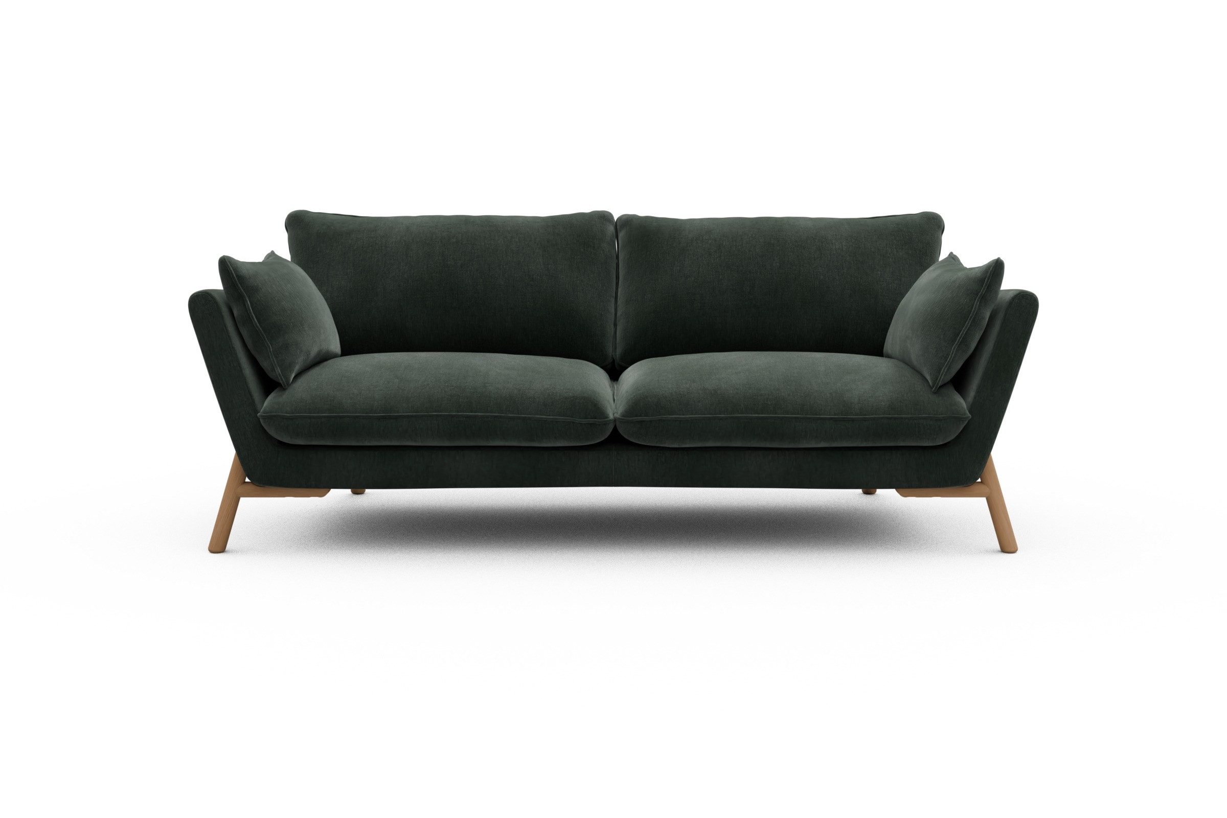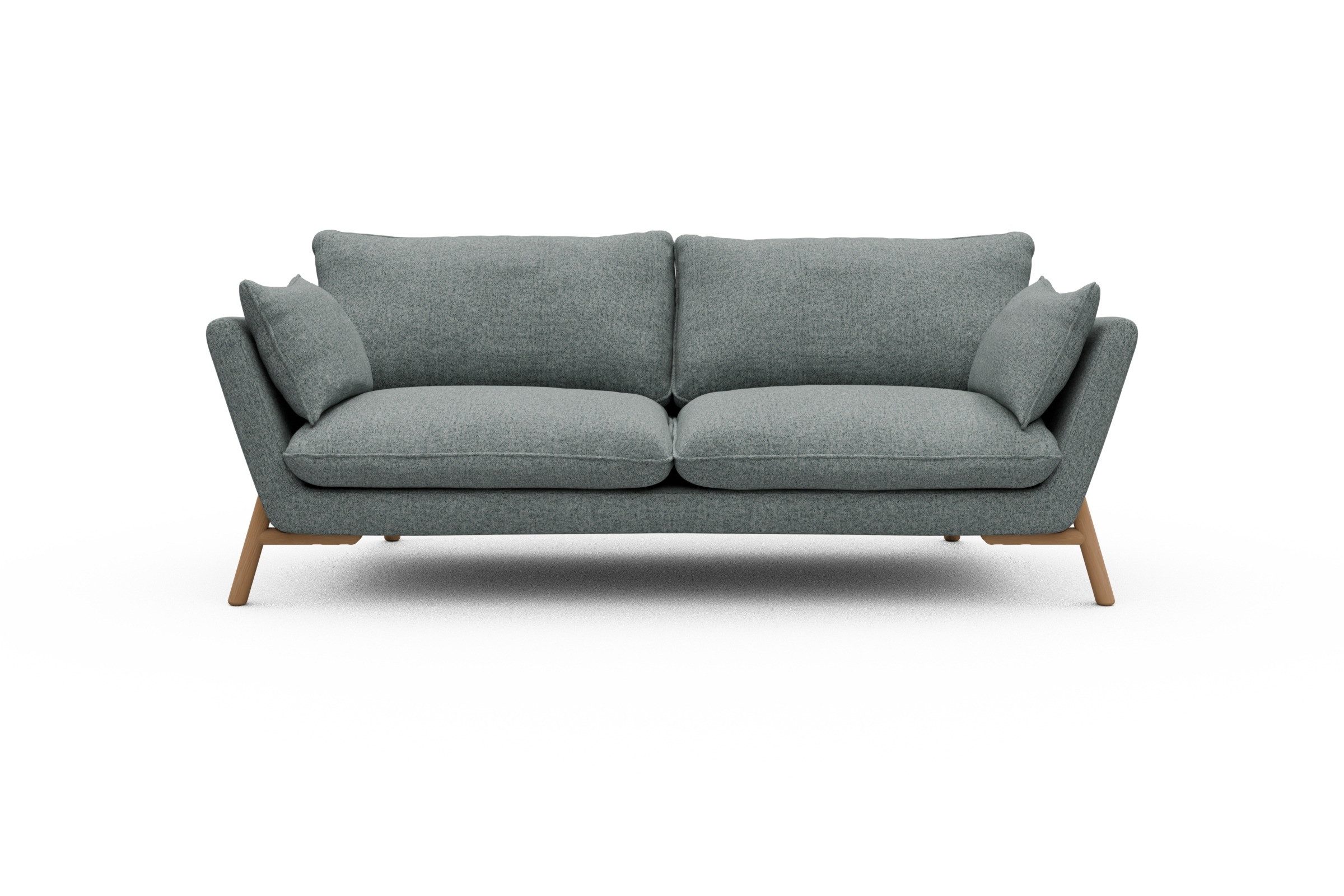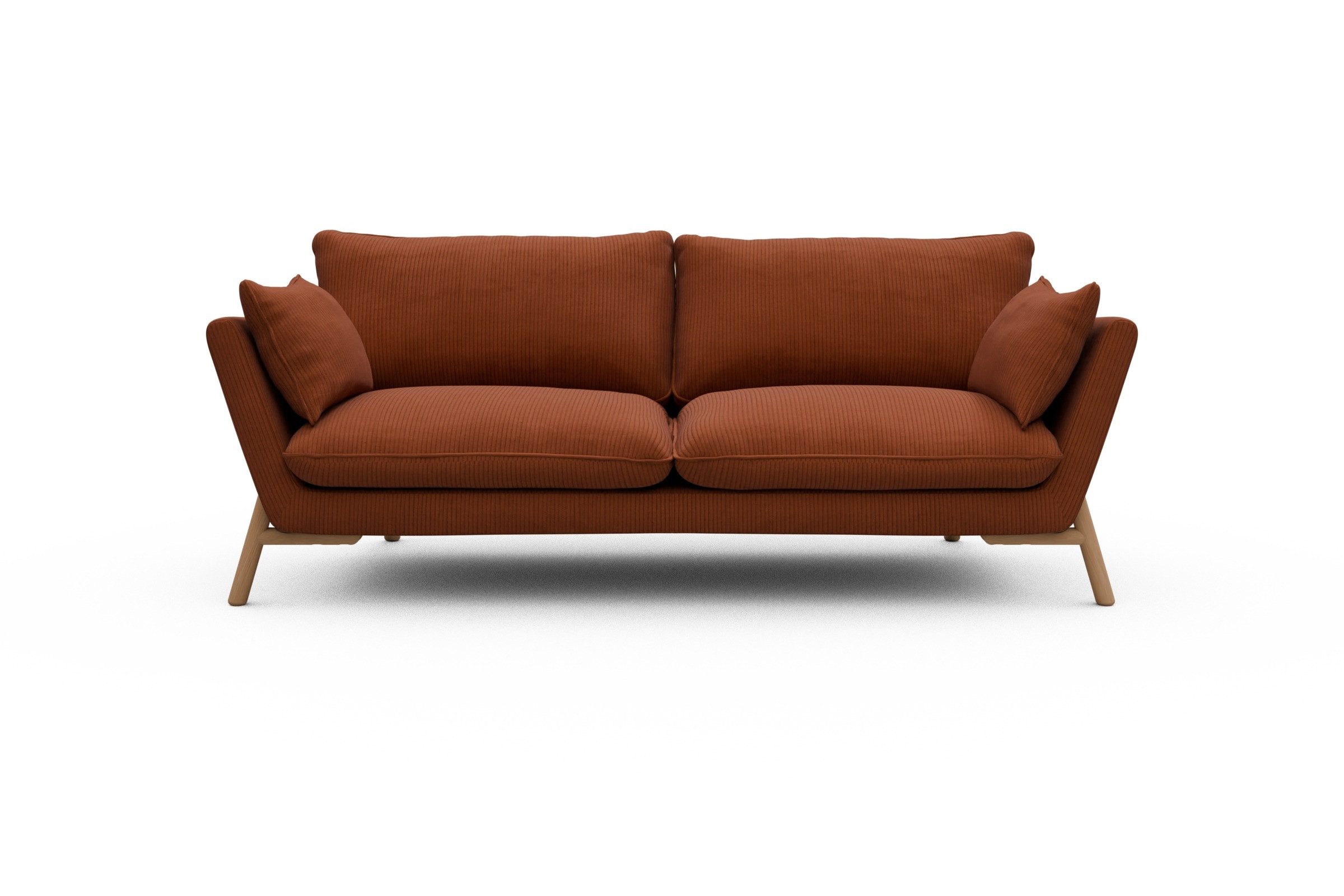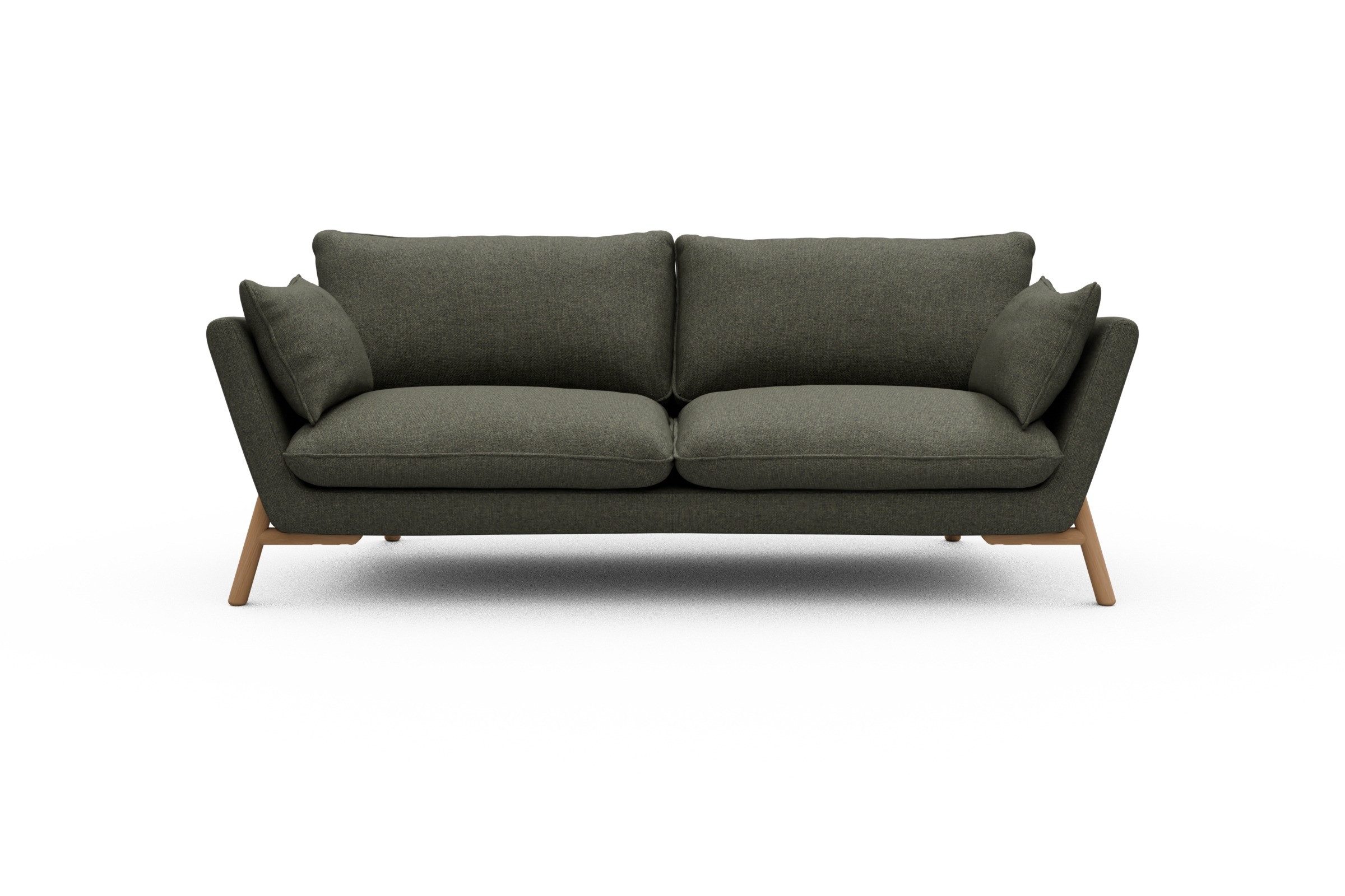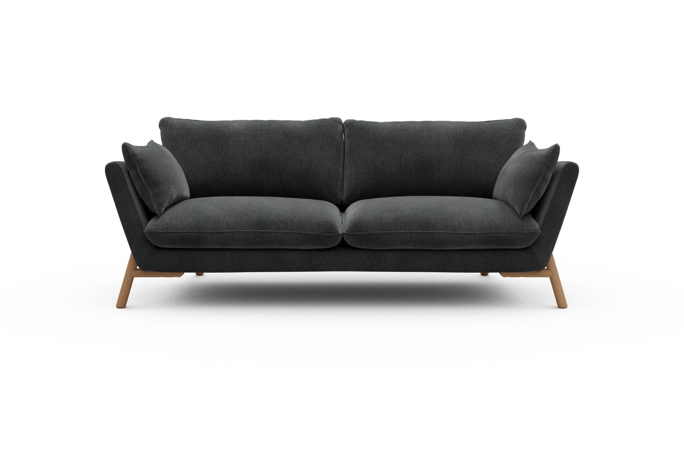 Was Emil aus der Sofa-Masse heraushebt? Ganz klar: die schräg gestellten Armlehnen – stylisch, aber auch verdammt praktisch zum Anlehnen. Die lose Polsterung mit zwei großzügigen Sitz- und Rückenkissen macht’s noch gemütlicher und lässt genug Spielraum fürs perfekte Kissen-Arrangement.
