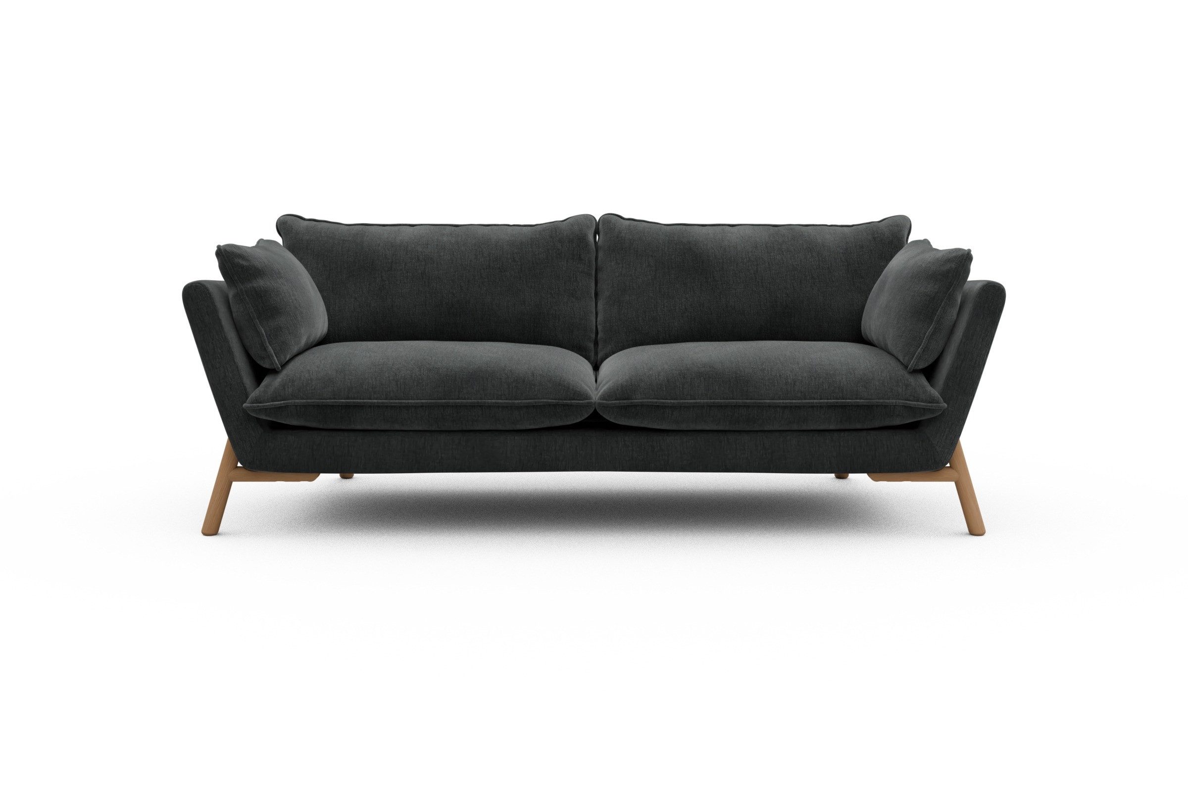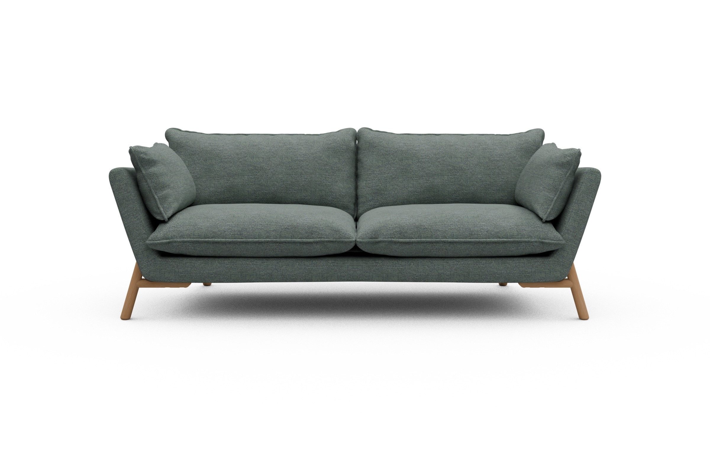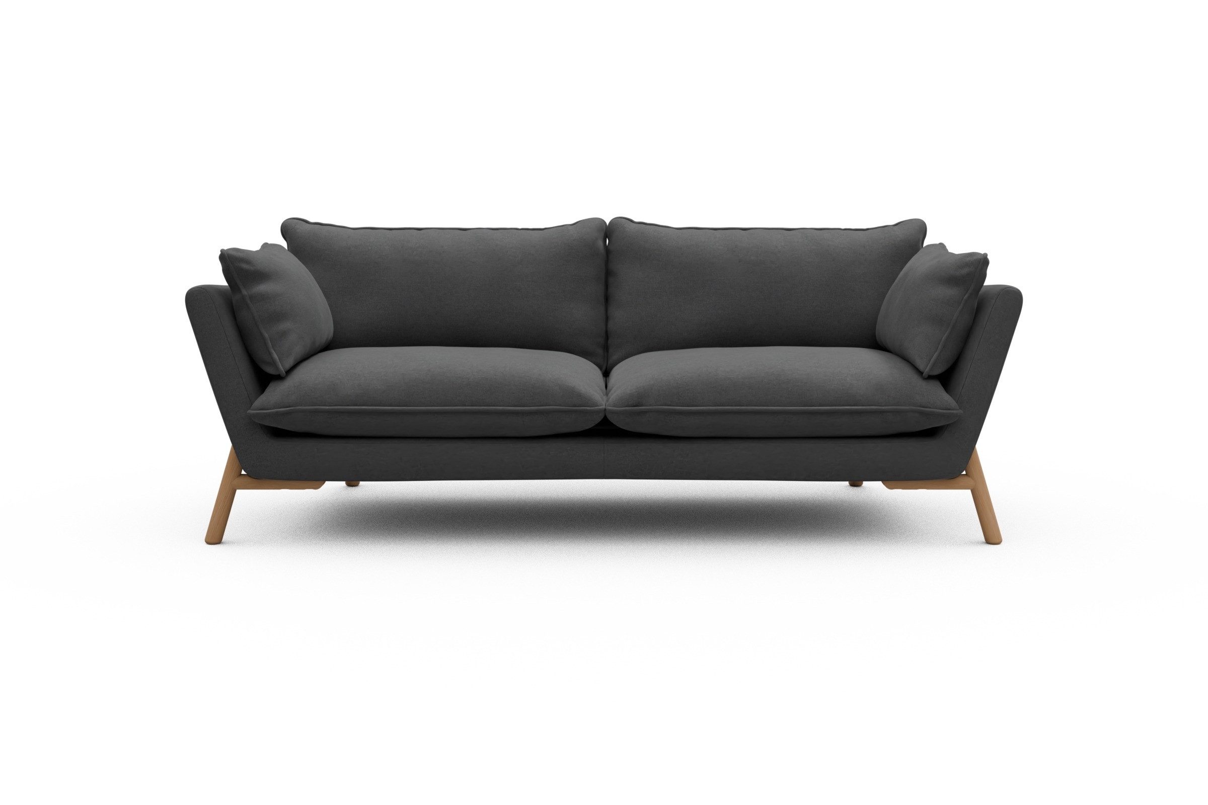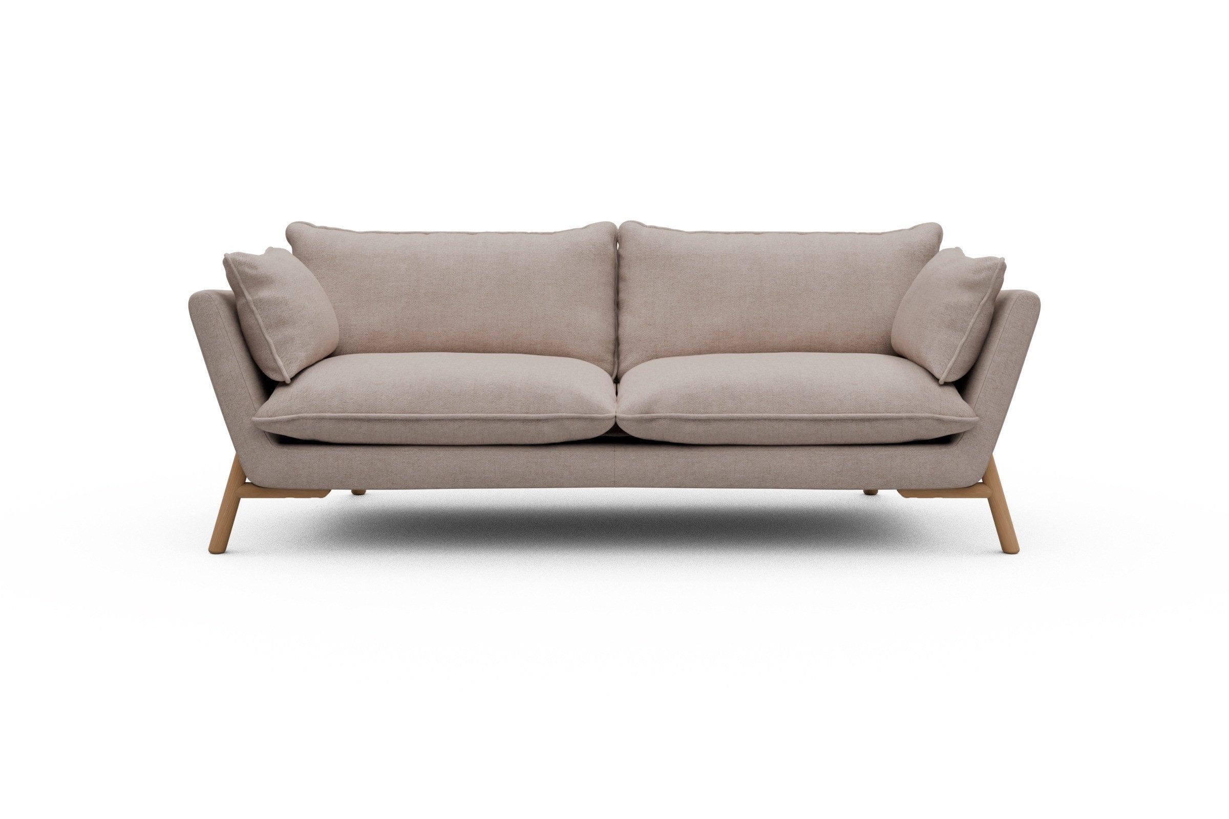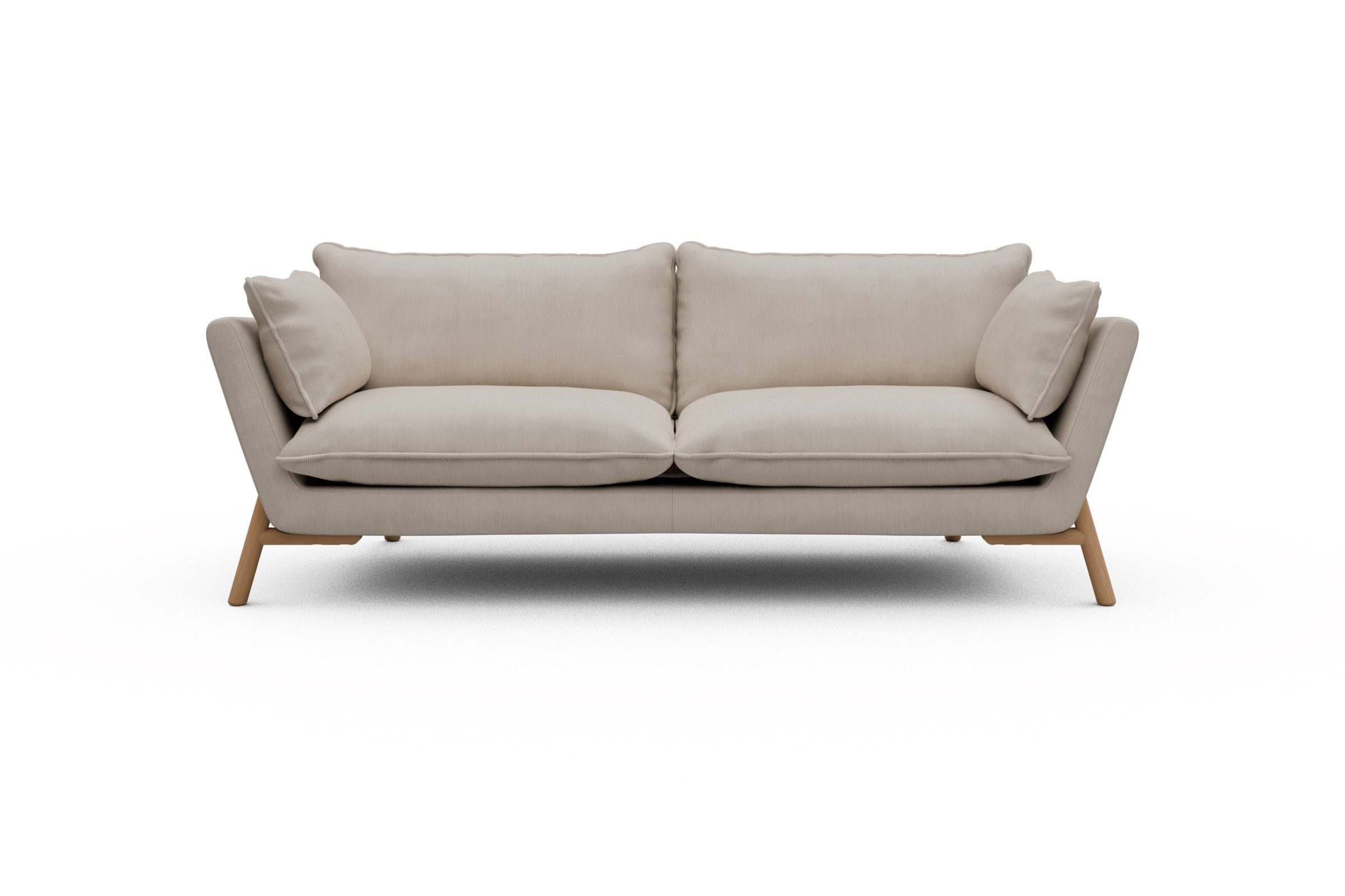 Mit großzügigen 215 cm Breite, 91 cm Tiefe und einer Gesamthöhe von 82 cm bietet Emil genug Platz für gemütliche Filmabende, entspannte Lesestunden oder spontane Powernaps. Die Sitzhöhe von 44 cm und eine Sitztiefe von 65 cm sorgen für lässigen Lounge-Komfort – ob Beine hoch oder Schneidersitz, Emil macht alles mit. Die zwei losen Sitzkissen und Rückenkissen laden dazu ein, sich richtig reinzulehnen. Und die schräg gestellten Armlehnen? Nicht nur ein optischer Clou, sondern auch die perfekte Ablage für müde Ellbogen oder das nächste Buch.