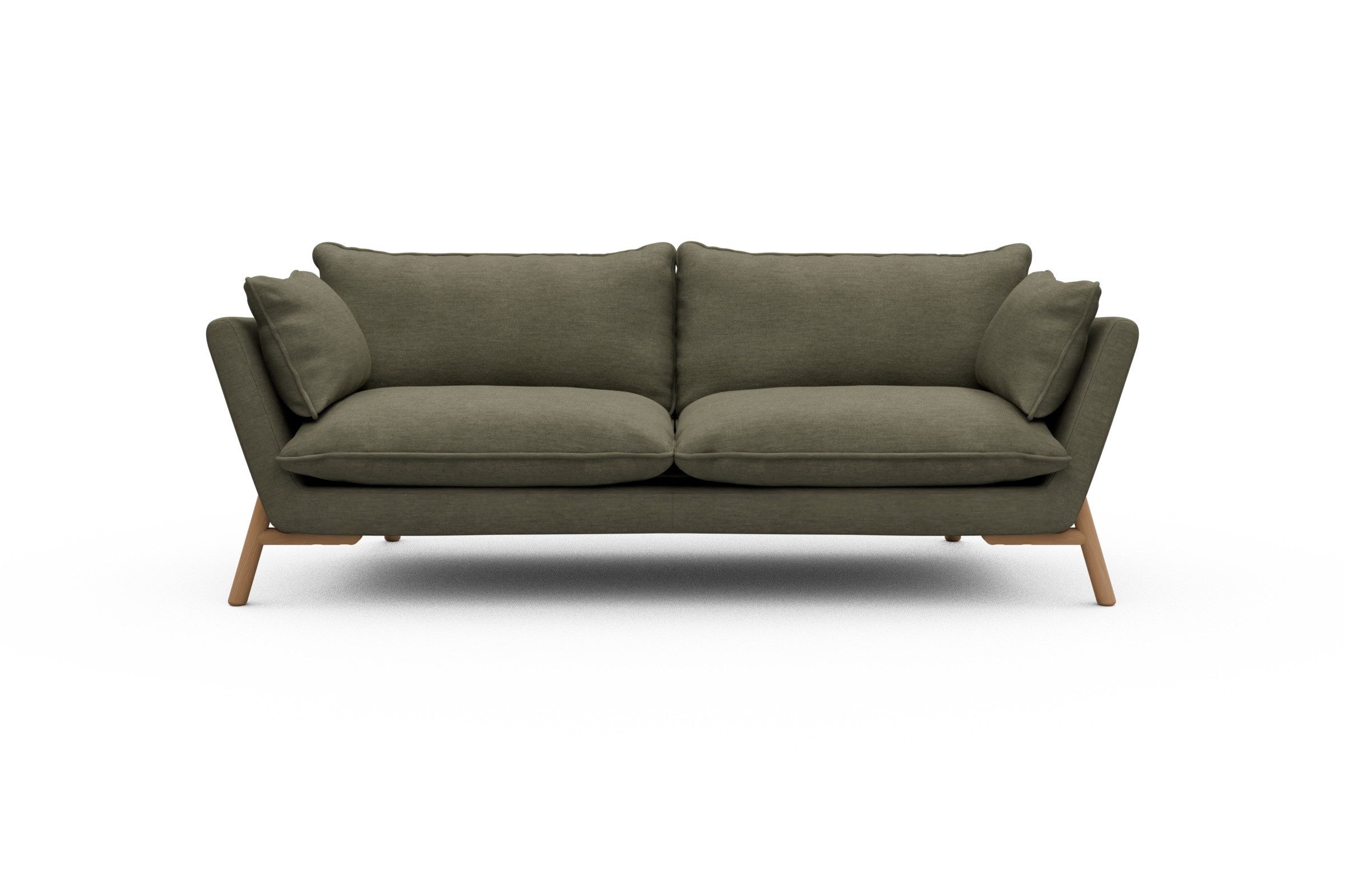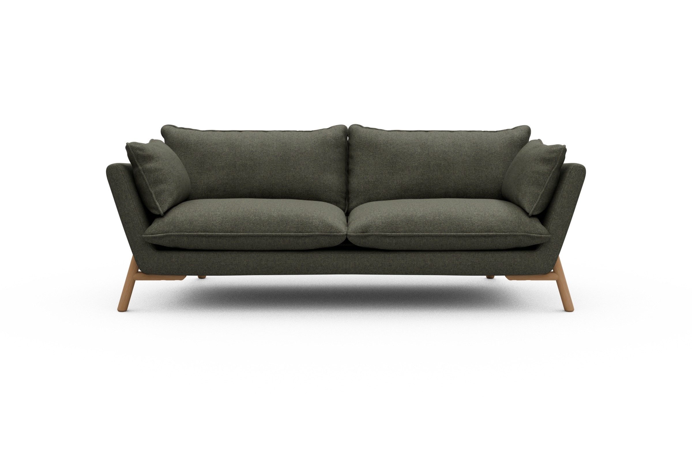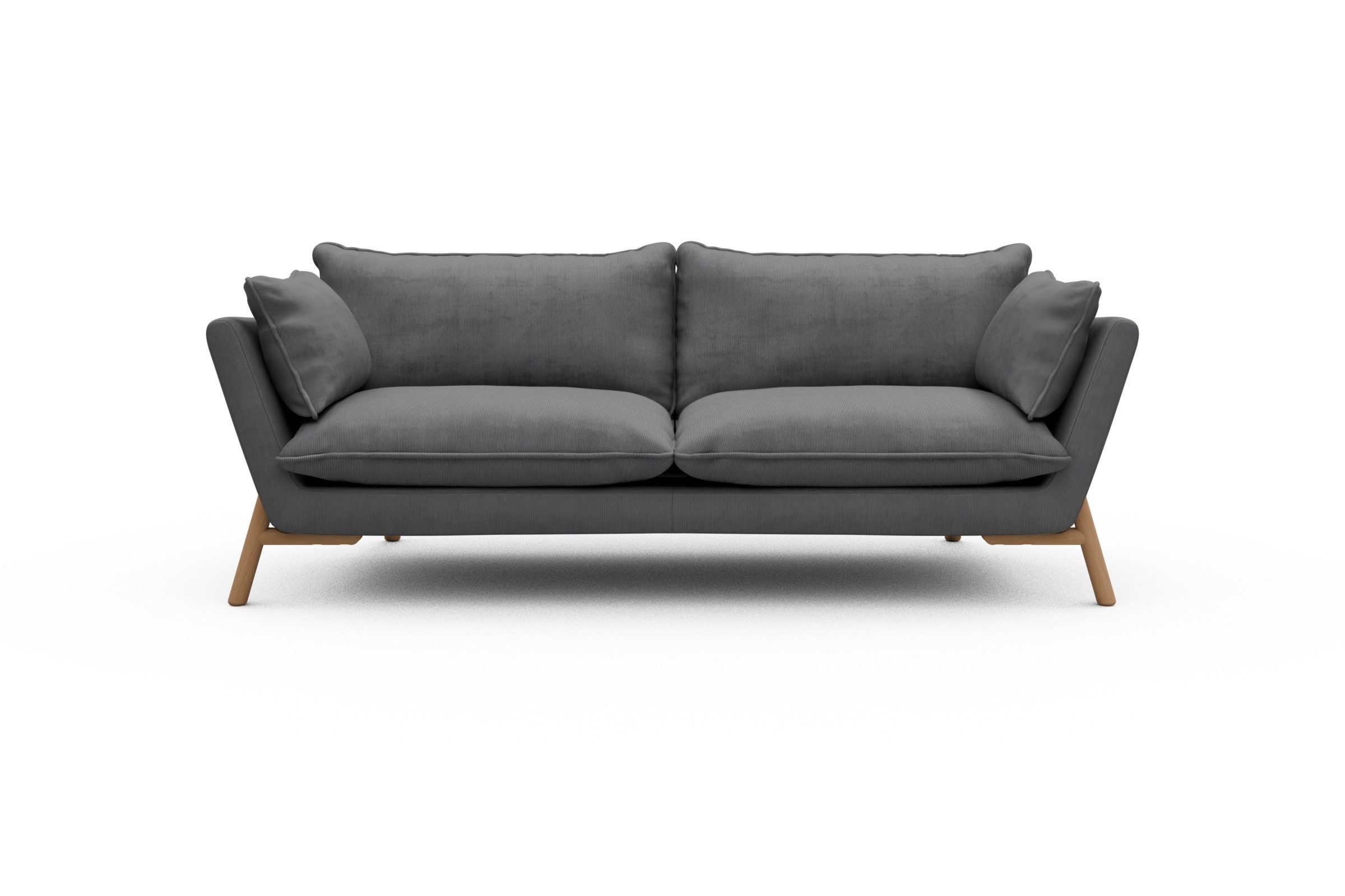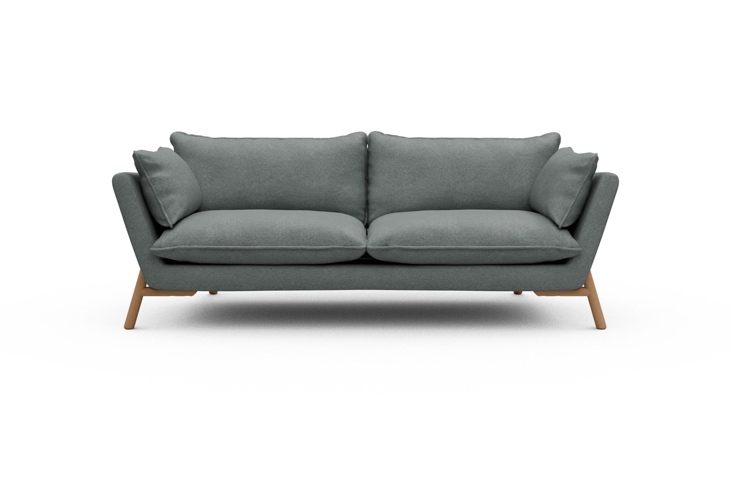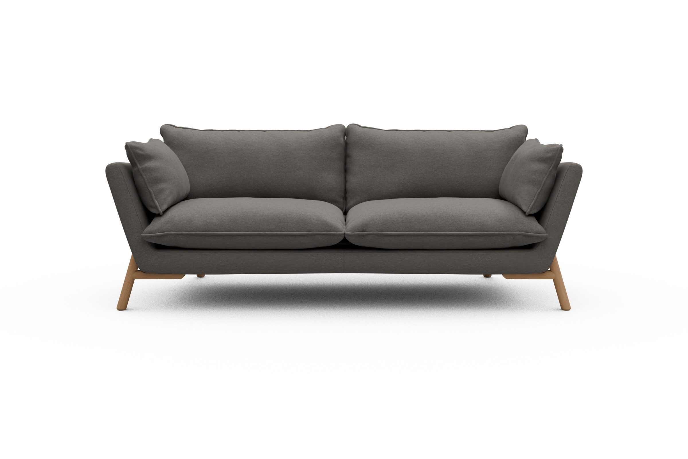 Mit großzügigen 215 cm Breite, 91 cm Tiefe und einer Gesamthöhe von 82 cm bietet Emil genug Platz für gemütliche Filmabende, entspannte Lesestunden oder spontane Powernaps. Die Sitzhöhe von 44 cm und eine Sitztiefe von 65 cm sorgen für lässigen Lounge-Komfort – ob Beine hoch oder Schneidersitz, Emil macht alles mit. Die zwei losen Sitzkissen und Rückenkissen laden dazu ein, sich richtig reinzulehnen. Und die schräg gestellten Armlehnen? Nicht nur ein optischer Clou, sondern auch die perfekte Ablage für müde Ellbogen oder das nächste Buch.