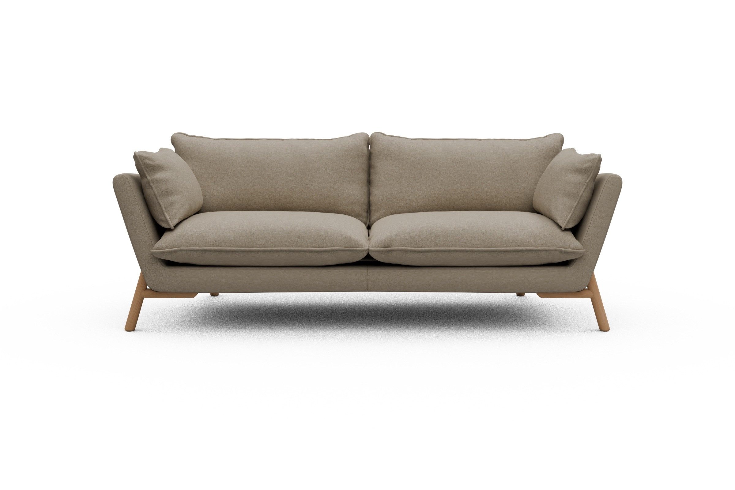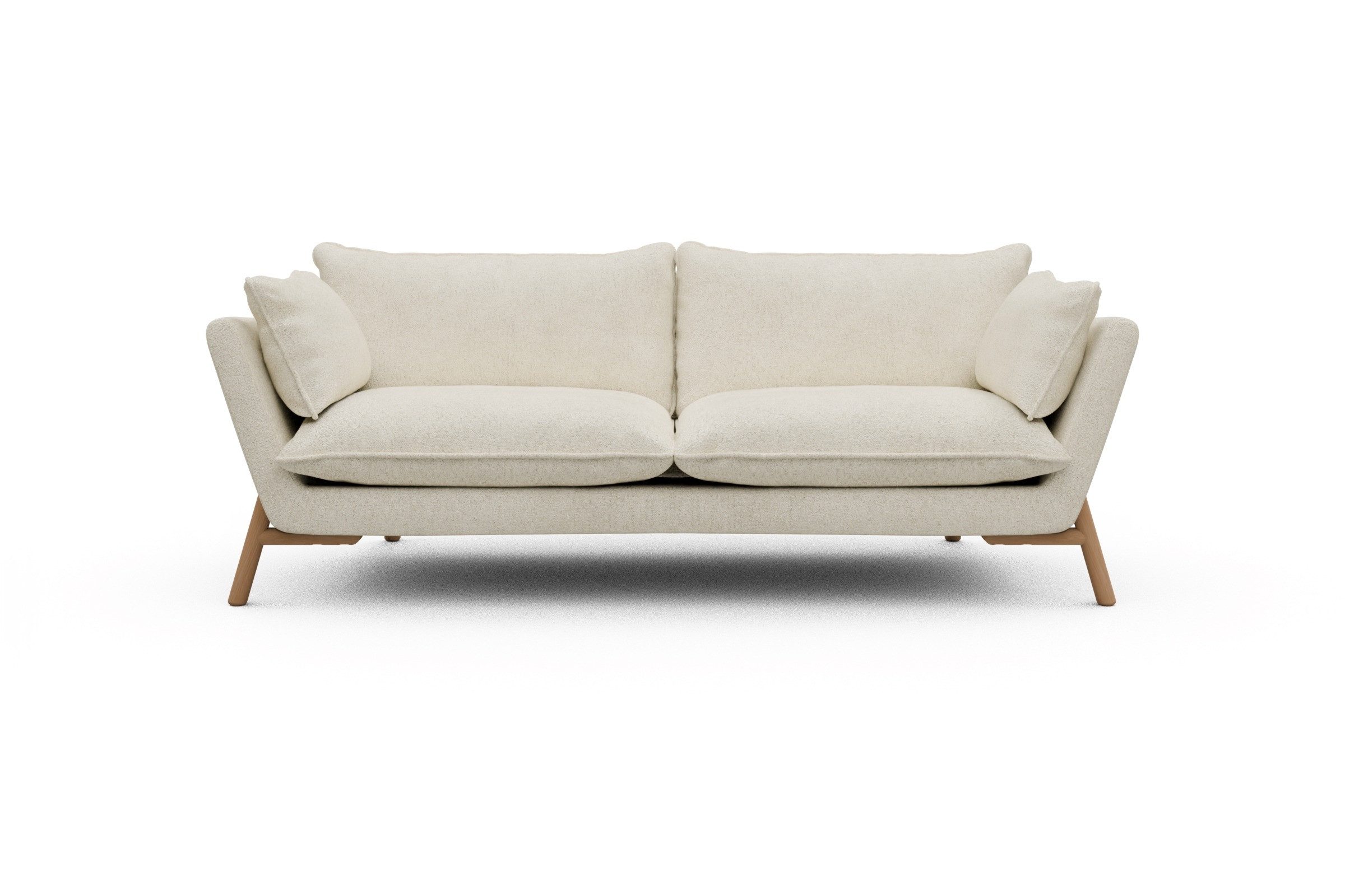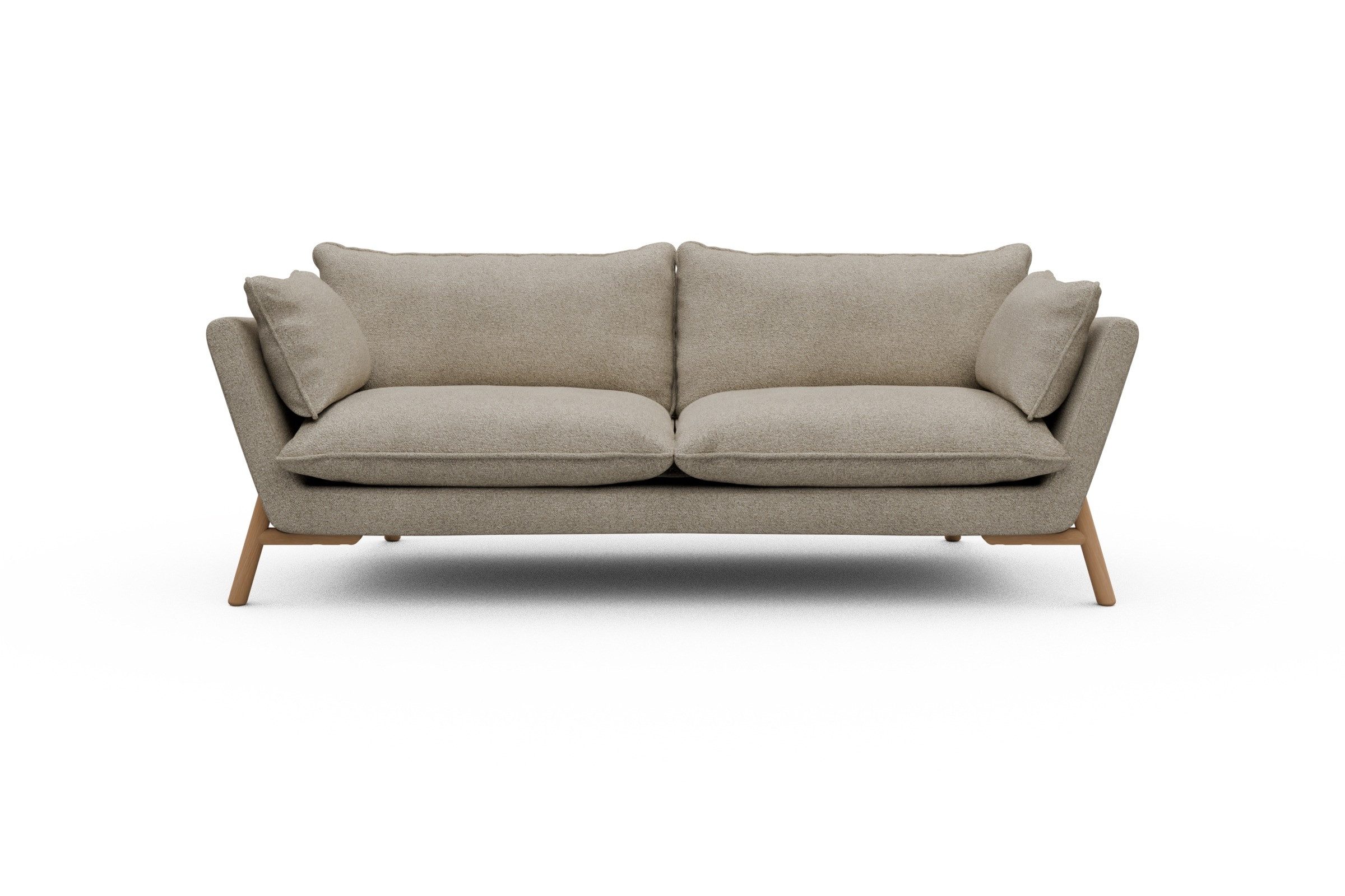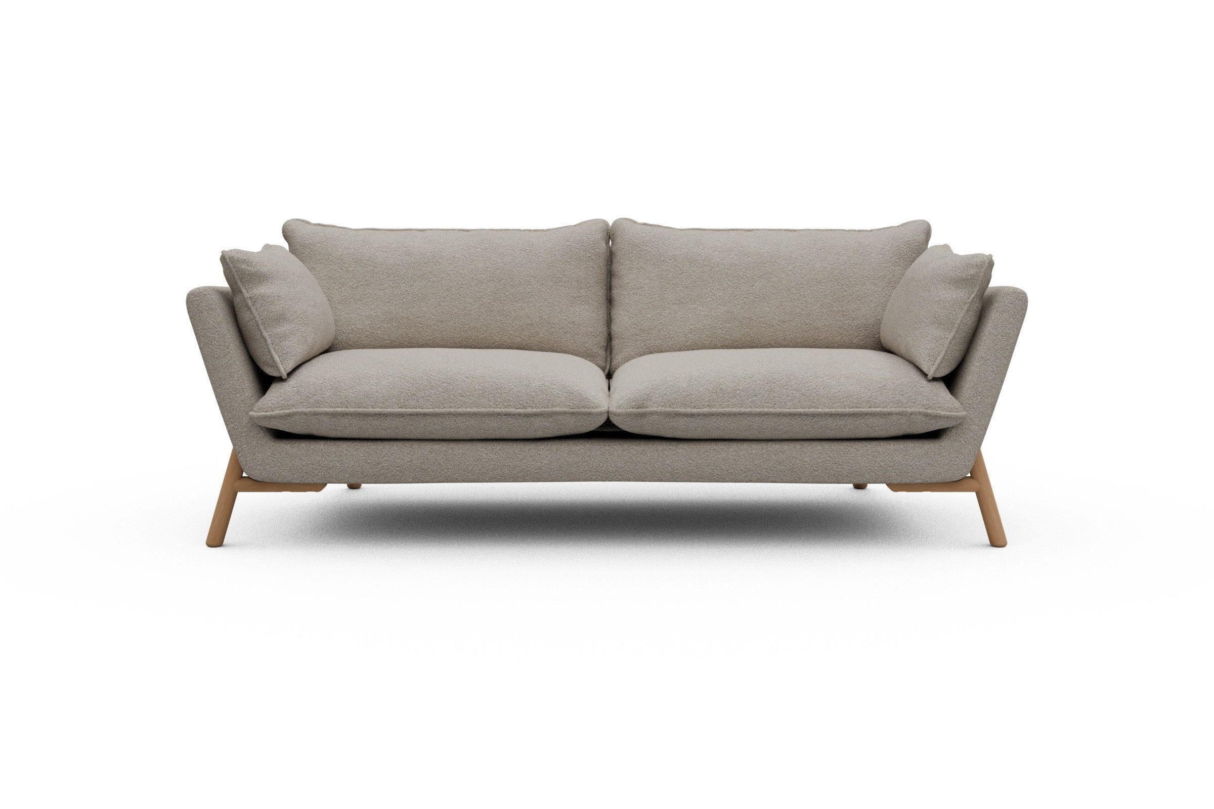 Sie suchen ein Sofa, das nicht nur fantastisch aussieht, sondern sich auch wie eine Umarmung anfühlt? Voilà – das Emil PREMIUM 3-Sitzer Sofa in Bouclé und Eiche Natur ist genau der charmante Mitbewohner, den Ihr Wohnzimmer verdient. Handgefertigt in Europa und mit einem Augenzwinkern designt, verbindet Emil modernes Understatement mit luxuriösem Komfort. Der samtig-weiche Bouclé-Bezug in edler Struktur bringt nicht nur Textur ins Spiel, sondern auch ein kleines Stil-Statement.