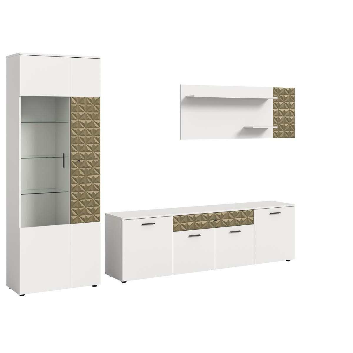 möbelvita Wohnwand Halo Wohnwand B/H/T 305x195x37 in weiß und gold, (1x Vitrine, 1x Lowboar, 1x Wandboard)