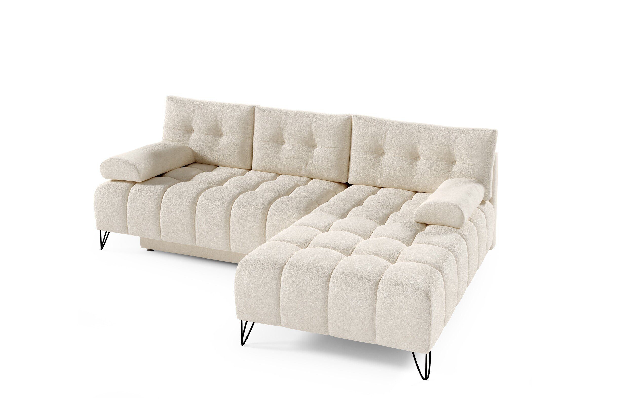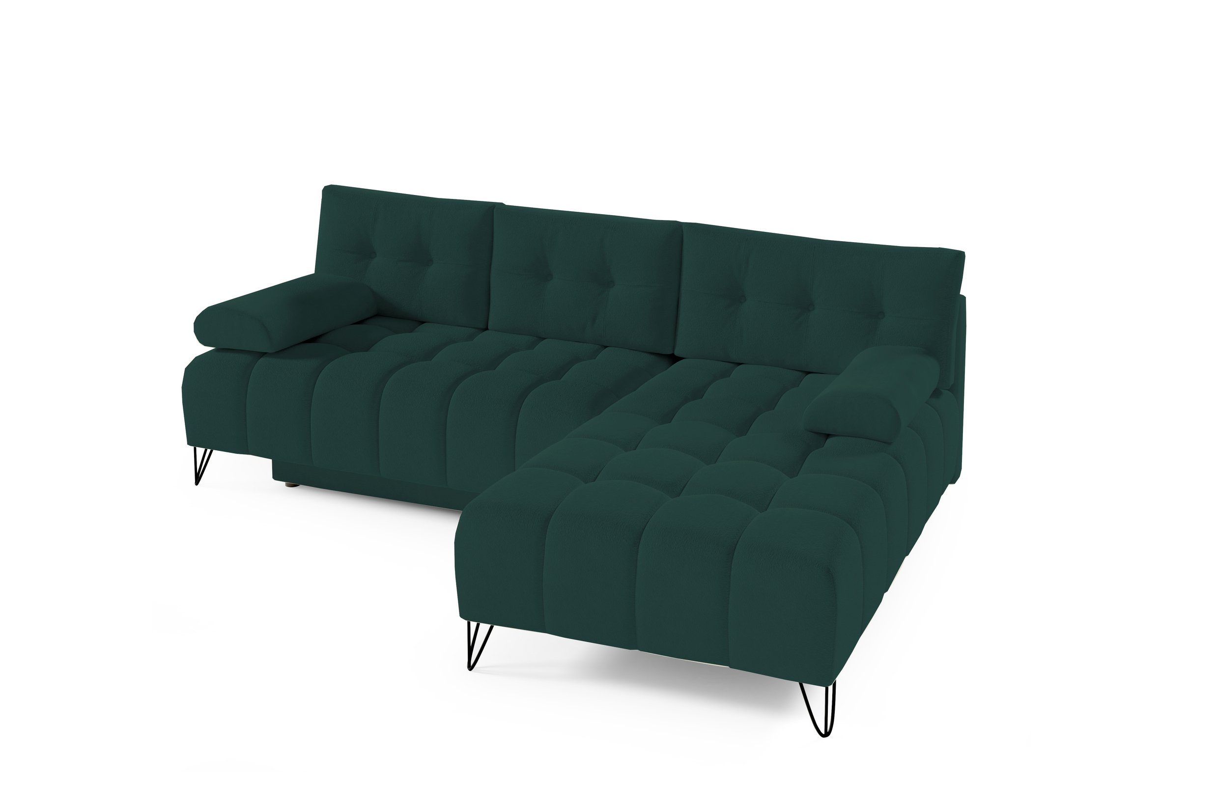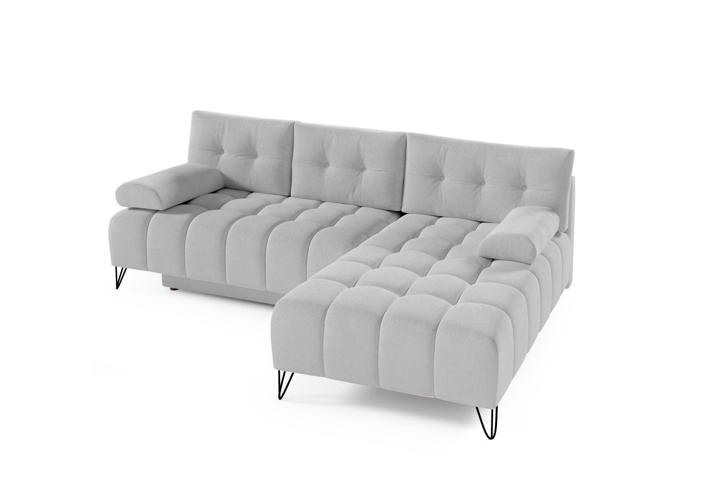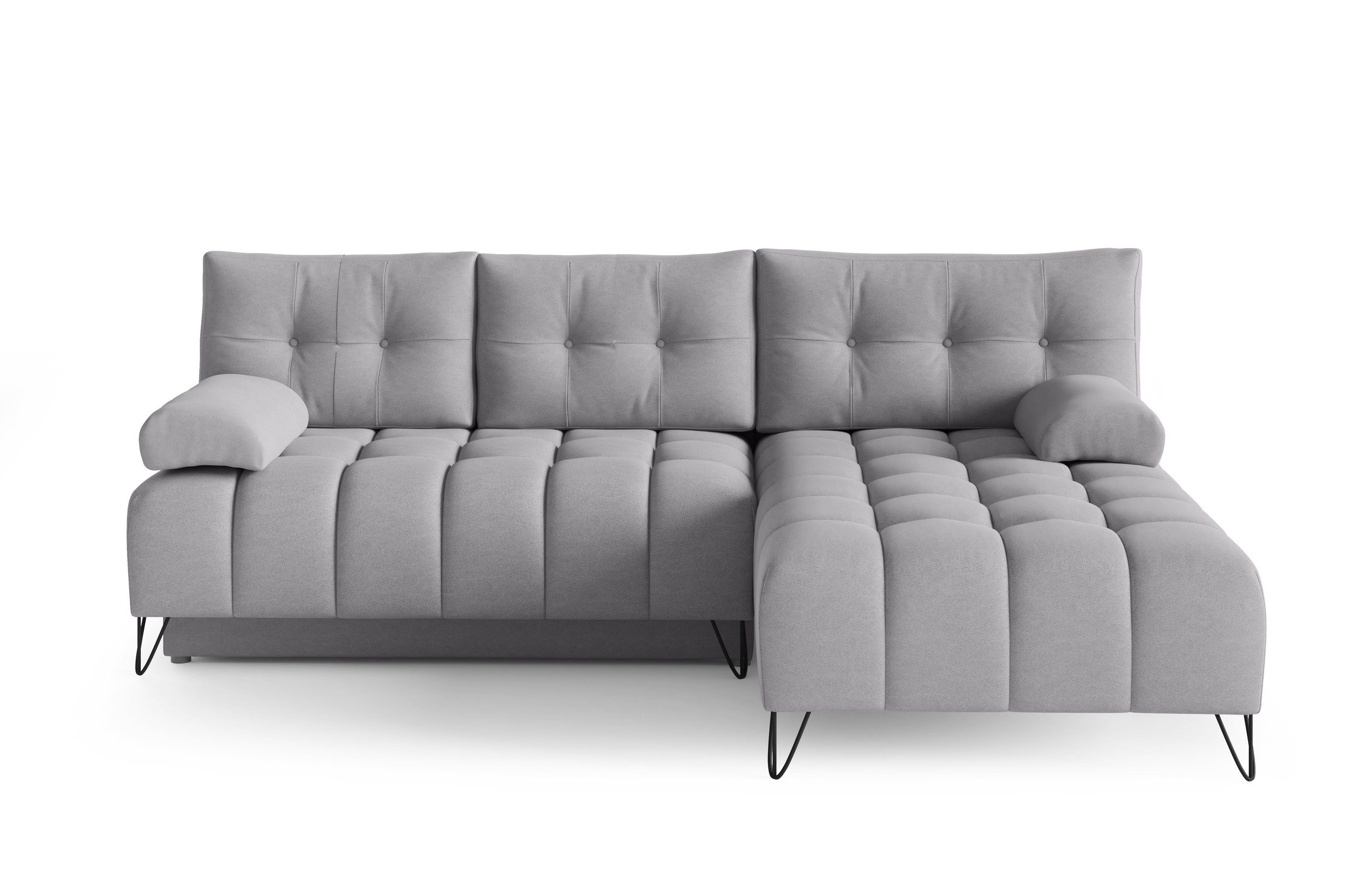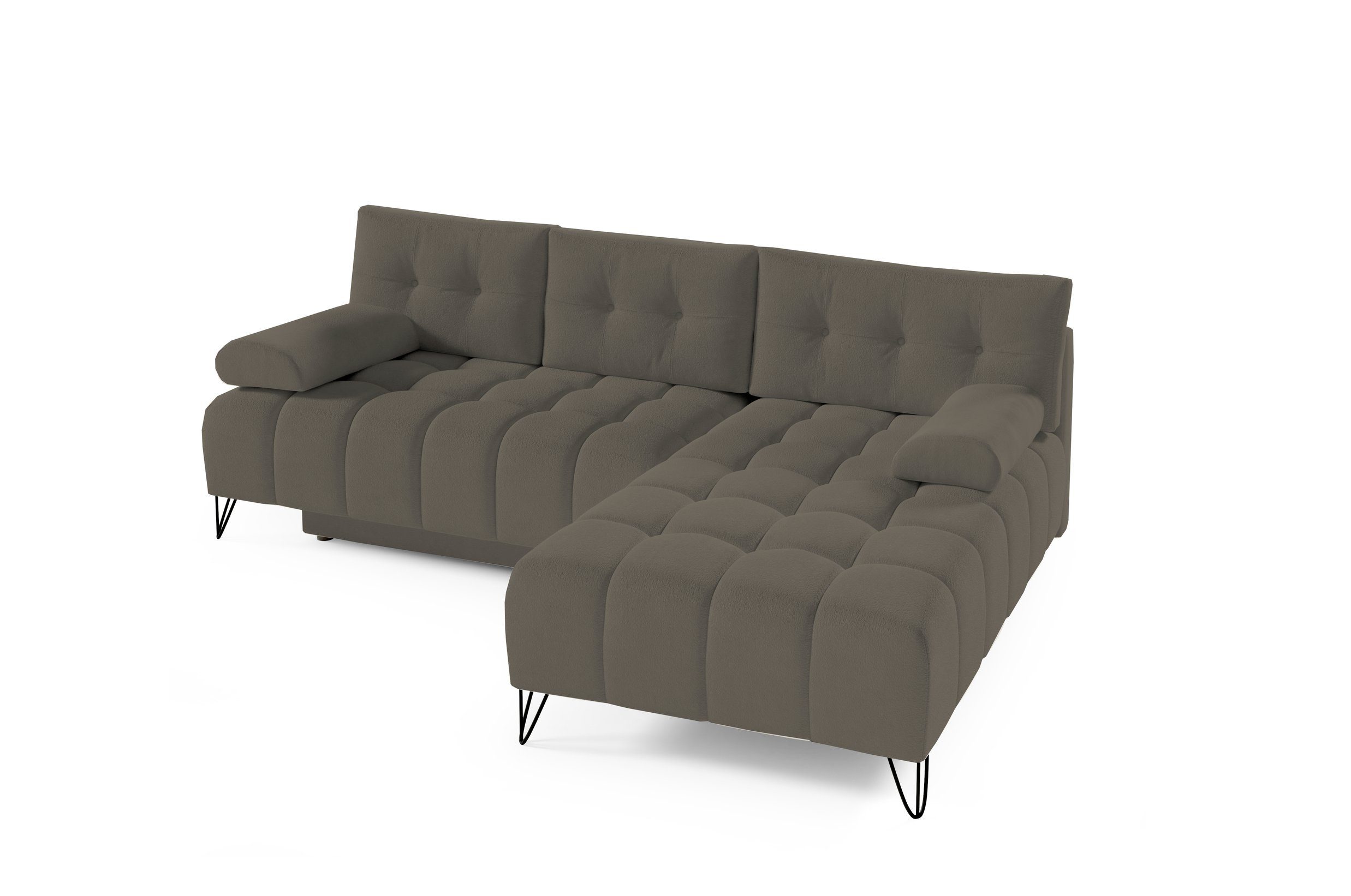 Das Ecksofa BRODY wirkt äußerst elegant und stilvoll. Die atypischen Beine verleihen ihm einen modernen Touch. Seine solide Konstruktion verdankt es der Verwendung hochwertiger Materialien wie gewellten Federn und hochelastischem Schaumstoff. Eine Schlaffunktion und ein praktischer Bettkasten ermöglichen es Ihnen, das Ecksofa nicht nur tagsüber zum Entspannen, sondern auch zum Schlafen zu nutzen. Das Ecksofa ist in linker und rechter Ausführung erhältlich.