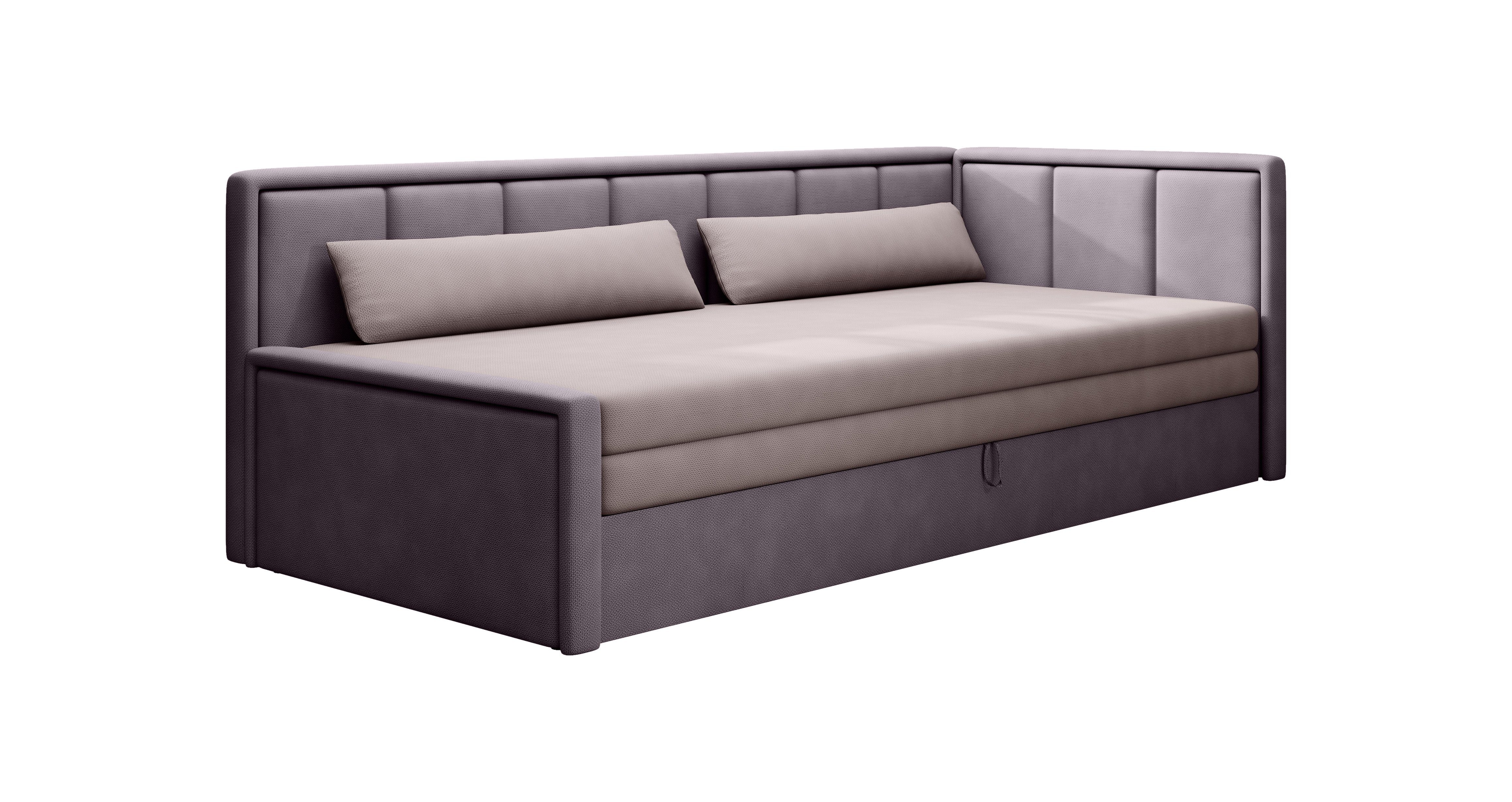 Das Sofa FULO mit Schlaffunktion ist eine Lösung für den anspruchsvollen modernen Benutzer. Dieser Vorschlag ist ideal für einen Wohnbereich, ein Wohnzimmer mit Anbau oder ein Jugendzimmer. Er hat eine einfach zu bedienende Schlaffunktion und ein geräumiges Bettzeugfach. Das untere Staufach sorgt für Ordnung in der Textillandschaft, so dass das Bettenmachen besonders leicht von der Hand geht. Das Modell FULO ist mit einer äußerst eleganten Polsterung ausgestattet. Sie besteht vollständig aus Veloursstoff mit einer feinen Webstruktur, die bei Lichteinfall sanft schimmert. Das Material sieht nicht nur schön aus, sondern ist auch sehr widerstandsfähig gegen Reibung, Abrieb und Pilling.