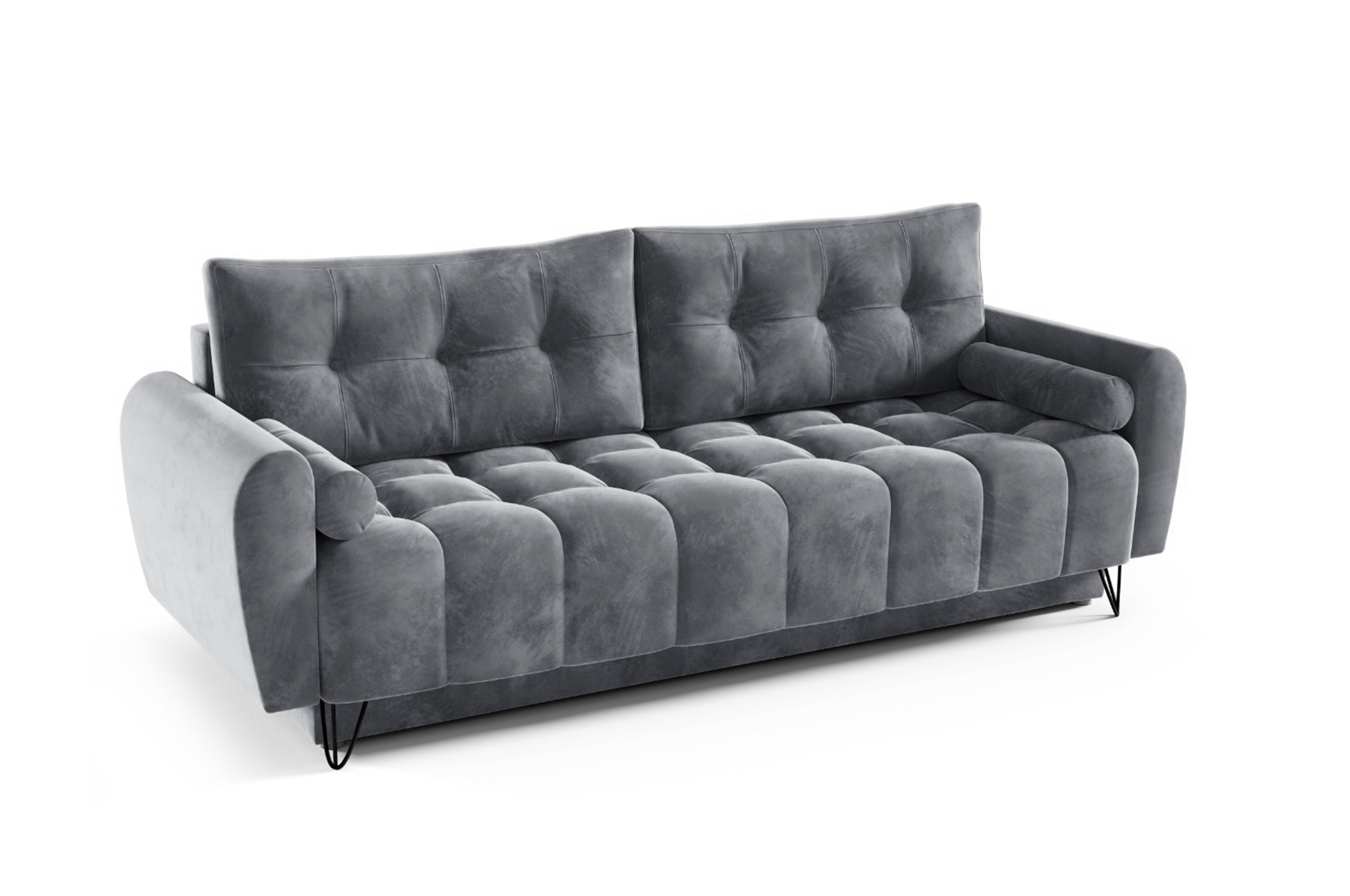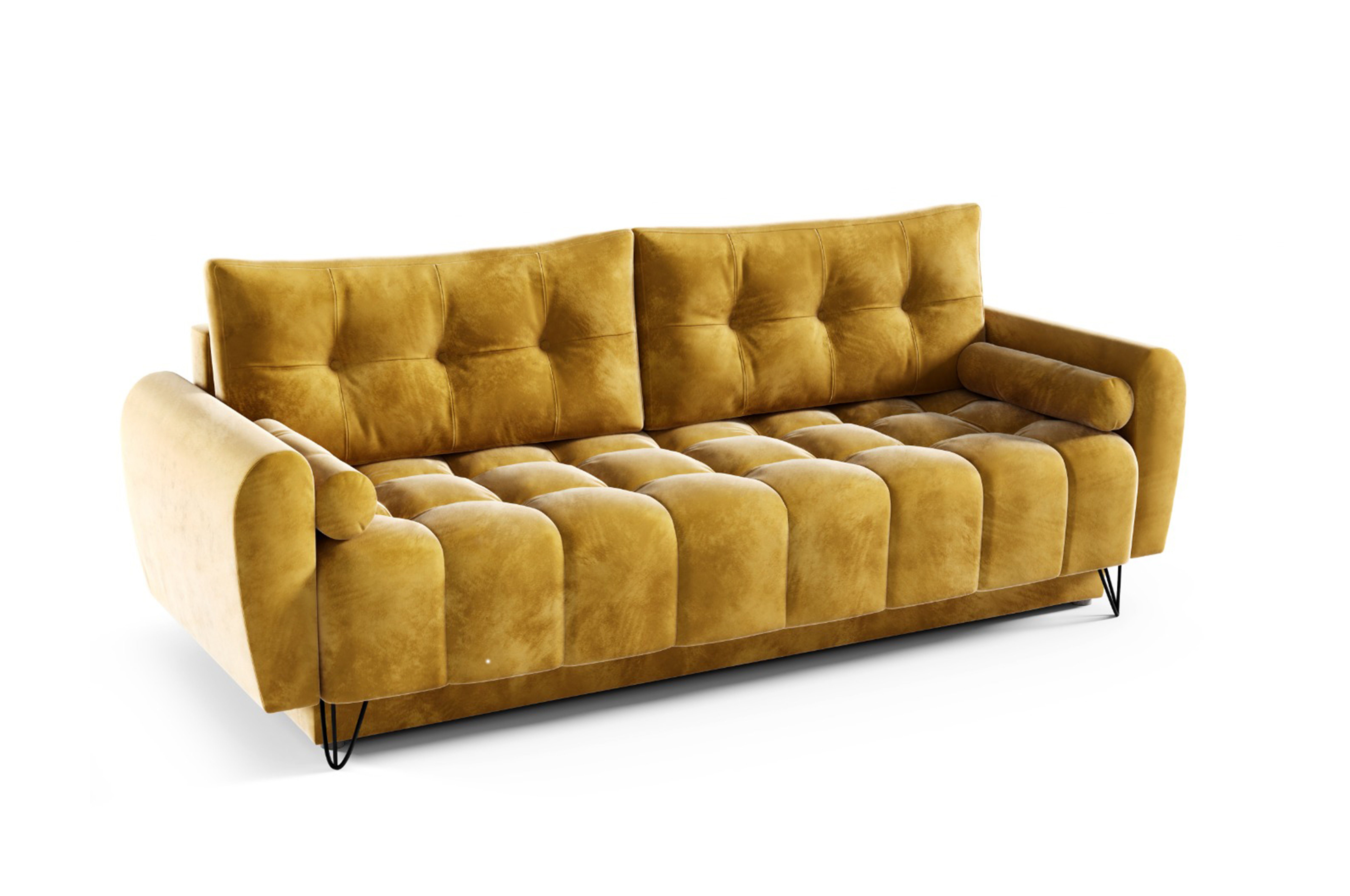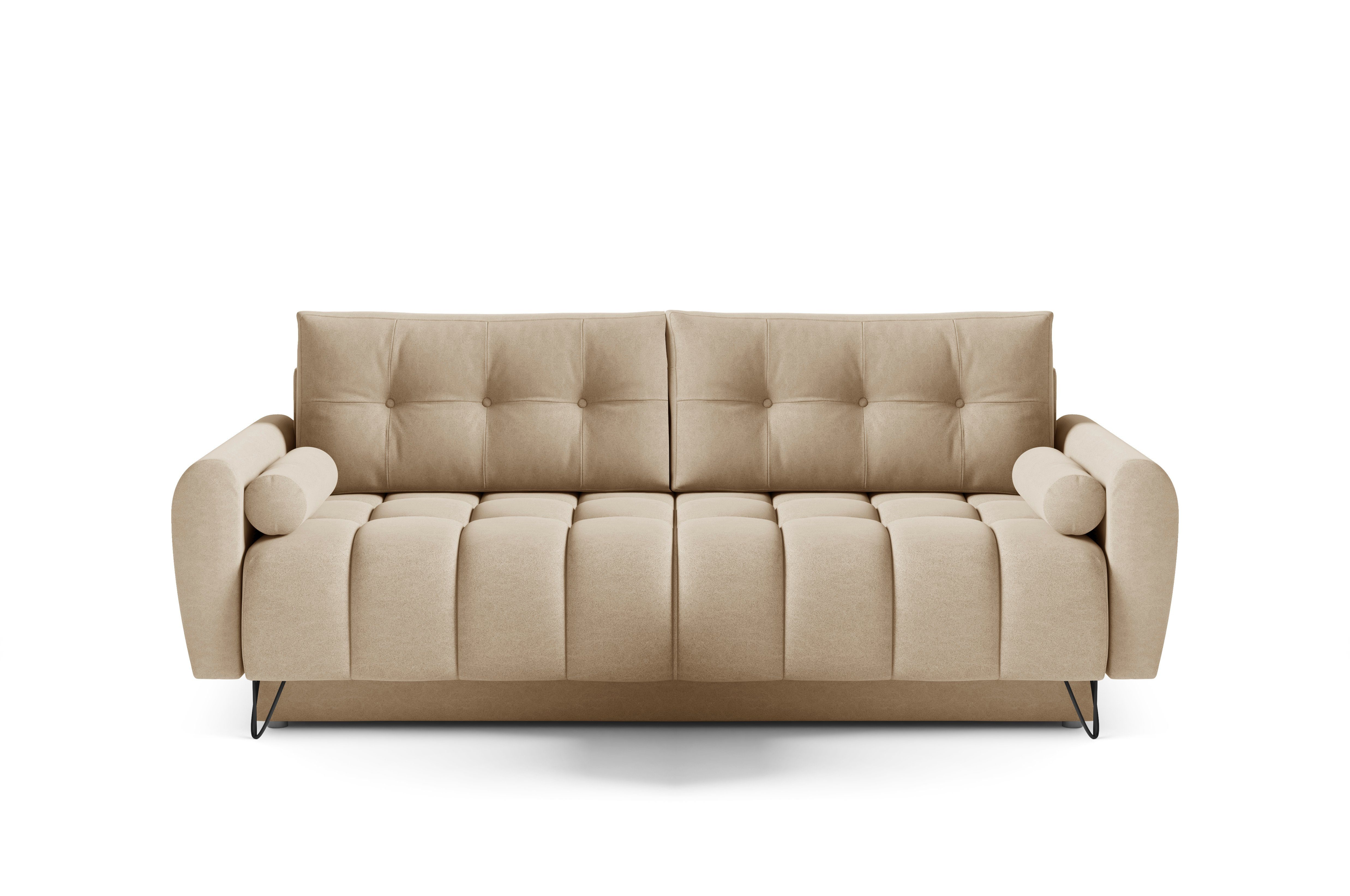 Das elegante Sofa OHIO lädt mit seiner äußerst gemütlichen Sitzfläche mit Rückenkissen und Zierkissen zum bequemen Verweilen ein. Elegante Steppungen auf der Sitzfläche und den Kissen lassen das Sofa raffiniert und äußerst modern aussehen. Eine Schlaffunktion und ein Bettkasten sind weitere Vorteile dieses Möbelstücks. Dank der großen Auswahl an Bezugsstoffen lässt sich das Möbelstück perfekt an die Einrichtung des Raums anpassen.