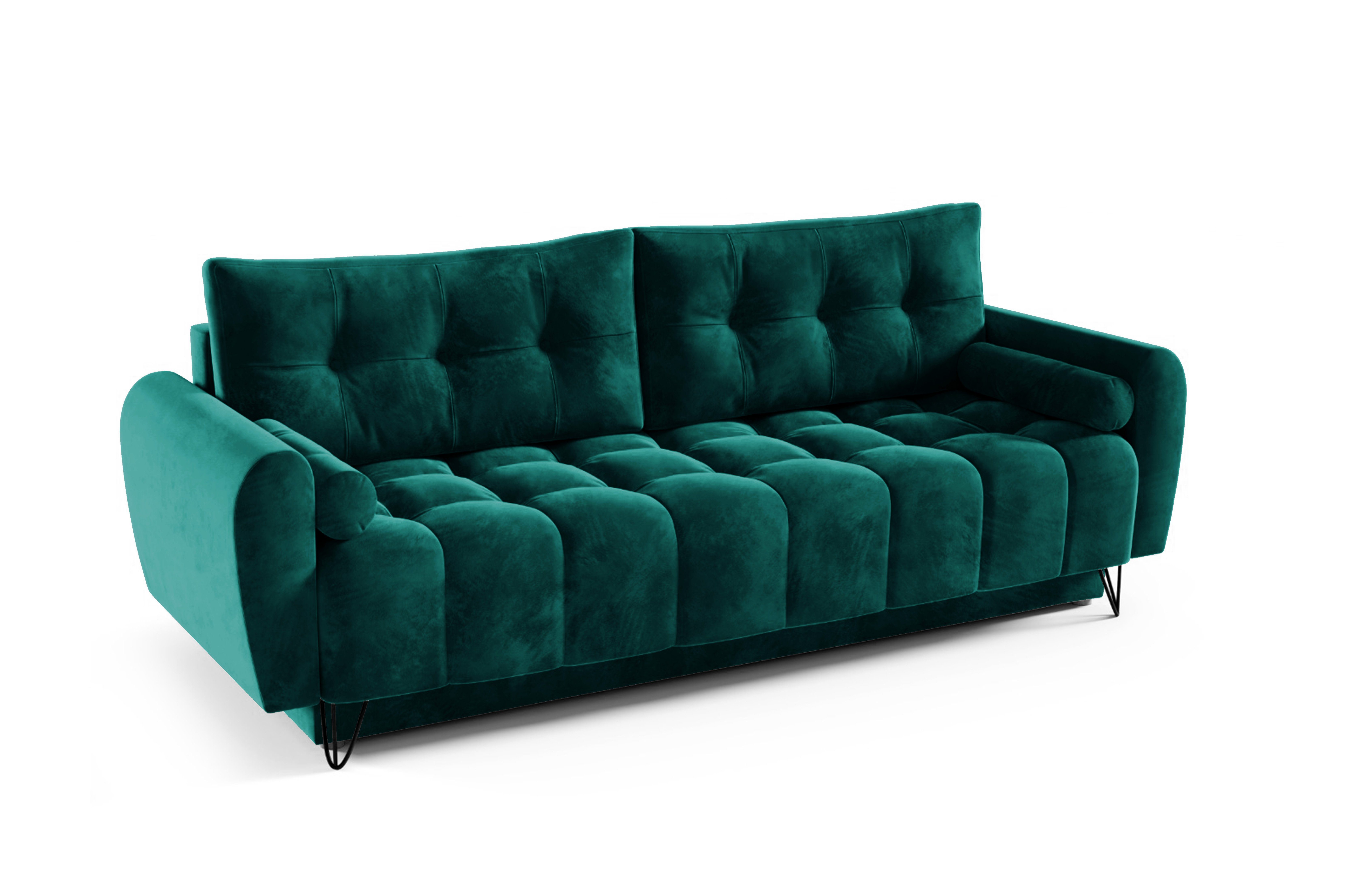 Lehnen Sie sich auf dem bequemen Sofa OHIO zurück und lassen Sie den Alltag hinter sich. Die angenehm weiche Sitzfläche und die ergonomisch abgestimmten Rückenkissen bieten höchsten Komfort und laden zum längeren Verweilen ein. Das weiche Veloursmaterial sorgt für ein sanftes, angenehmes Gefühl auf der Haut, während die praktische Schlaffunktion das Sofa blitzschnell in eine bequeme Liegefläche verwandelt – ideal für Gäste oder einen entspannten Mittagsschlaf.