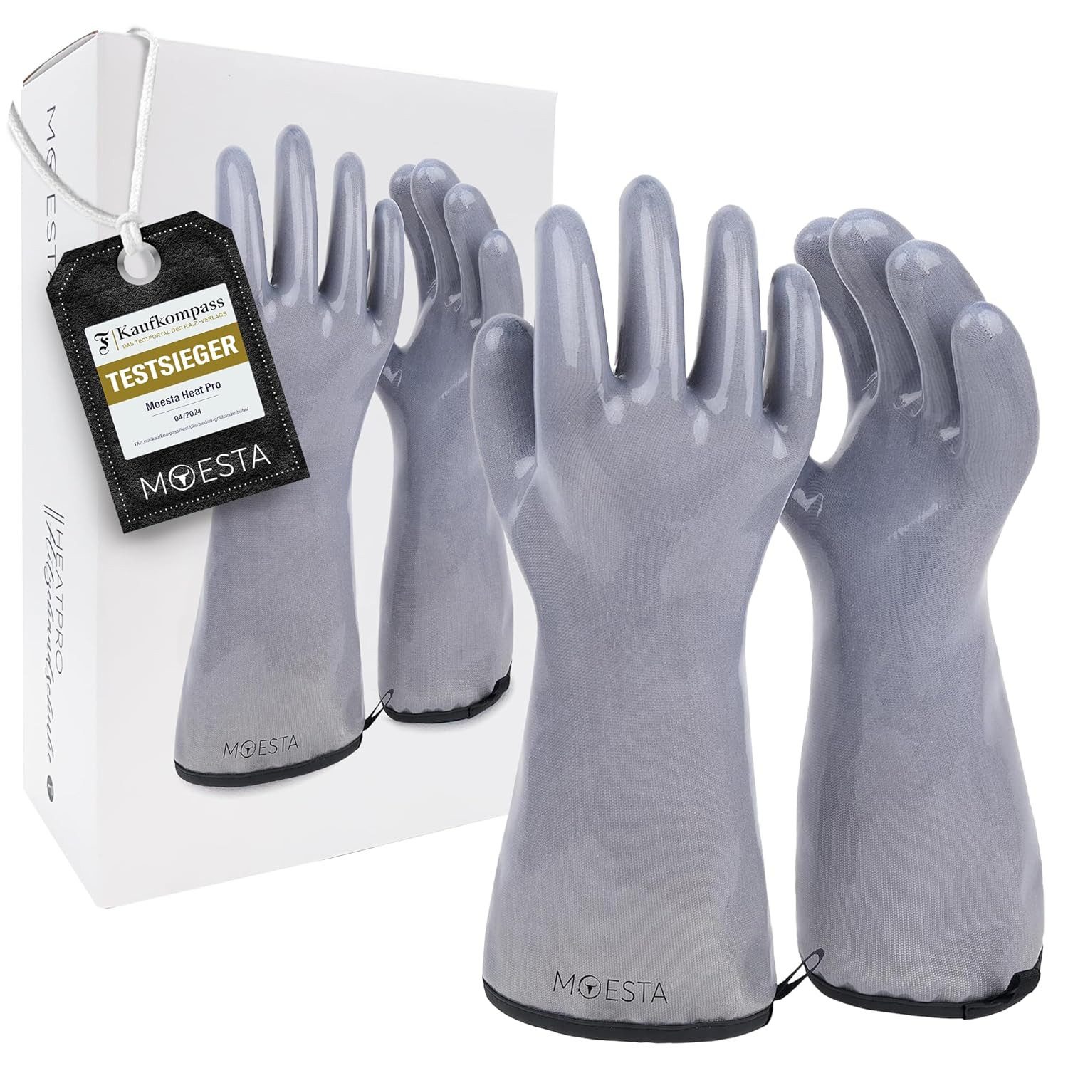 HEATPRO HITZEHANDSCHUHE ANTHRAZIT Die neuen Moesta hitzebeständigen Grillhandschuhe sind nicht nur die perfekte Lösung für jeden, der gerne grillt, kocht oder backt, sondern auch für jeden, der endlich Grillhandschuhe sucht, mit denen man auch das Fleisch anfassen kann. Die Handschuhe sind aus hochwertigen Materialien gefertigt und können Temperaturen von bis zu 250 Grad Celsius standhalten, kurzzeitig sind auch 350 Grad Celsius kein Problem. Mit ihrer rutschfesten Oberfläche und der flexiblen Passform sind sie bequem und einfach zu tragen, so dass du mit ihnen mühelos das Grillgut wenden oder aus dem Backofen nehmen kannst. Und das Beste: Die Handschuhe sind auch maschinenwaschbar und somit einfach zu reinigen.