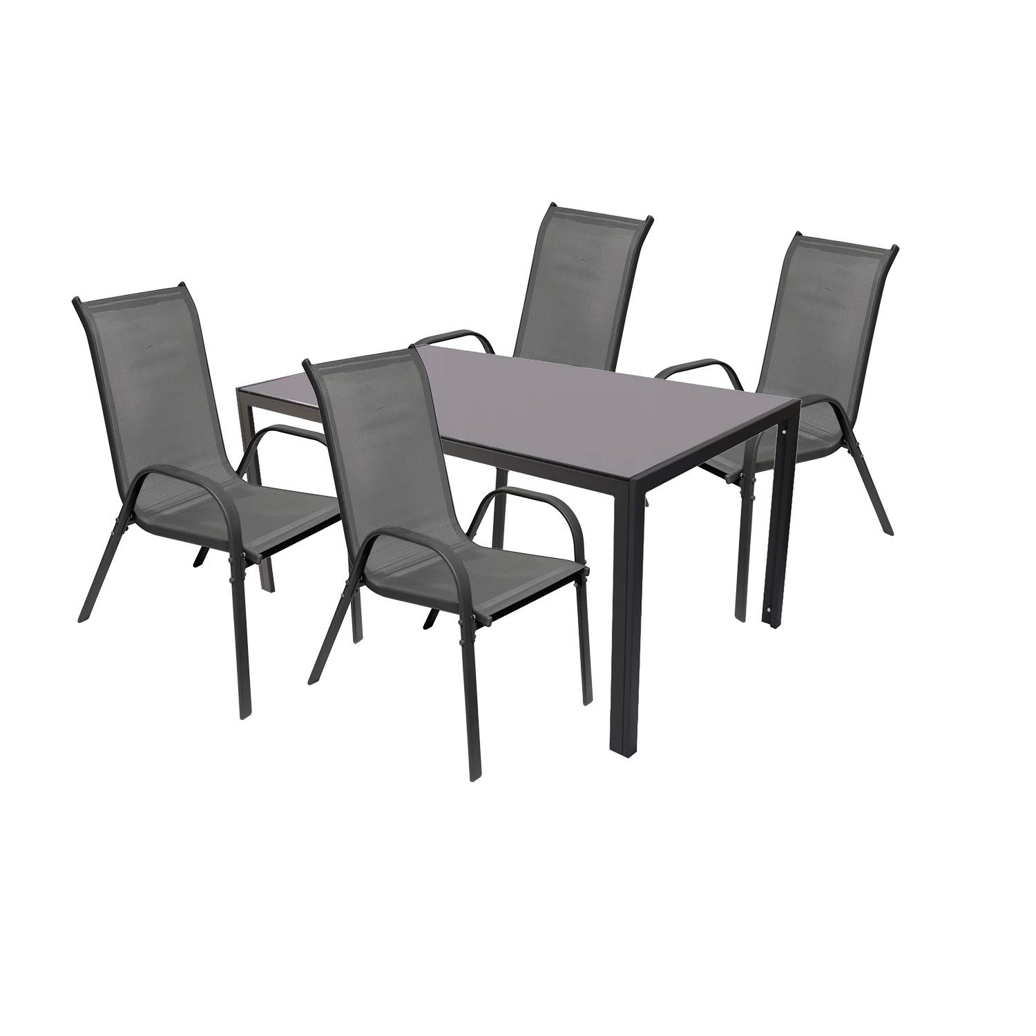 5-teilige Garnitur Anthrazit 1 x Glastisch + 5 x Stapelstühle