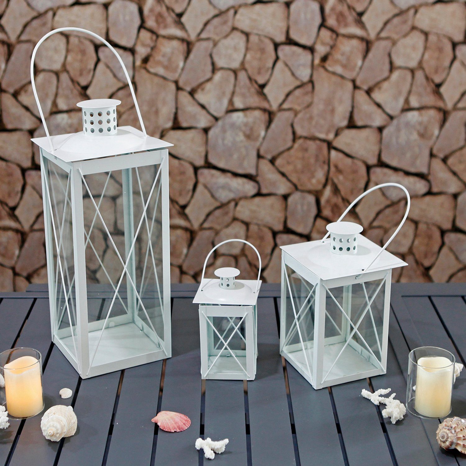 3tlg Laternen-Set aus Metall in Weiß – Schlichte Eleganz für Ihr Zuhause