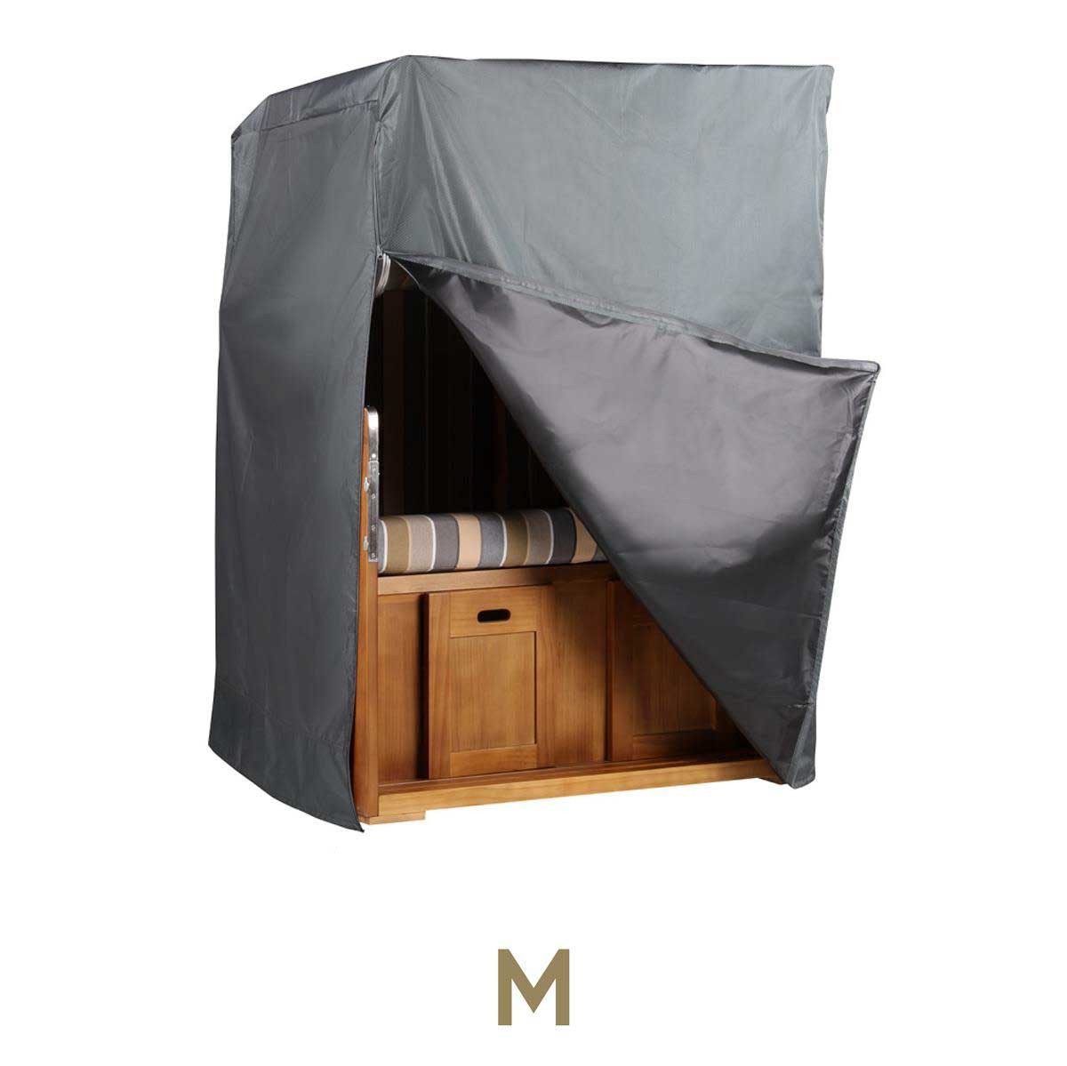 Die besondere Qualität und robuste Beschaffenheit der Strandkorbhaube ergibt sich durch die Herstellung aus atmungsaktiven Polyester-Gewebe. An der Vorderseite verfügt die Haube über zwei Reißverschlüsse, sodass Sie komfortabel die Front öffnen können, am unteren Rand befindet sich ein Zugband inkl. Stopper. Die Reinigung der Schutzhaube nehmen Sie bitte ausschließlich nur mit Wasser vor.