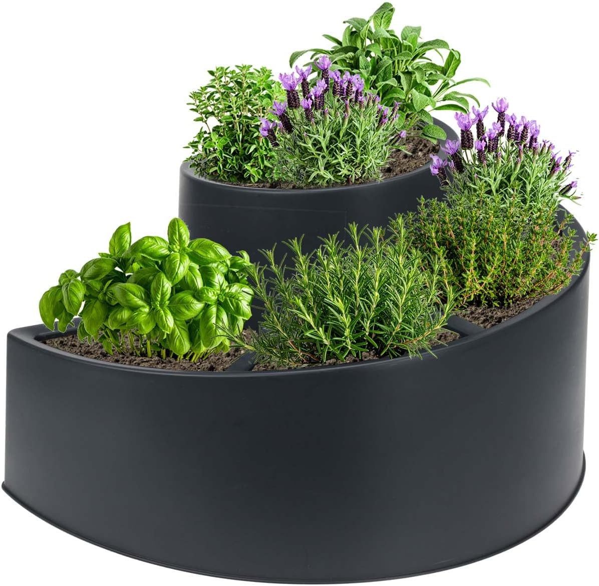 DESIGN: Spiralförmiges Hochbeet mit 6 verschiedenen Ebenen, ideal für die Kultivierung verschiedener Kräuter und Blumen, in modernem Anthrazit