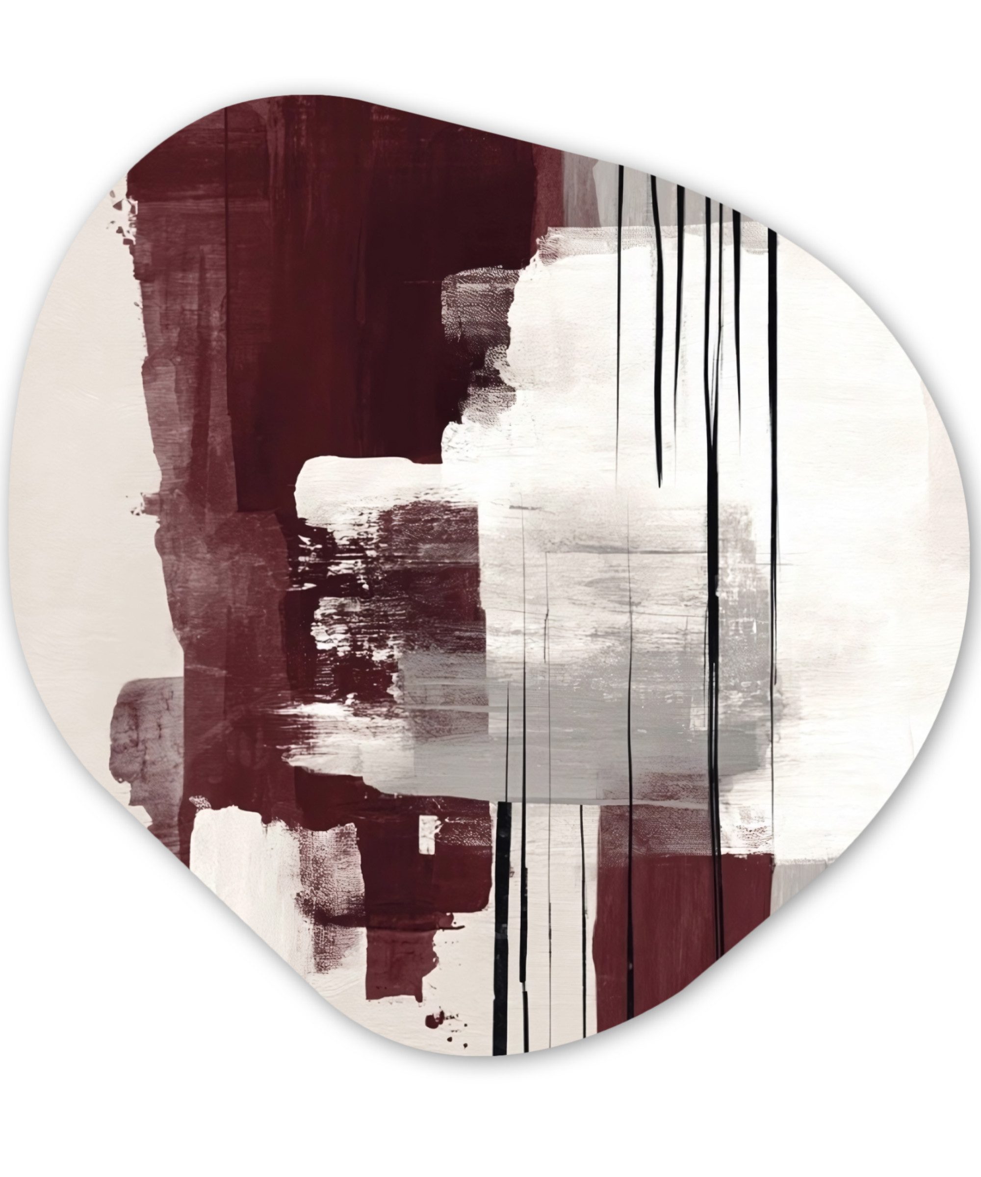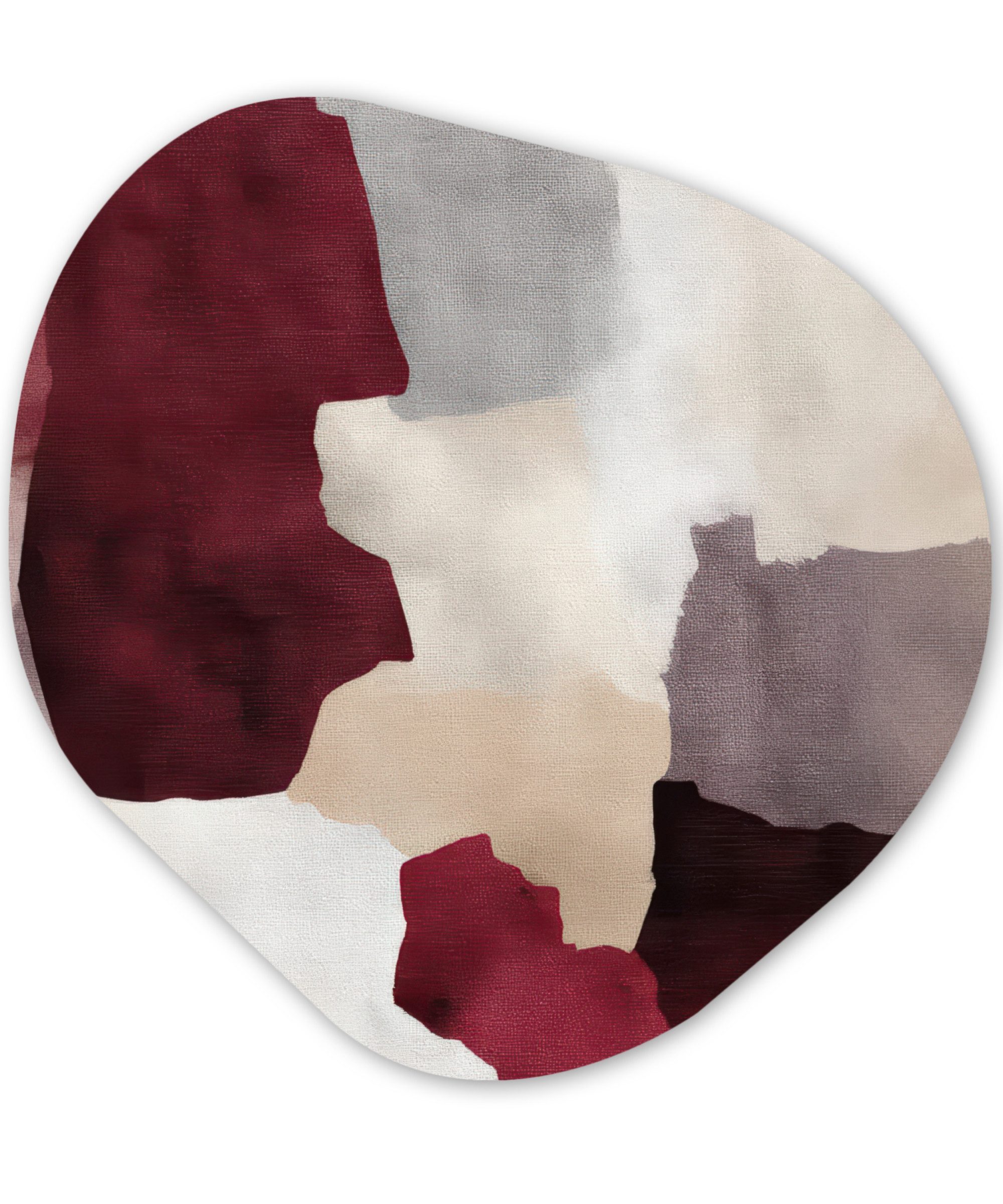 Eine abstrakte Komposition aus sich sanft überlagernden Farbflecken in Burgunderrot, Grau, Beige und Weiß. Die Flecken haben einen fließenden, organischen Charakter.Kunstgenre | Modern, Natur, Tiere, Abstrakt, Kinderzimmer |