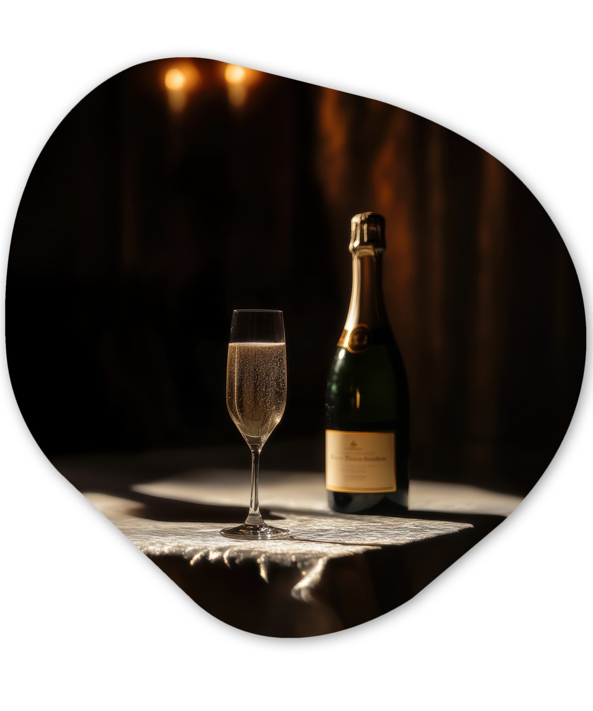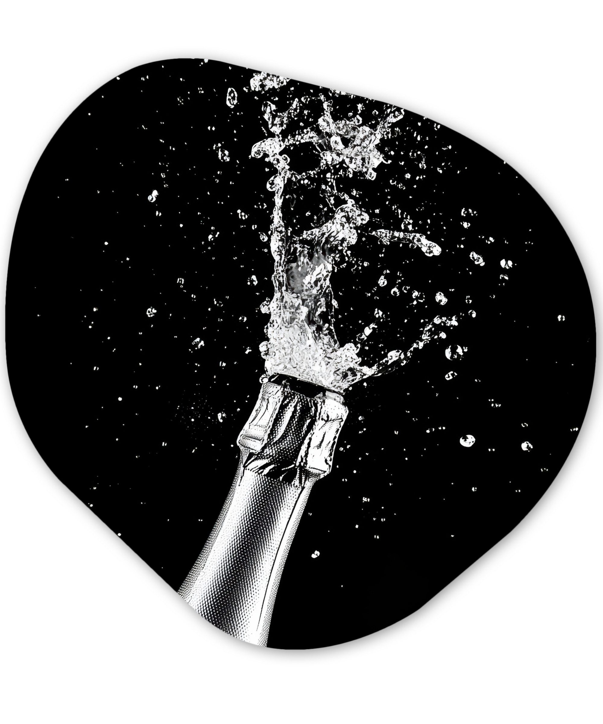 Eine dynamische Nahaufnahme eines Sektkorkens, der sich gewaltsam öffnet, umgeben von Spritzern der sprudelnden Flüssigkeit. Der dunkle Hintergrund unterstreicht die dramatische Bewegung des Moments.Kunstgenre | Modern, Natur, Tiere, Abstrakt, Kinderzimmer |