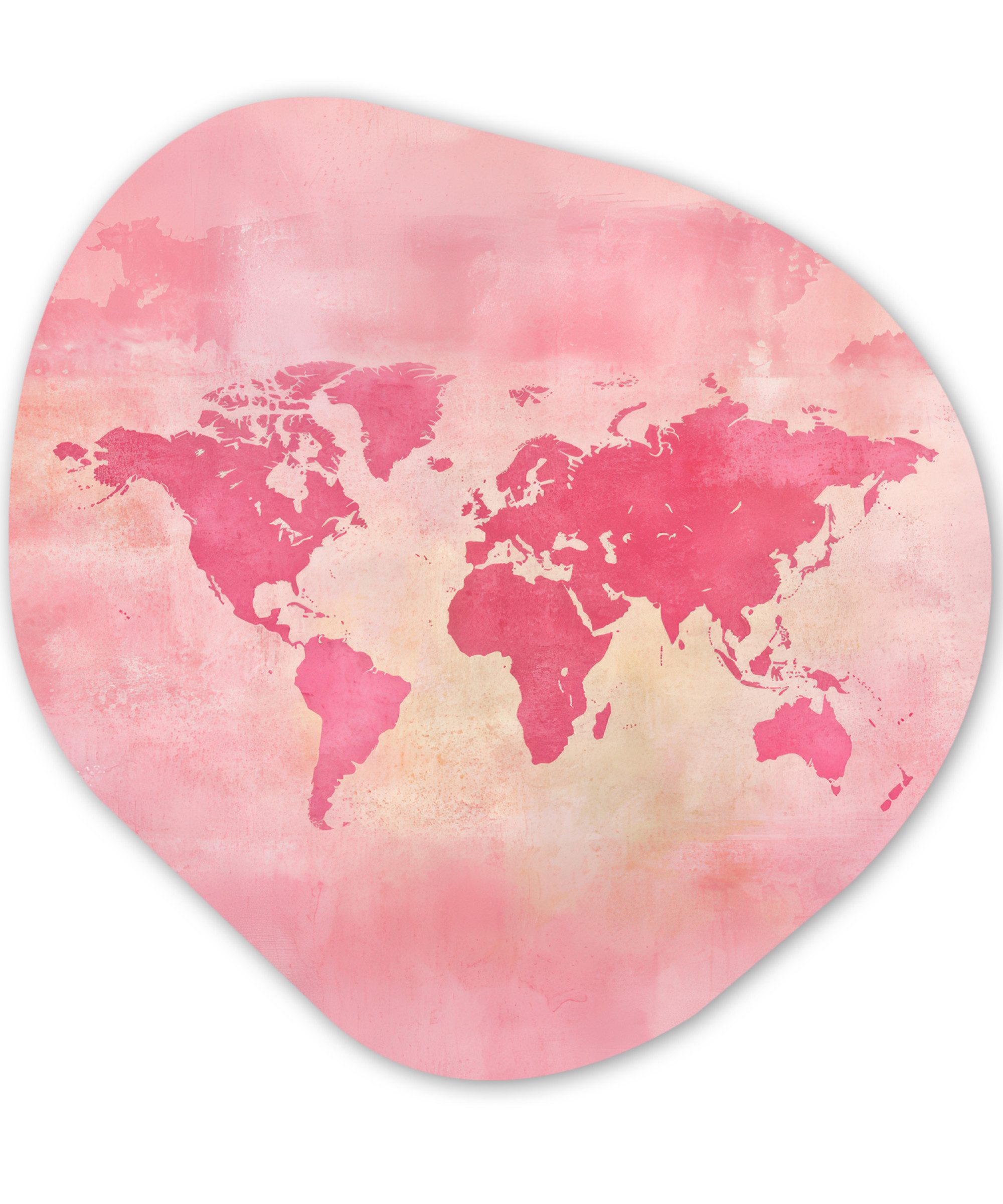 Rosa Weltkarte auf beigefarbenem verblasstem Hintergrund.Kunstgenre | Modern, Natur, Tiere, Abstrakt, Kinderzimmer |