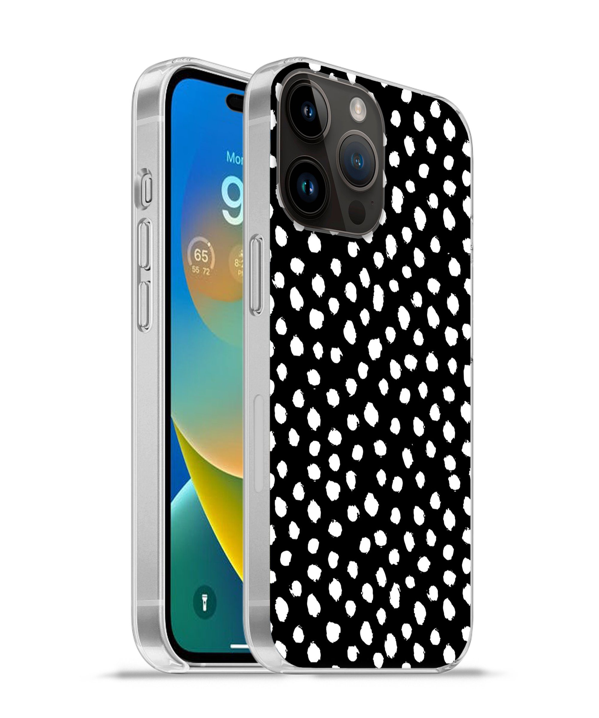 Muster aus weißen Punkten auf schwarzem Hintergrund.