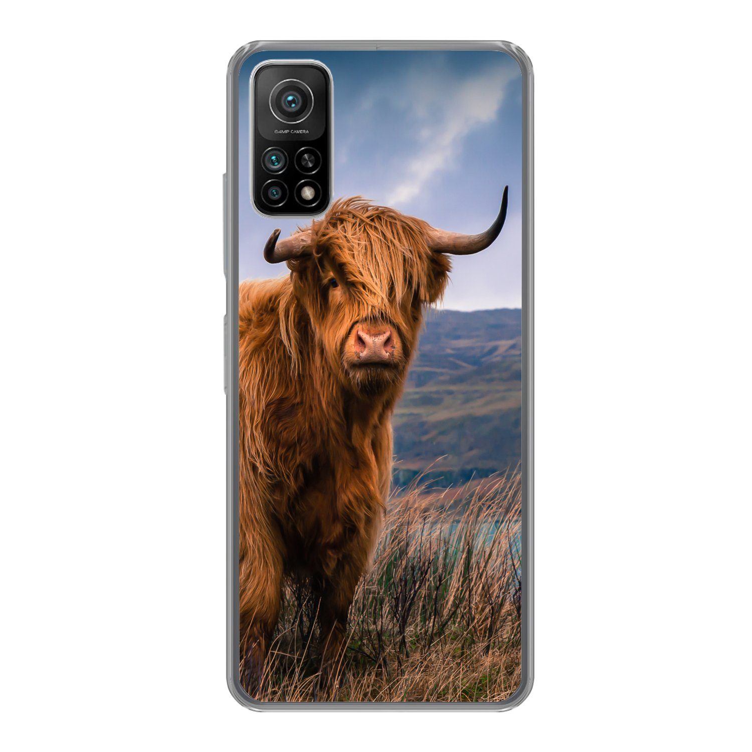 Dieser schottische Highlander ist auf Mull, einer Insel in Schottland, unterwegs. Hinter dem Tier sind die Berge zu sehen.Kompatible Geräte | Xiaomi Mi 10T 5G |