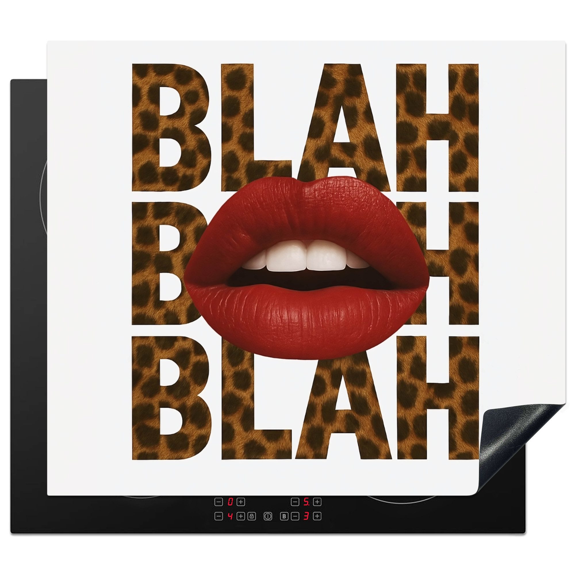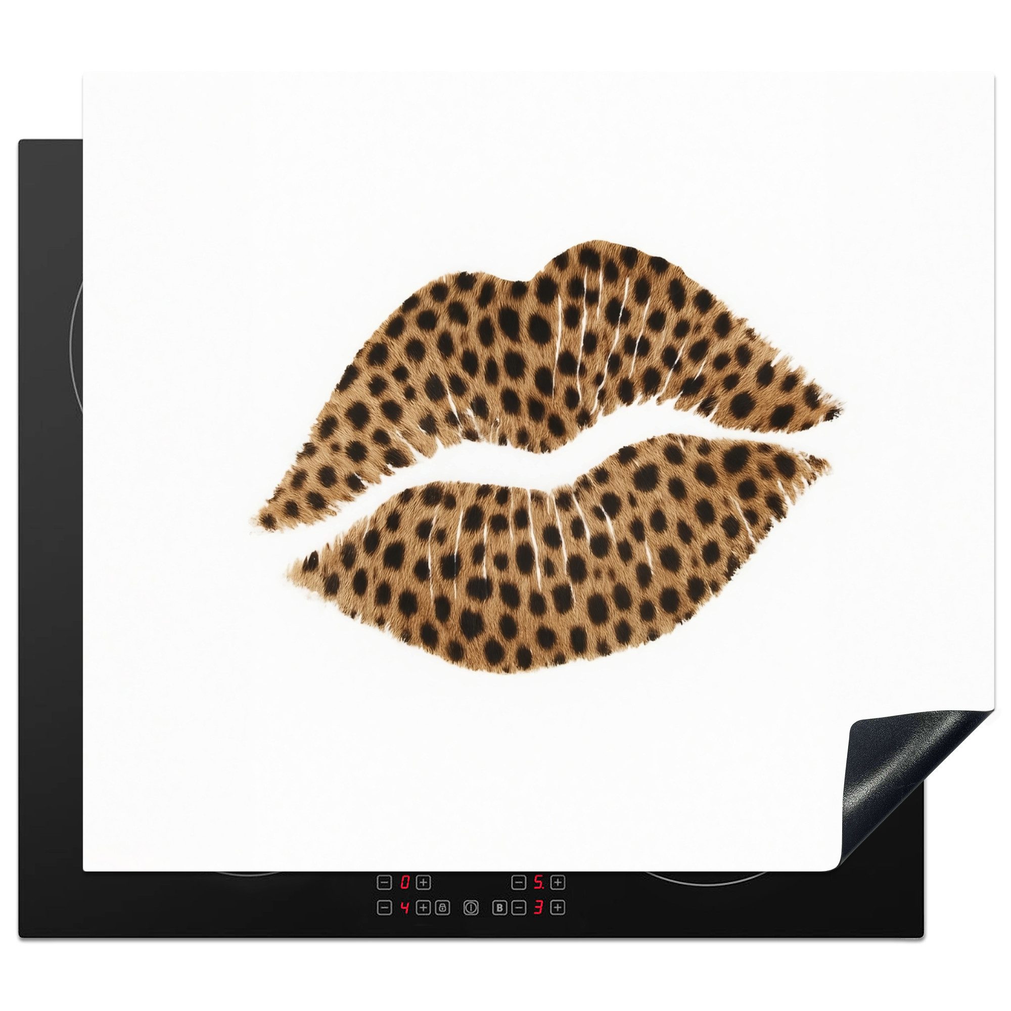 Eine abstrakte Lippenform mit einem Pantheraufdruck ist scharf auf weißem Hintergrund dargestellt.