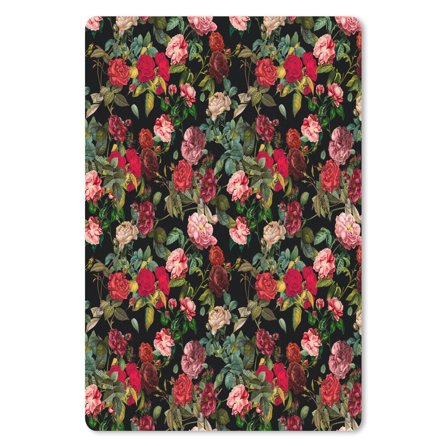 Vintage-Rosen in verschiedenen Farben vor einem schwarzen Hintergrund.