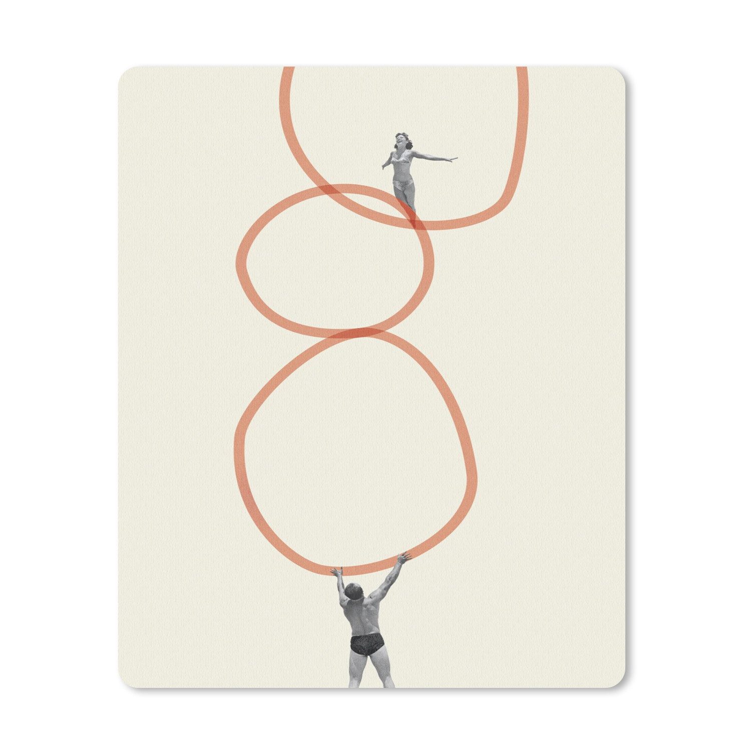 Vintage-Design eines Mannes, der eine Frau mit Kreisen balanciert.
