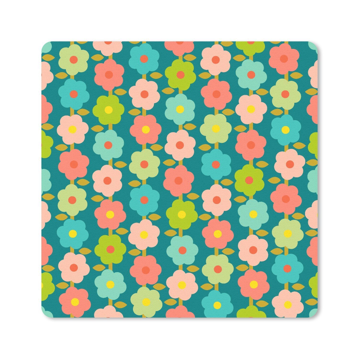 Buntes Blumenmuster im Retro-Stil der 70er Jahre.