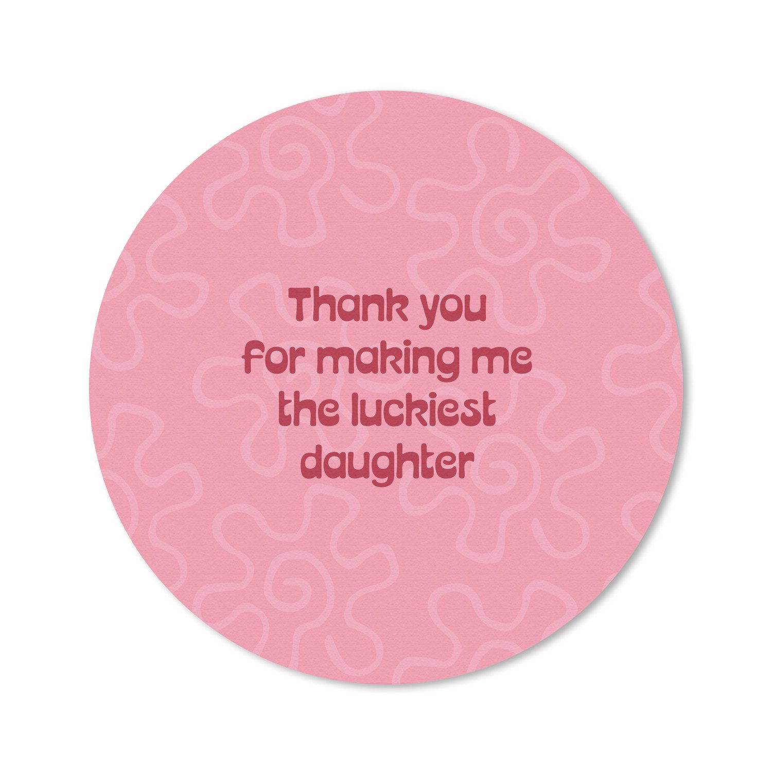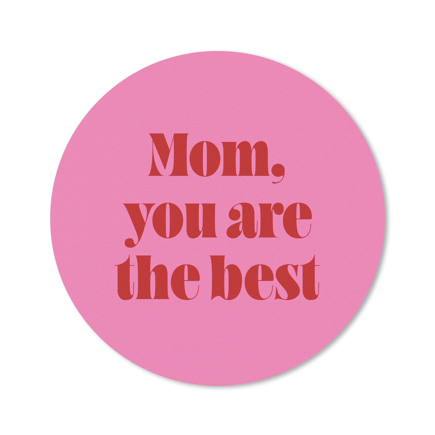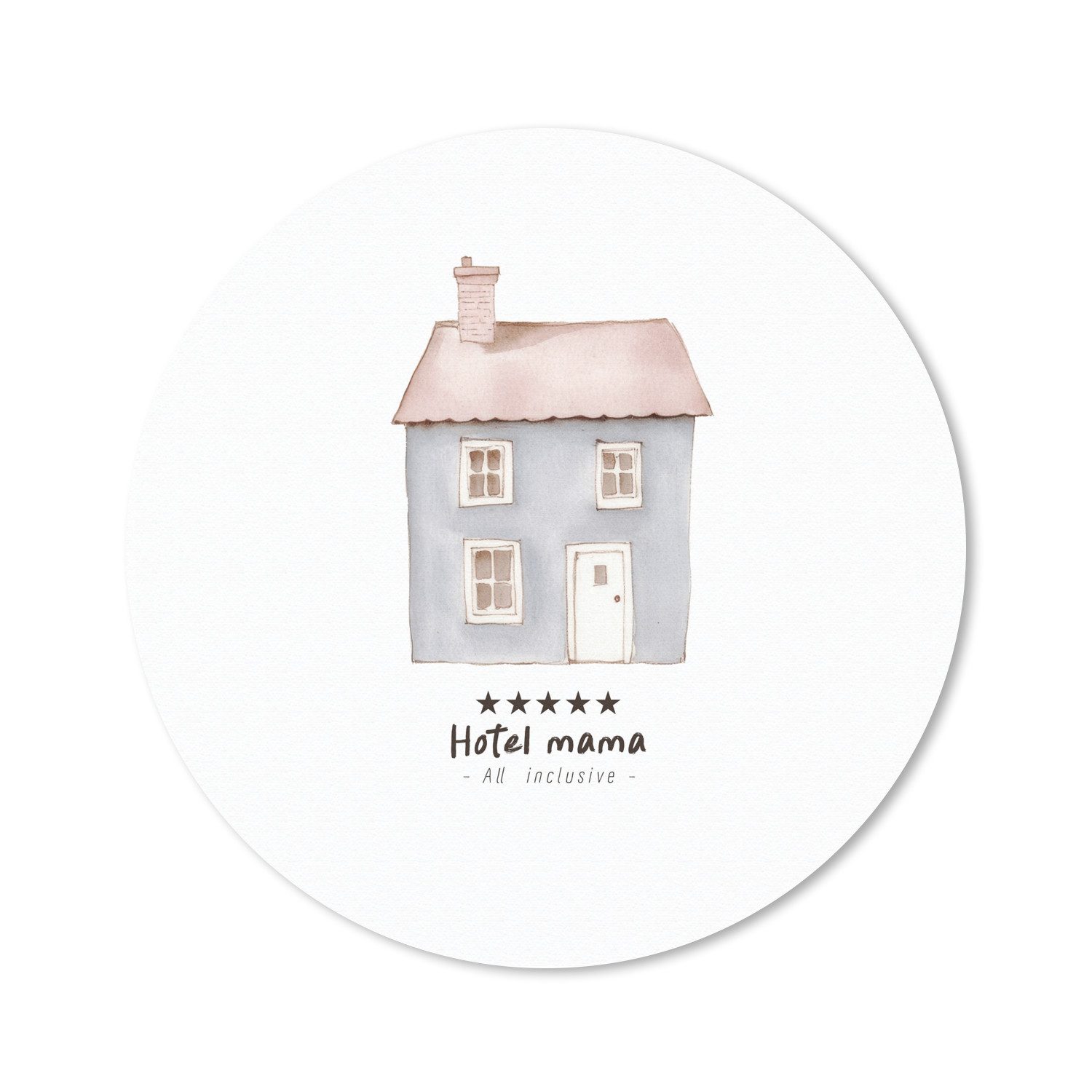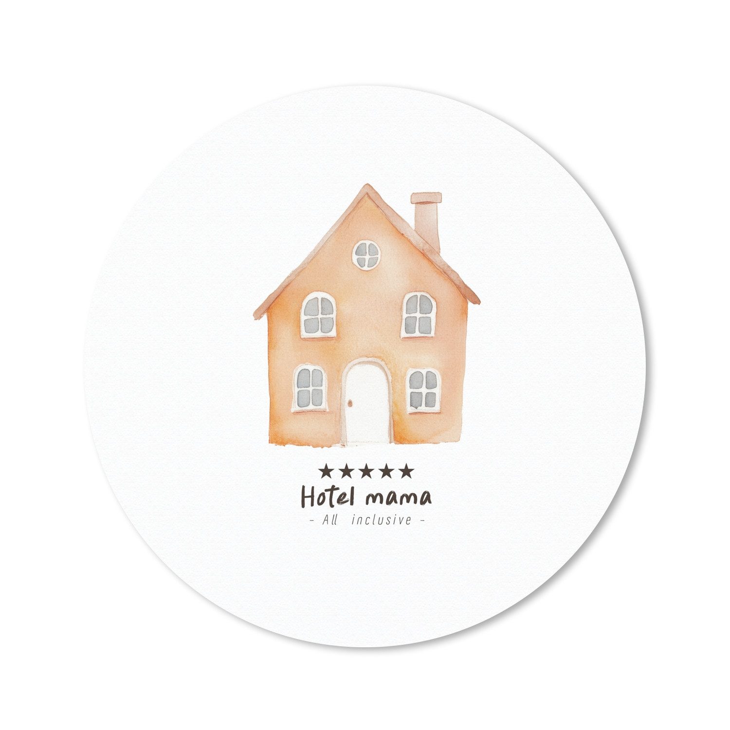 Ein rosa Haus mit Herzen darüber und dem Text "Home is where mom is - I love you" darunter.