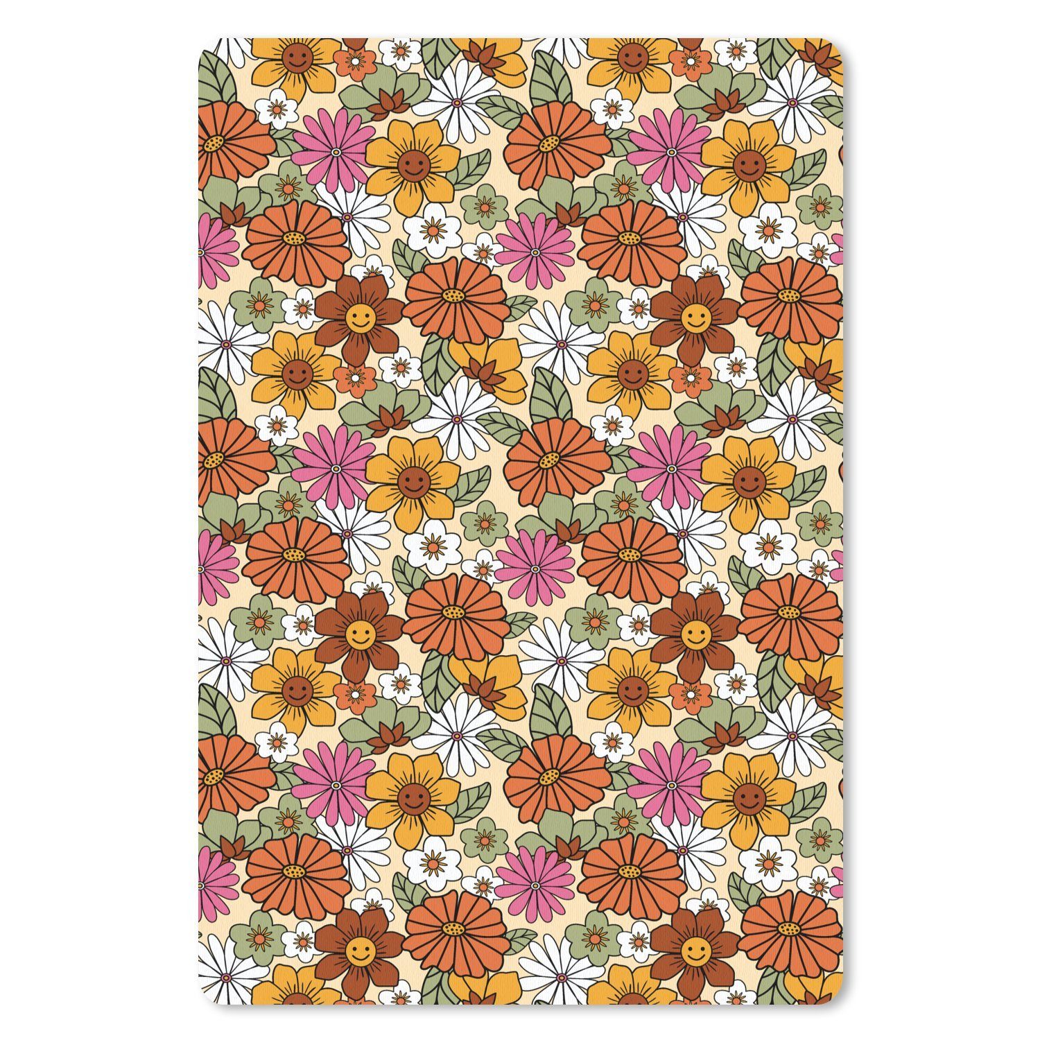 Ein Vintage-Muster mit Blumen in verschiedenen Farben.