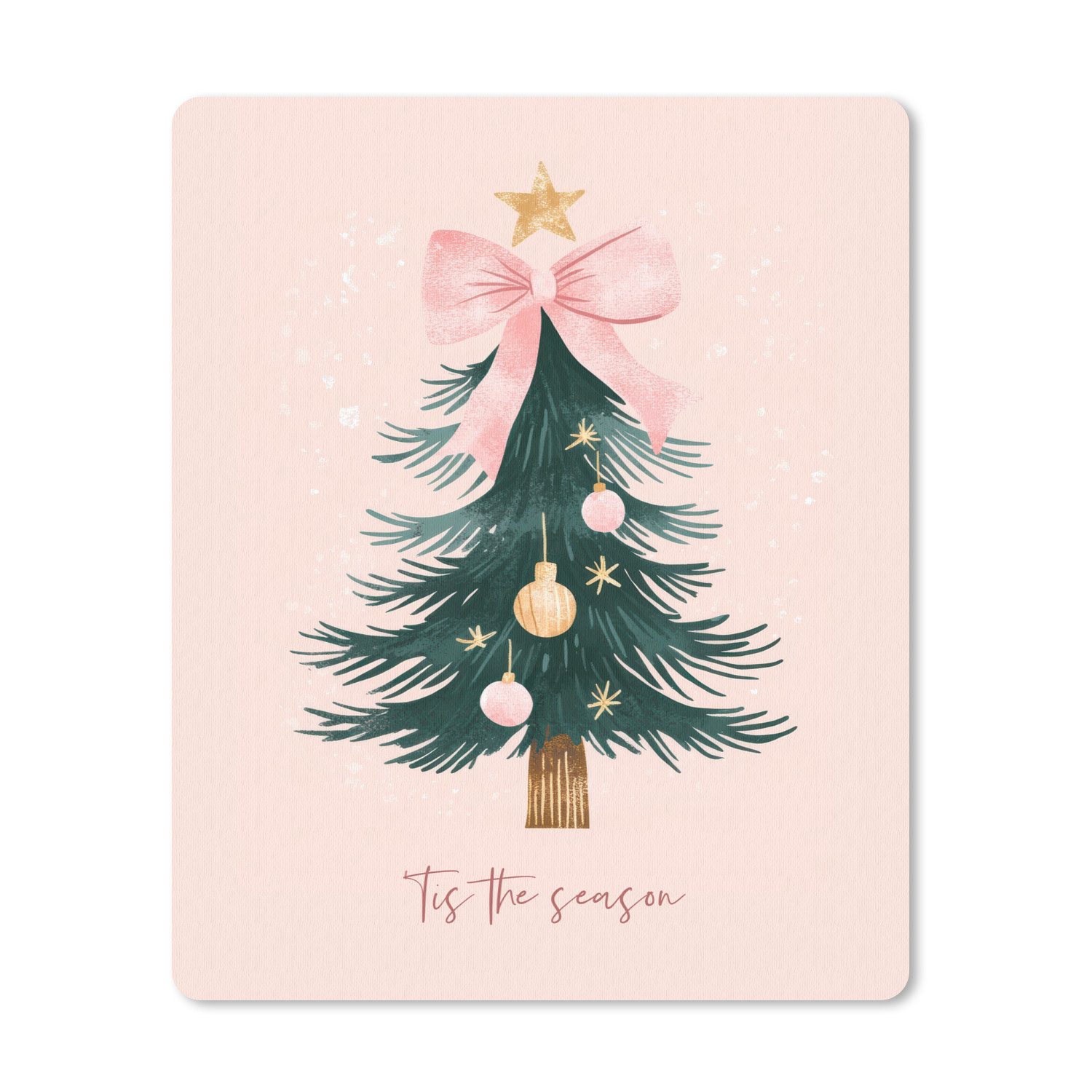 Das Zitat ''tis the season'' mit einem Weihnachtsbaum auf einem rosa Hintergrund