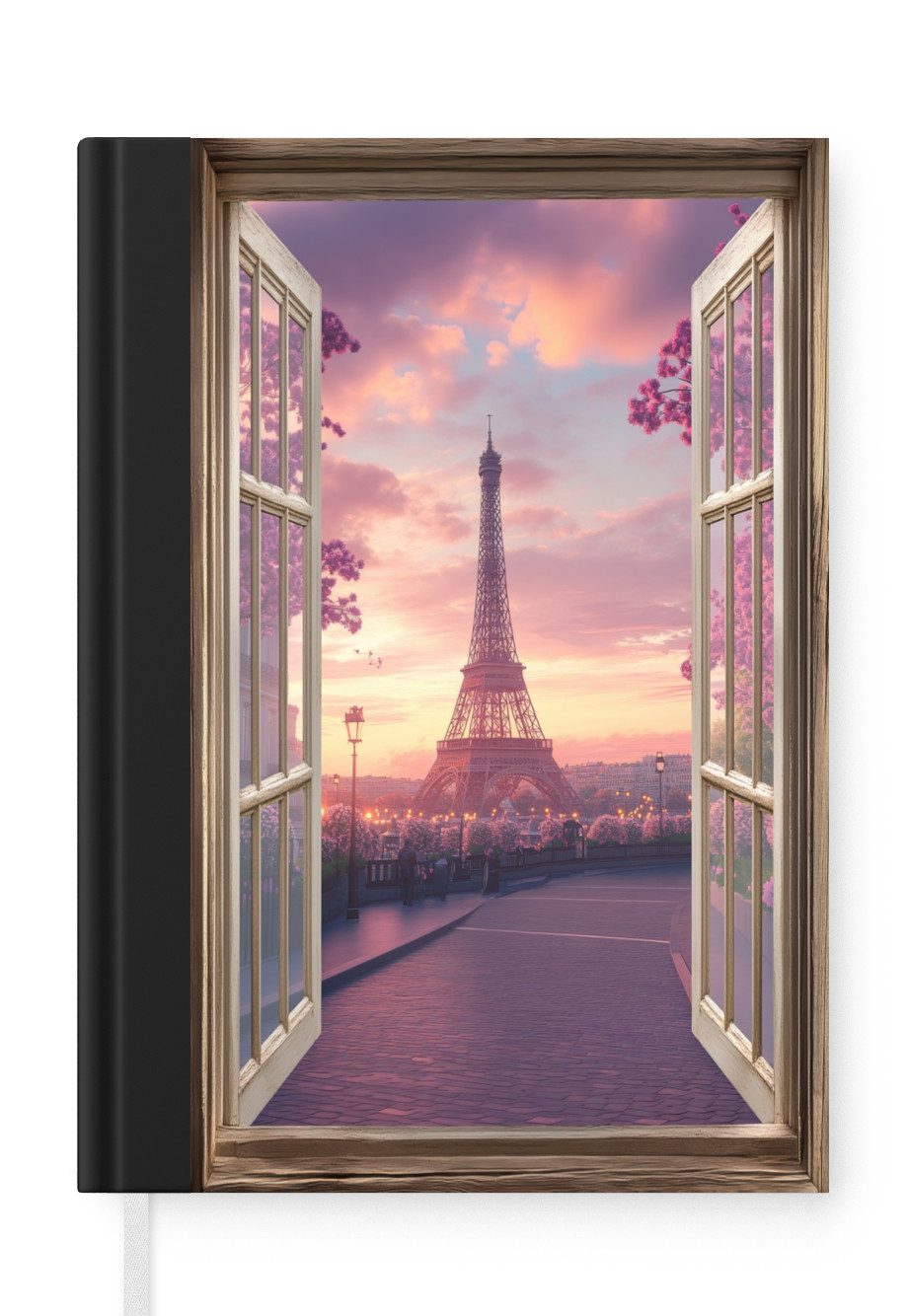 Ein Blick auf den Eiffelturm bei Sonnenuntergang durch ein offenes Fenster. Der Himmel färbt sich in sanften Rosa- und Violetttönen, während blühende Kirschblüten die Straßen von Paris schmücken.Anzahl Seiten | 99 Seiten |