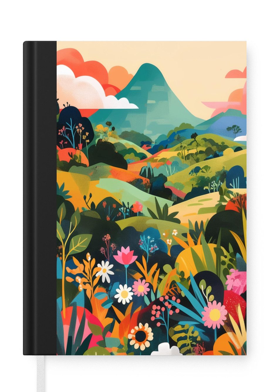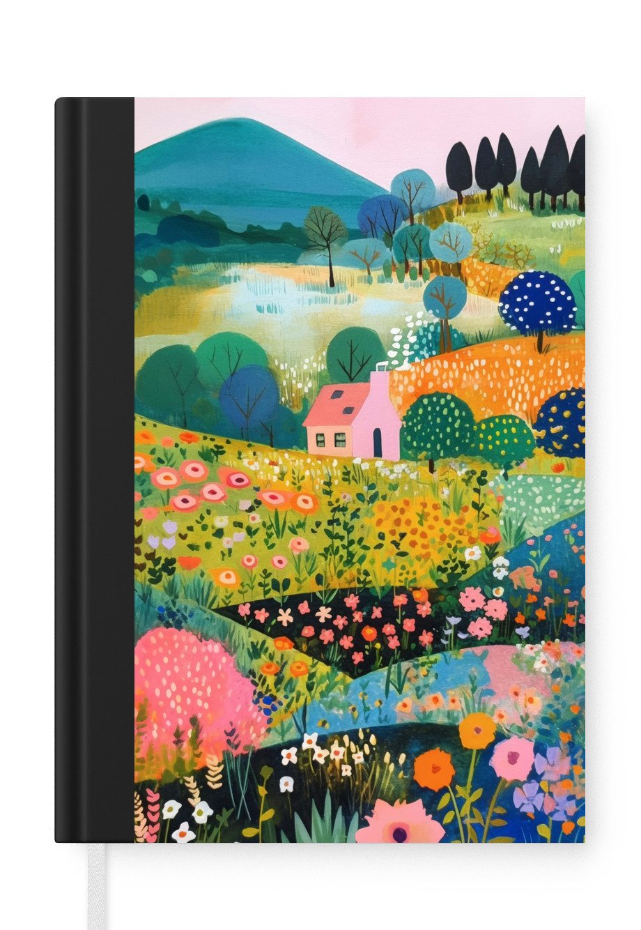 Zwei Häuschen liegen verstreut in einer hügeligen Landschaft mit bunten Blumen und Bäumen. Die Szene ist fröhlich und phantasievoll, mit einer starken Betonung von Formen und Farbkontrasten.Anzahl Seiten | 99 Seiten |