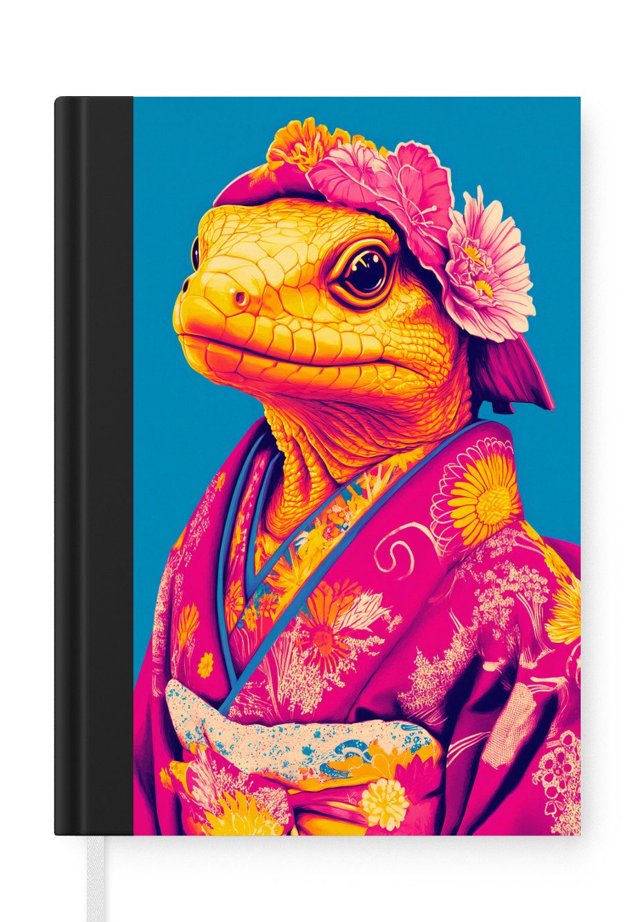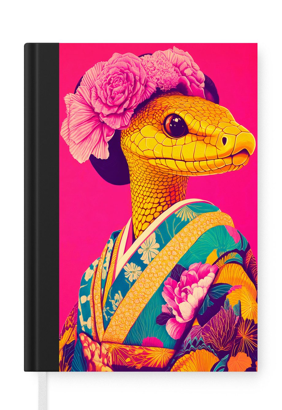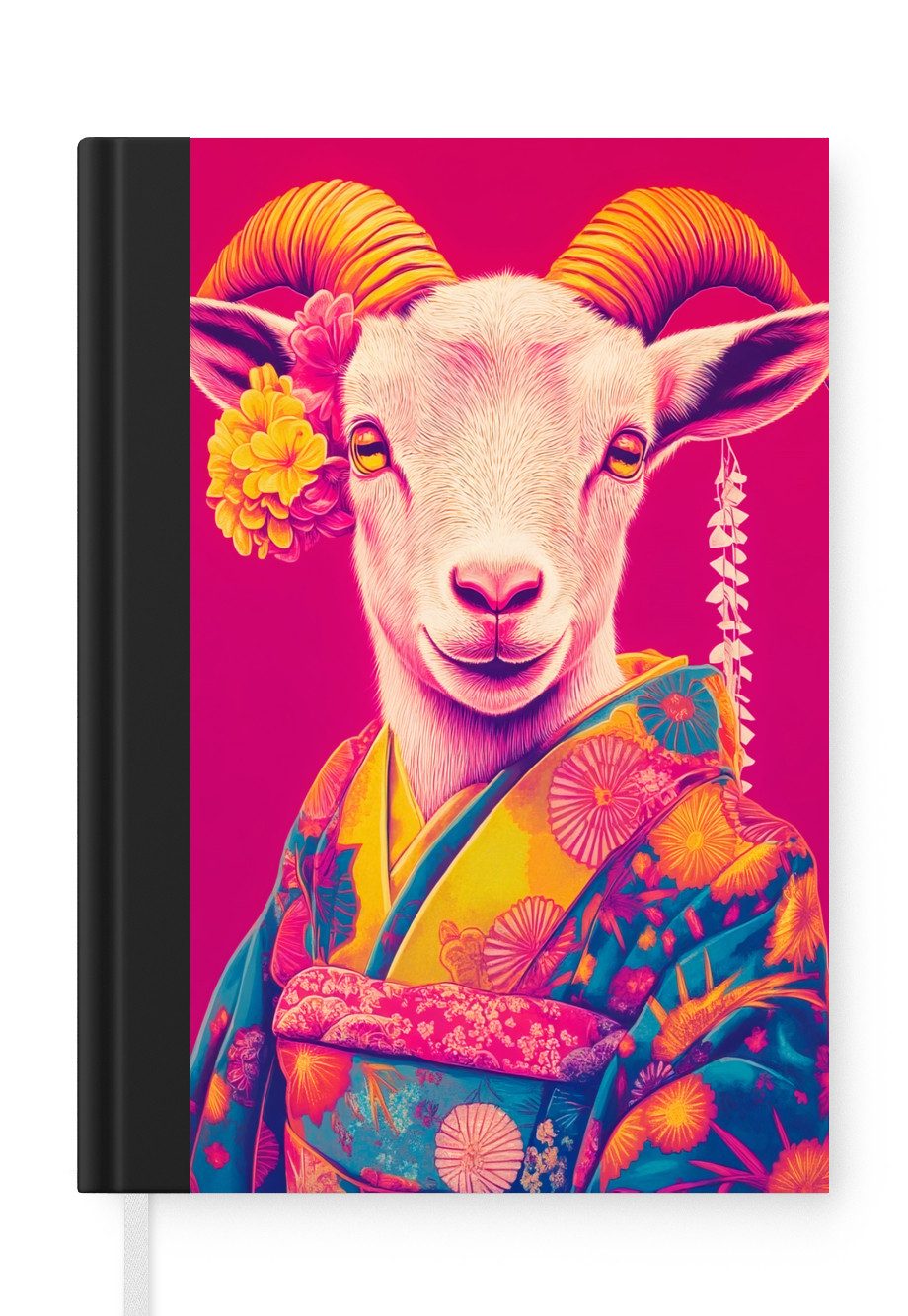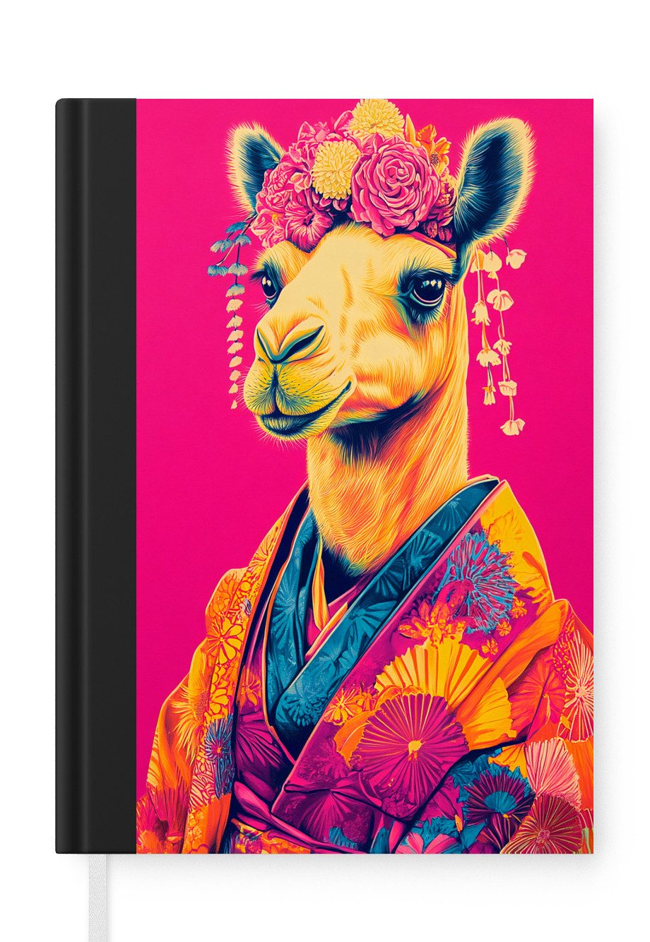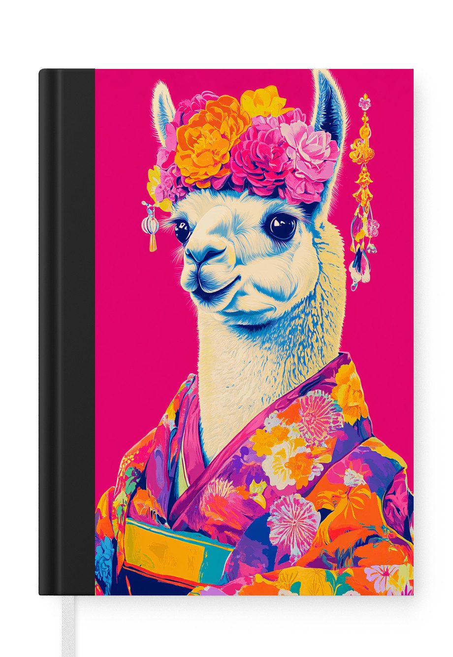 Ein Lama trägt einen farbenfrohen, blumengemusterten Kimono mit einem üppigen Blumenkranz. Der leuchtend rosafarbene Hintergrund kontrastiert mit den Gelb- und Orangetönen der Kleidung und der Accessoires.Anzahl Seiten | 99 Seiten |