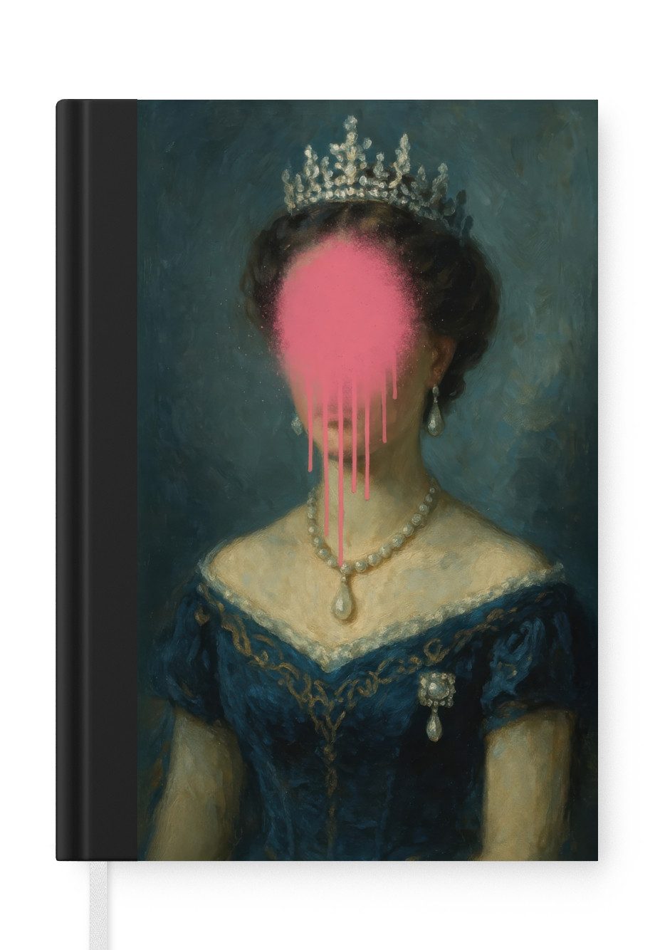 Eine Frau in Abendkleid und Diadem, deren Gesicht mit leuchtend rosa Farbe bedeckt ist, tropft über die Leinwand.Anzahl Seiten | 99 Seiten |
