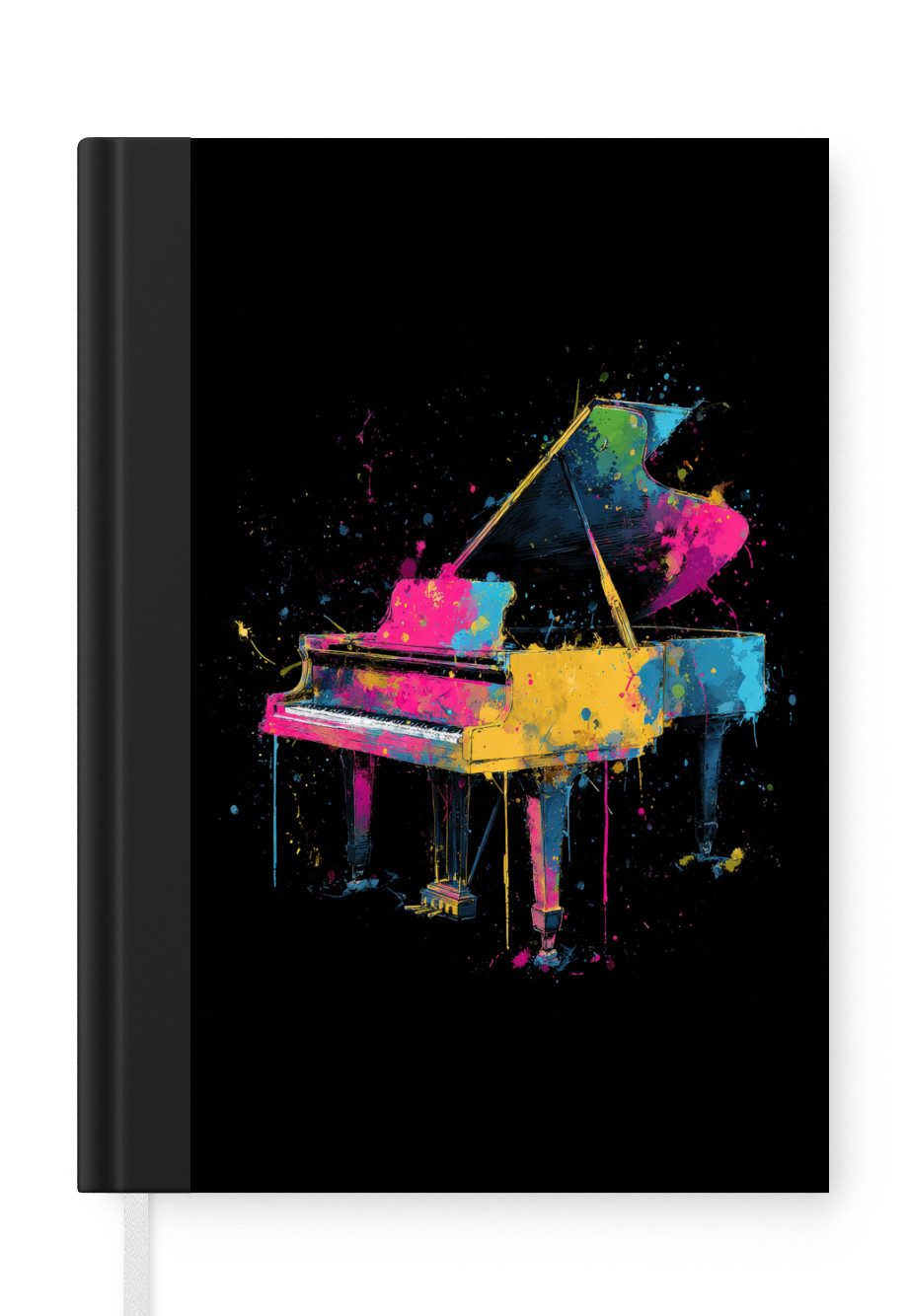 Im Mittelpunkt steht ein Flügel vor einem schwarzen Hintergrund, der mit explosiven Farbspritzern in Rosa, Gelb, Blau und Grün bedeckt ist. Die leuchtenden Farben stehen in starkem Kontrast zum Schwarz und machen das Bild kraftvoll und rhythmisch. Der Stil ist ausdrucksstark und modern.Anzahl Seiten | 99 Seiten |