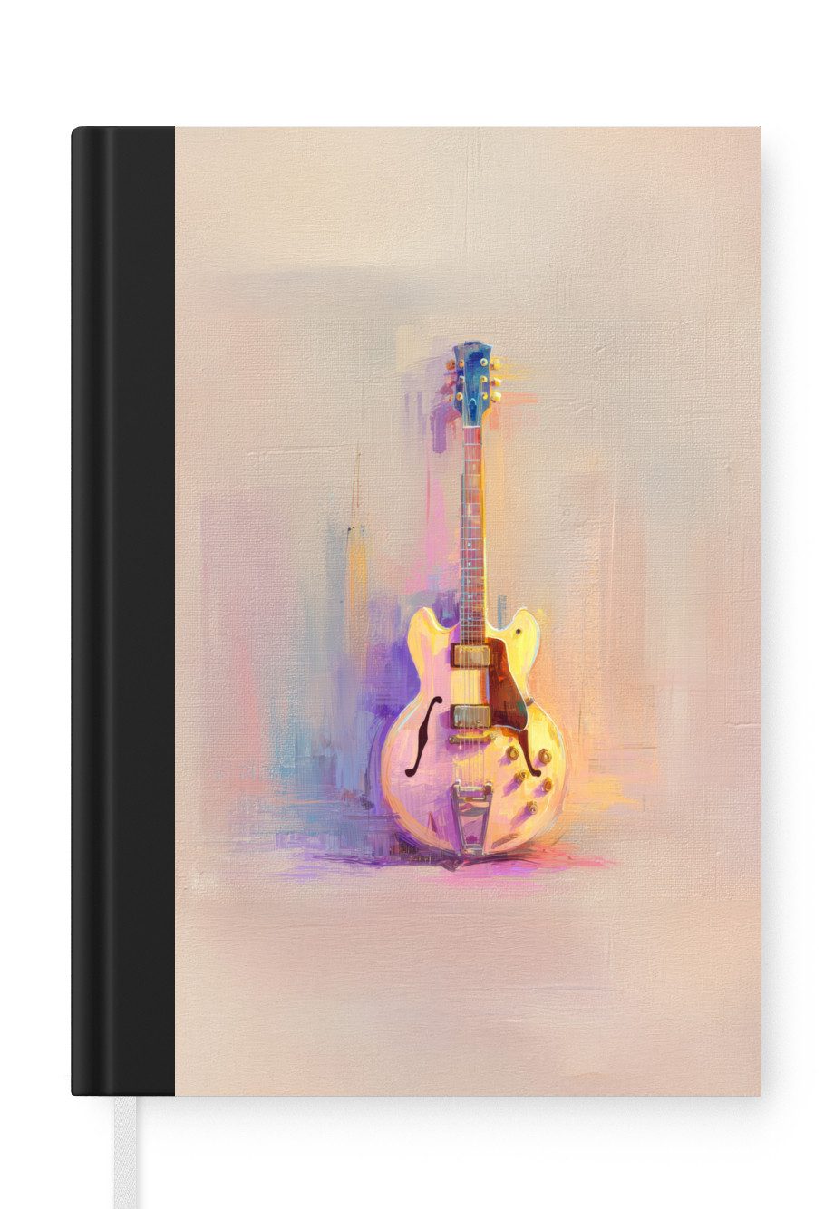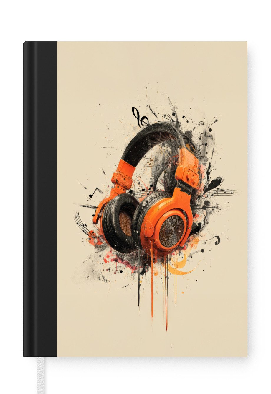 Das Notizbuch hat ein Hardcover und ist mit einer schwarzen Bindung versehen. Diese Bindung in Wildlederoptik verleiht ihm einen luxuriösen Look. Durch die schwarze Bindung hat das Notizbuch eine teilweise schwarze Rückseite. Dank seiner kompakten Розмір lässt sich das Hardcover-Notizbuch leicht mitnehmen.