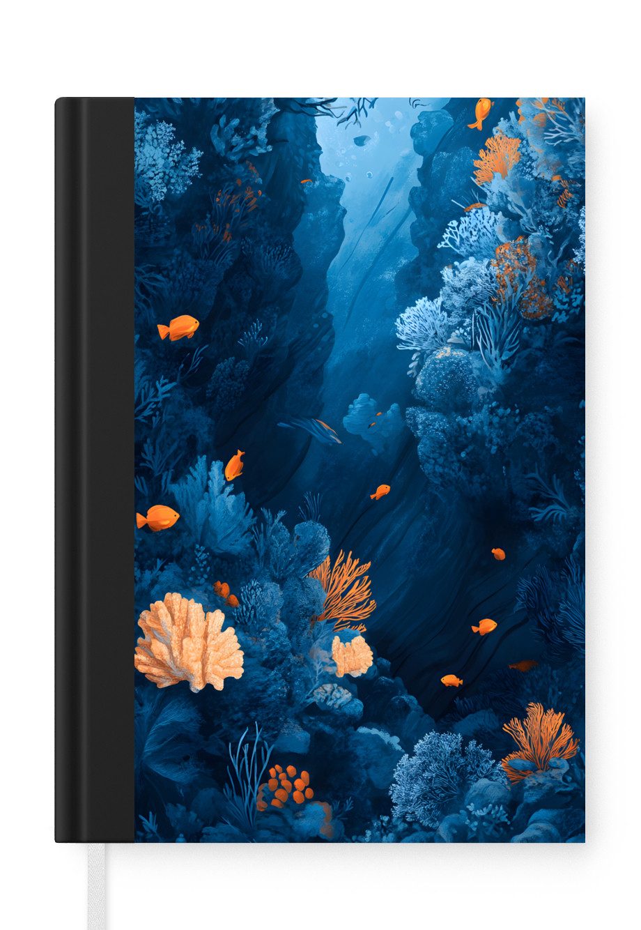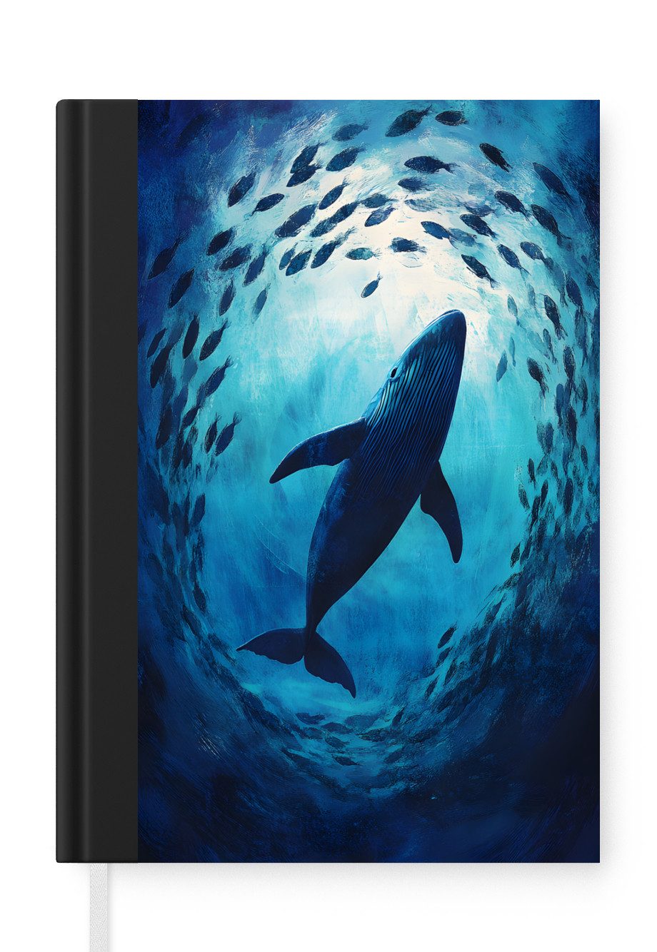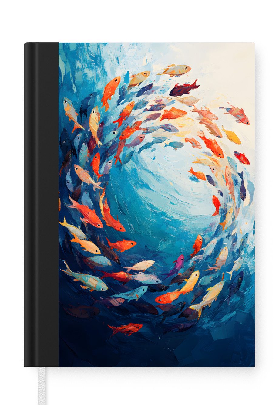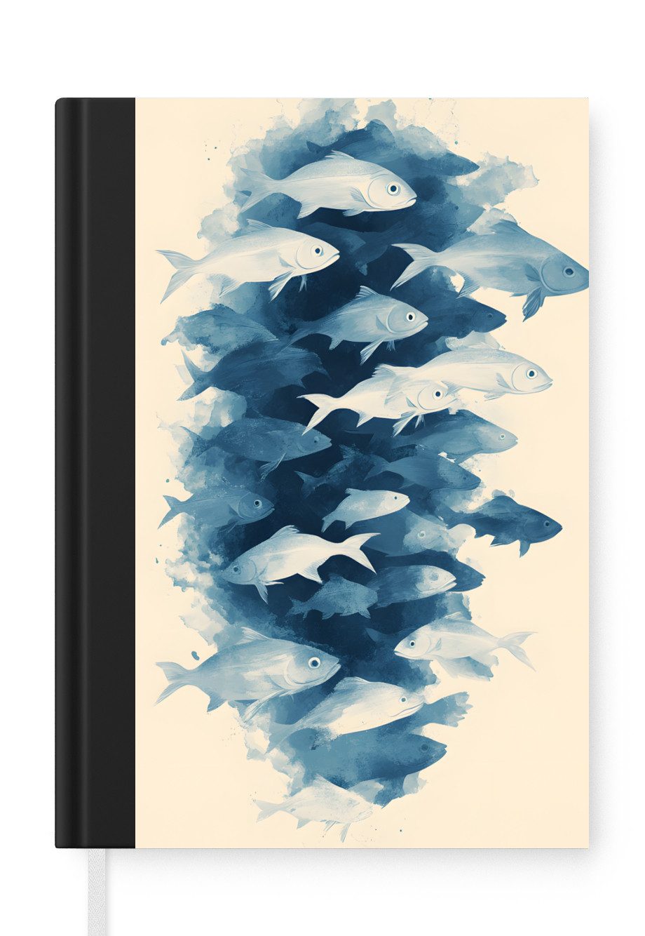 Eine Gruppe von Fischen schwimmt dicht gedrängt in einem vertikalen Muster vor einem beigen Hintergrund, der in blauen und grauen Aquarelltönen gehalten ist.Anzahl Seiten | 99 Seiten |