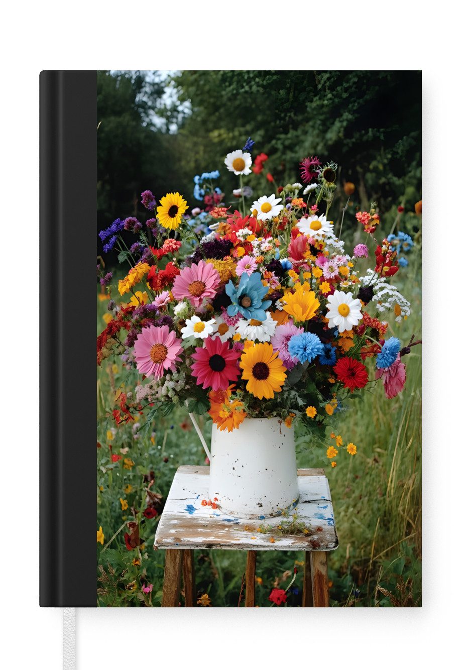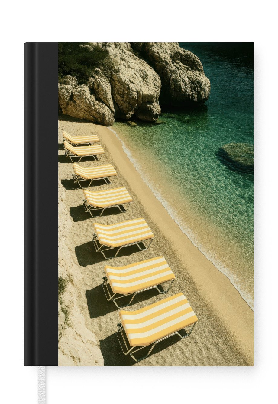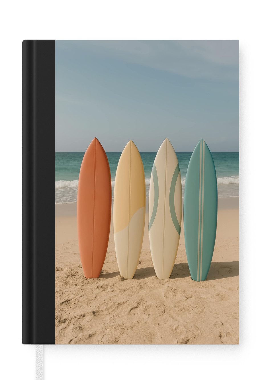 Das Notizbuch hat ein Hardcover und ist mit einer schwarzen Bindung versehen. Diese Bindung in Wildlederoptik verleiht ihm einen luxuriösen Look. Durch die schwarze Bindung hat das Notizbuch eine teilweise schwarze Rückseite. Dank seiner kompakten Розмір lässt sich das Hardcover-Notizbuch leicht mitnehmen.