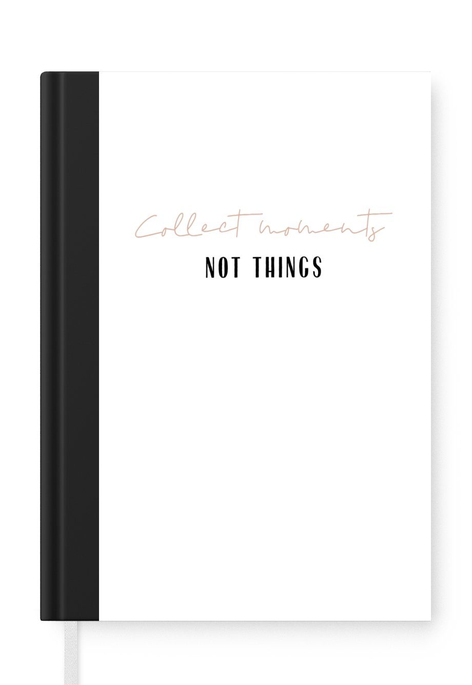 Das Notizbuch im A5-Format verfügt über linierte Seiten mit einem Feld für das Datum. So können Sie Ihre Notizen ordentlich und strukturiert festhalten. Außerdem enthält es ein Lesezeichen, damit Sie jederzeit wissen, auf welcher Seite Sie stehengeblieben sind. Insgesamt umfasst das Notizbuch 98 Seiten. Damit kommen Sie eine ganze Weile aus, bevor es vollgeschrieben ist.